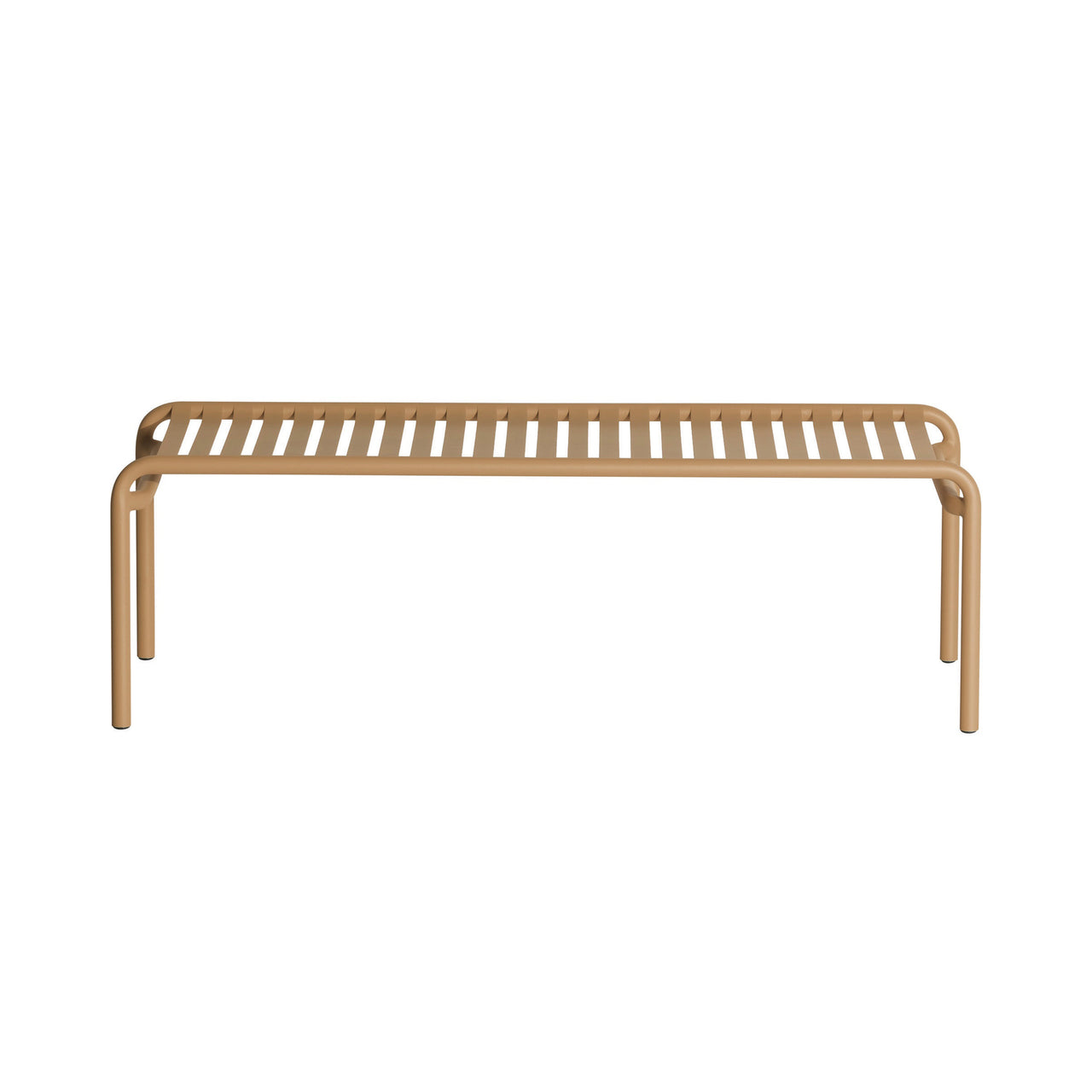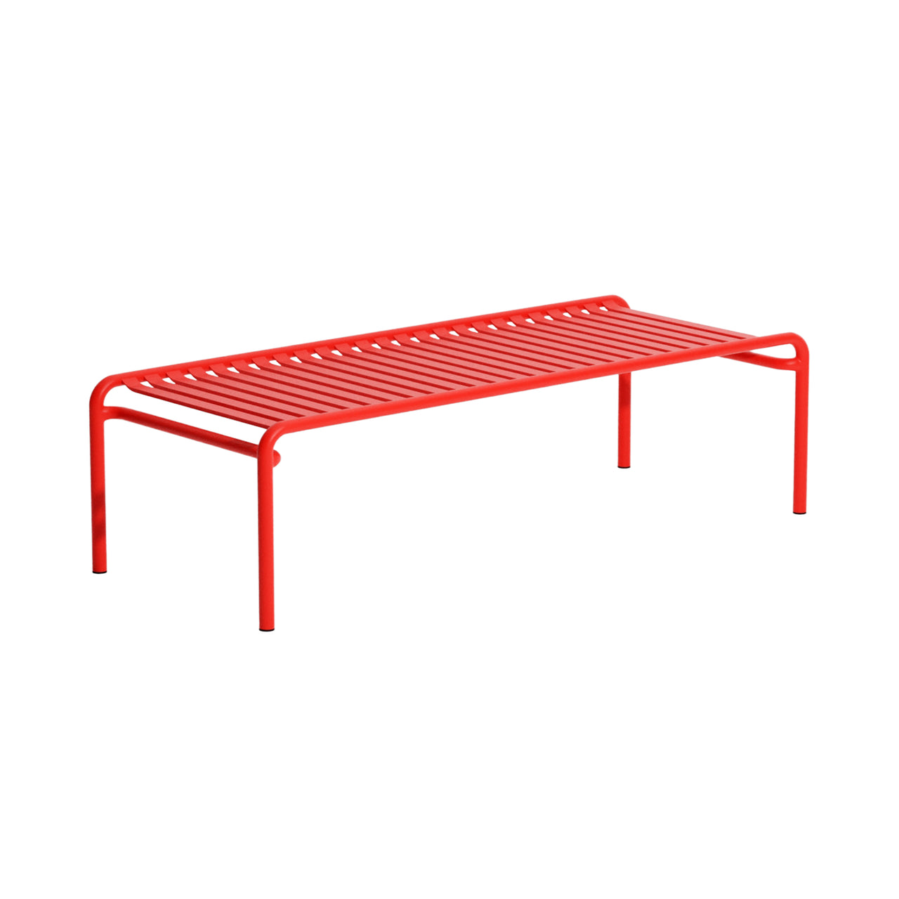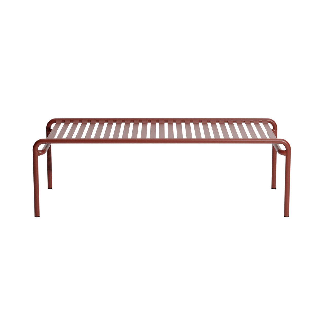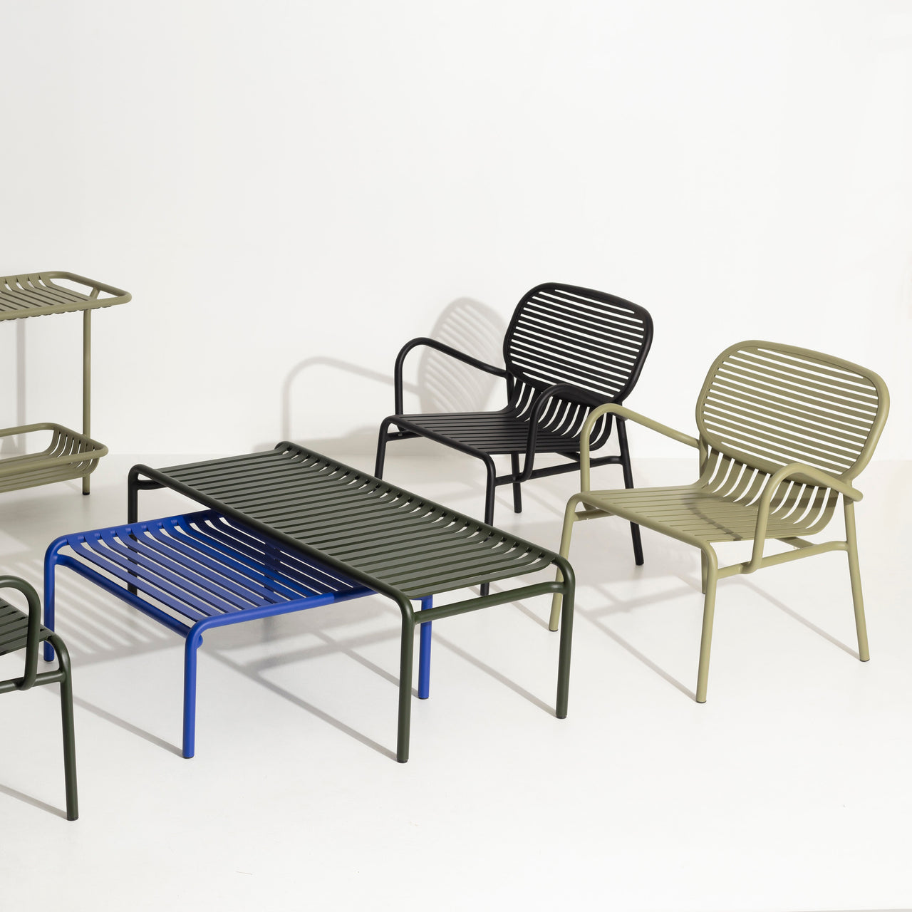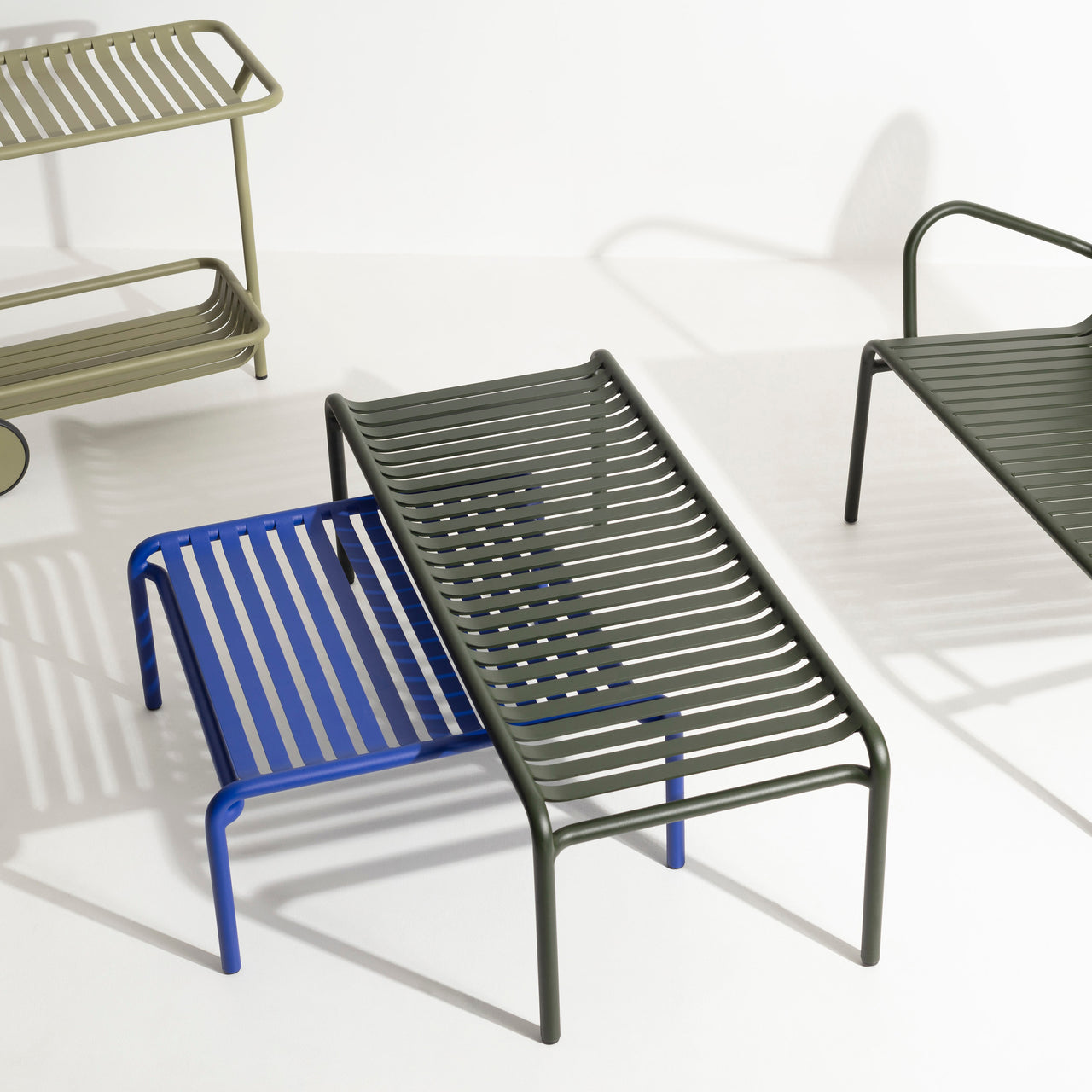 An extended-length coffee table in the same slatted motif resembling breezy stripes makes a smart addition to Week-End's indoor-outdoor range. Studio BrichetZiegler's design easily pairs with the collection's garden sofa or bench for a comfortable conversational arrangement. Fashioned in lightweight but sturdy aluminum, it comes in a buoyant range of colors with a matte epoxy finish that is UV and water-resistant.