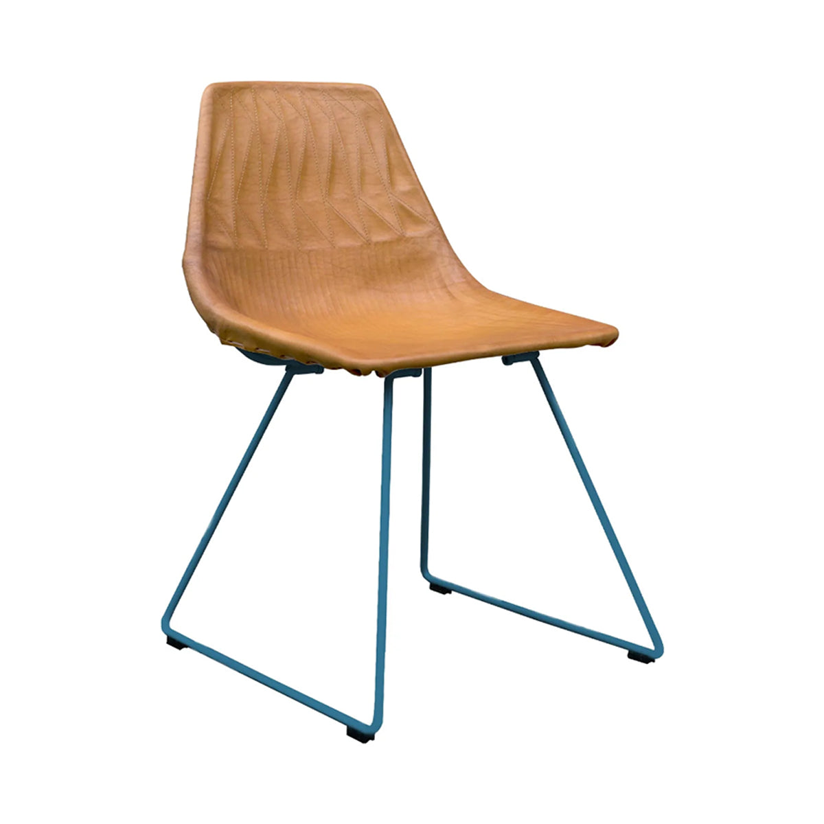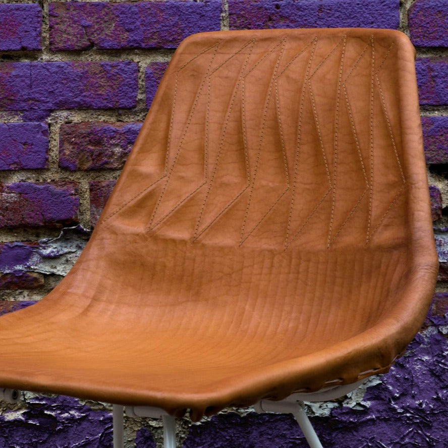 Handmade and embroidered with a zig-zag motif, a leather seat brings intriguing appeal to Bend’s modern-classic Lucy seating. Enshrined in the permanent collection at the Los Angeles County Museum of Art or LACMA, creative founder Gaurav Nanda’s take on ‘50s wire furniture derives satisfying comfort and unbelievable support from its intricate geometric pattern and is certified with a weight capacity of over 400 pounds. Apropos for both residences and commercial spaces, Lucy with the leather covering comes in either camel or black cowhide paired with Bend's range of powder-coat and metallic wire finishes.
