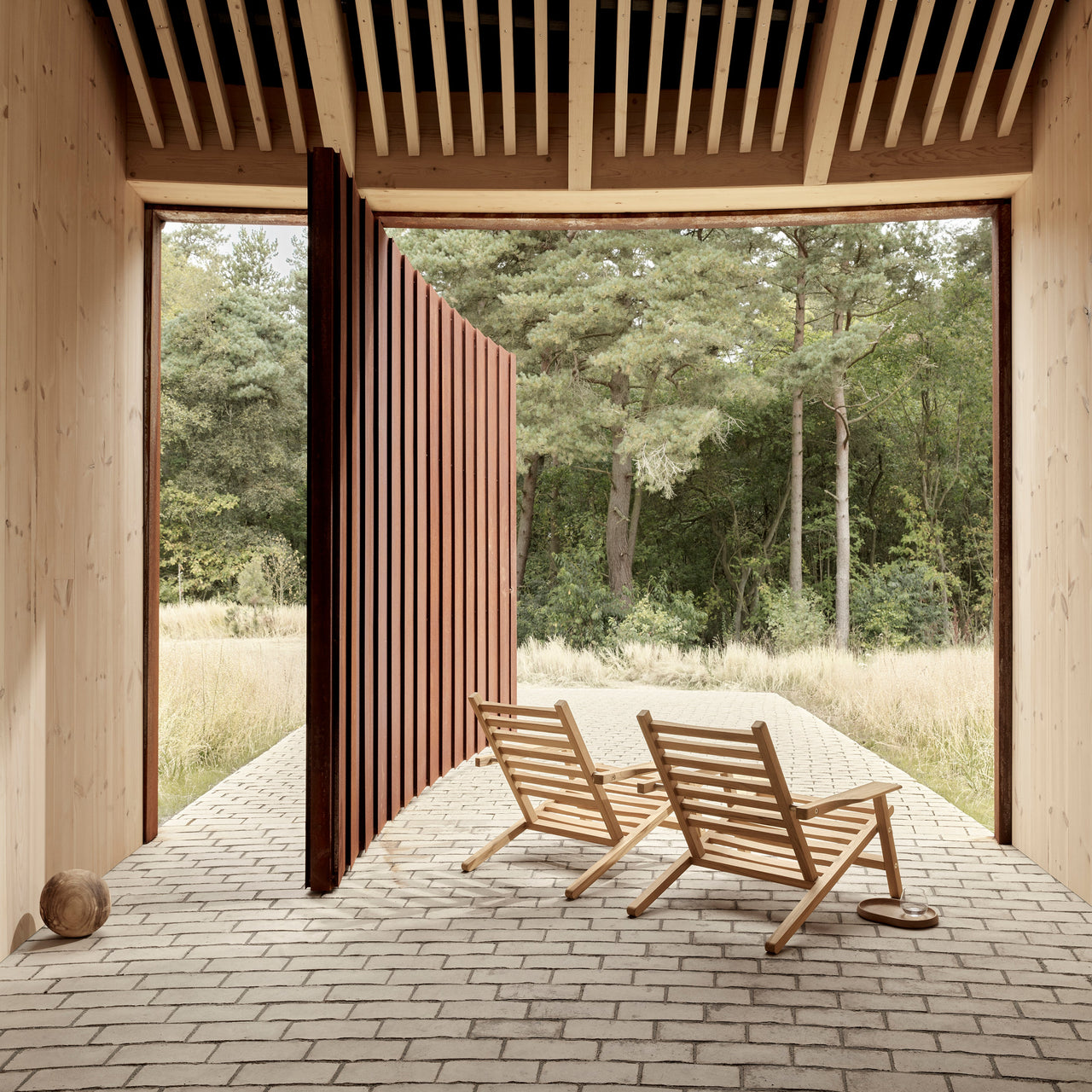 Artfully crafted, this handsome deck chair boasts a carefully angled seat and backrest and generous armrests for hours of blissful reclining, underpinning designer Alfred Homann’s outdoor furniture series. From Denmark’s Carl Hansen & Søn, the seating is made of untreated FSC-certified teak, a hardy species that patinas beautifully over time. Optional cushions in a durable recycled and waterproof fabric add extra comfort and style in a complementary neutral hue.