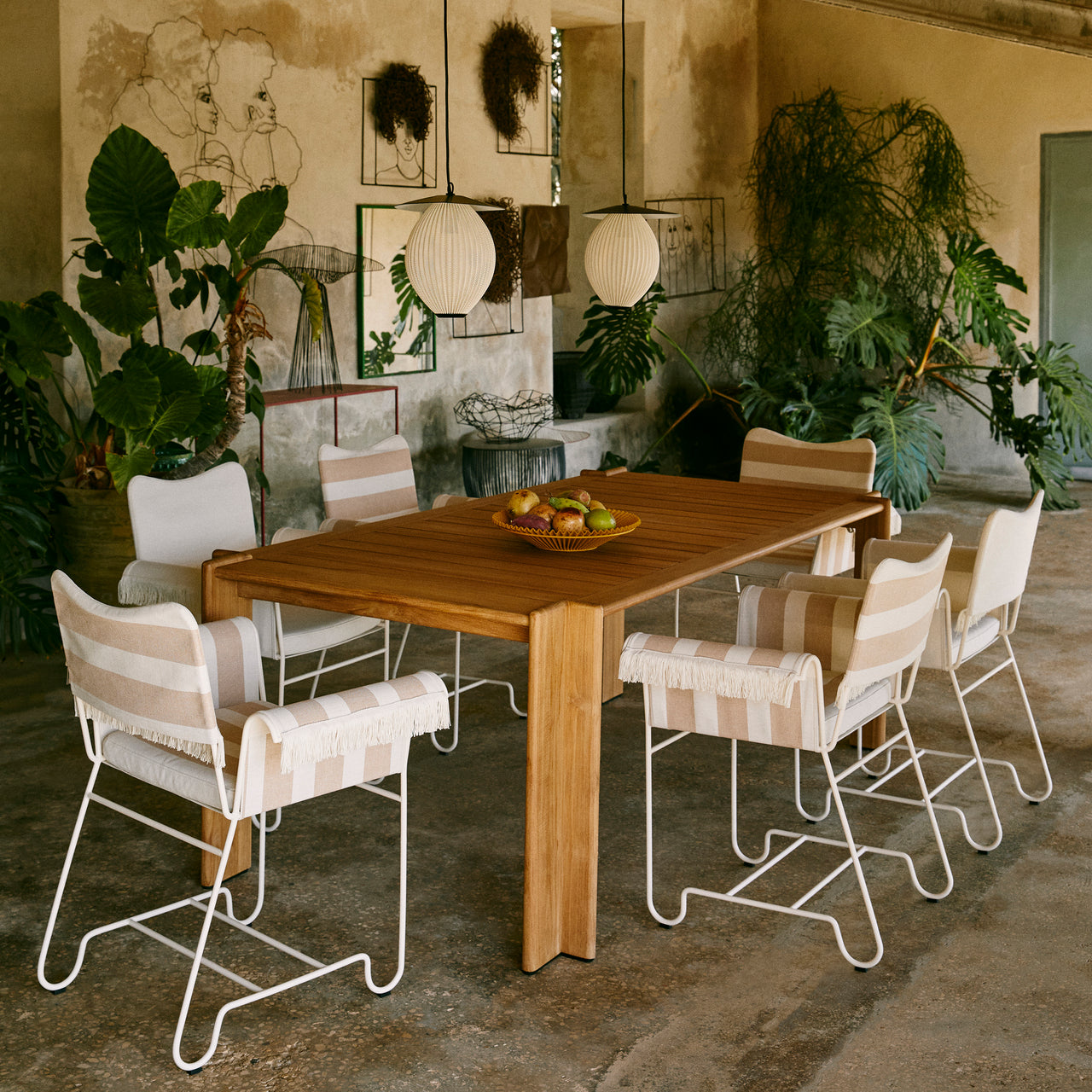 As beguiling today as when it launched, Tropique captures the timeless luxury of the 1950s Côte d’Azur. In the hands of Hungarian-born, French master of postwar design Mathieu Matégot, the frame is made from stainless steel rods with a distinctive statement curve at the feet. Seat and backrest fashioned from a durable yet gently flexible outdoor fabric—with or without fringe trim—and the hammock-like span comfortably responds to the body’s natural contours.