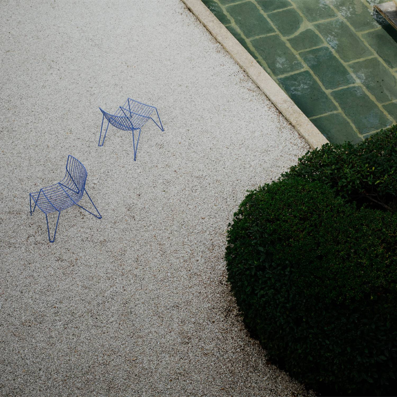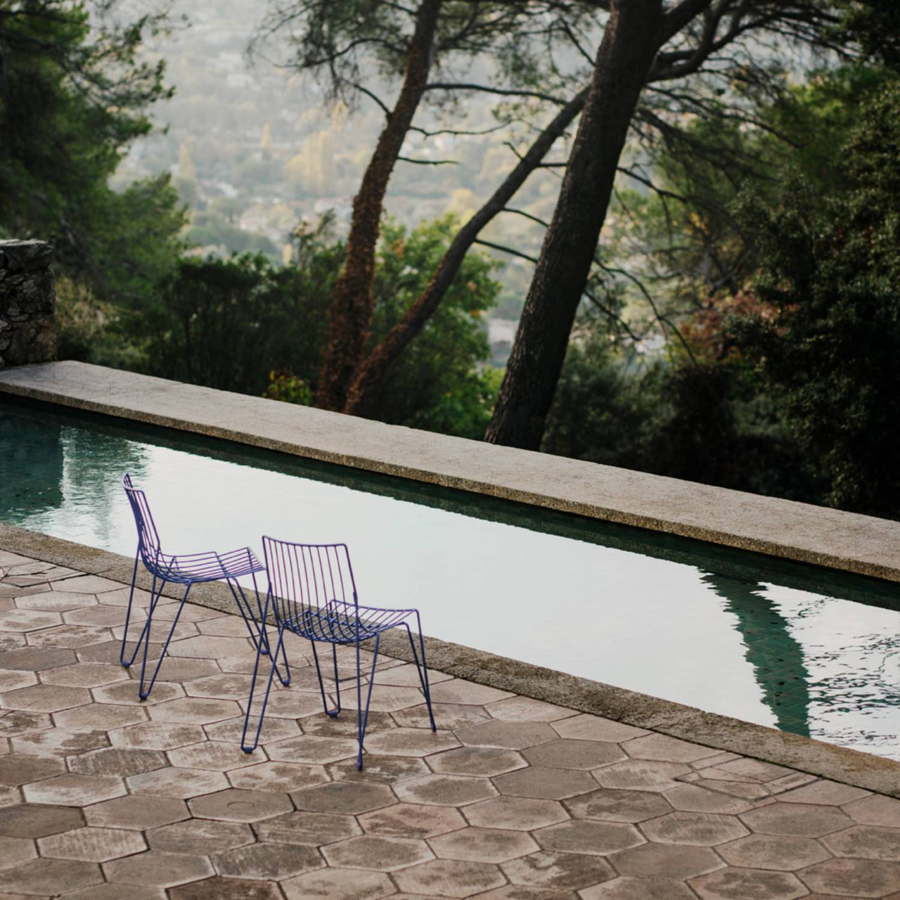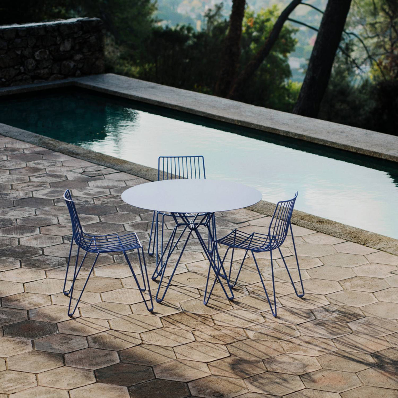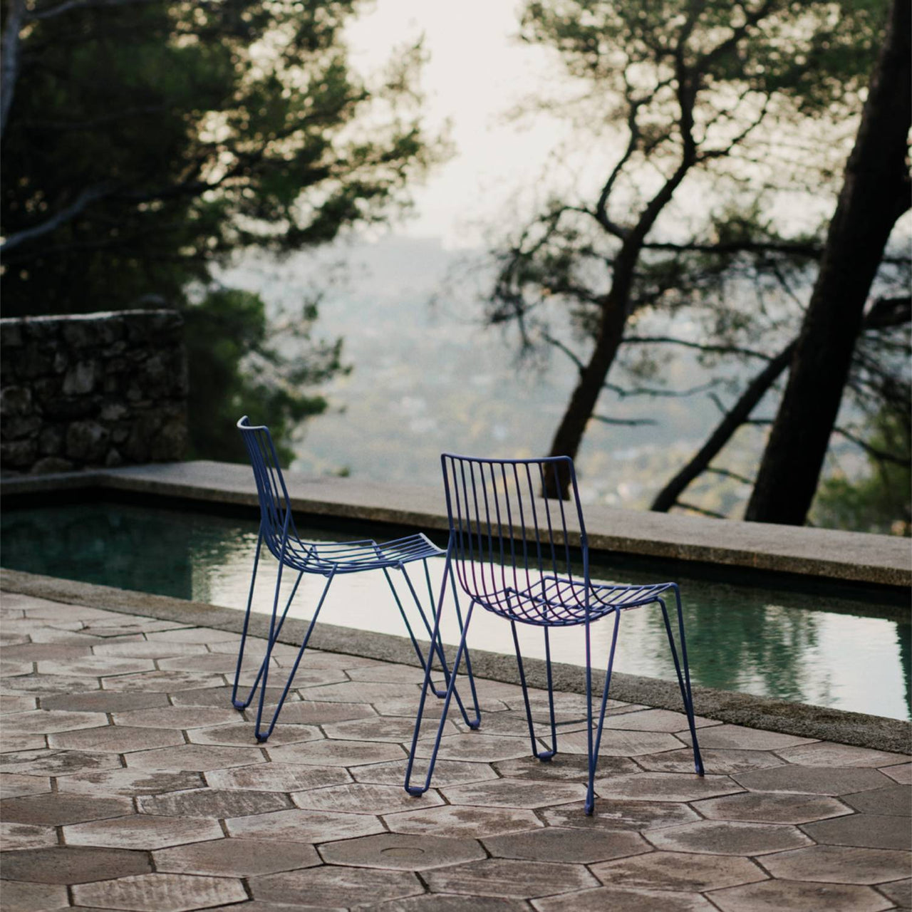 Man or machine? It's no riddle in Massproduction's elegantly refined Tio Chair. Designer Chris Martin's fascination with industrial methods dictated the medium-steel wire produced on a computer-controlled bending machine—but his method was hands-on. "The design for Tio was the end result of a few months of thinking, sketching and sculpting," says the British designer. As multi-purpose seating for indoor or outdoor use, the stackable chair harmonizes with a large variety of architectural styles. In galvanized metal wire covered with a polyester powder coat, the 10 available colors offer wide versatility (with an optional padded seat available as well). Chris and design partner Magnus Elebäck take outdoor-indoor furniture to another level via their Stockholm-based firm, Massproductions. The extensive Tio collection offers tables to seating, in a range of incarnations. No wonder they were awarded the prestigious Golden Chair award by the Swedish Association of Architects for Tio, cited as "consummately designed, with excellent sharpness of detailing and beauty of line.
