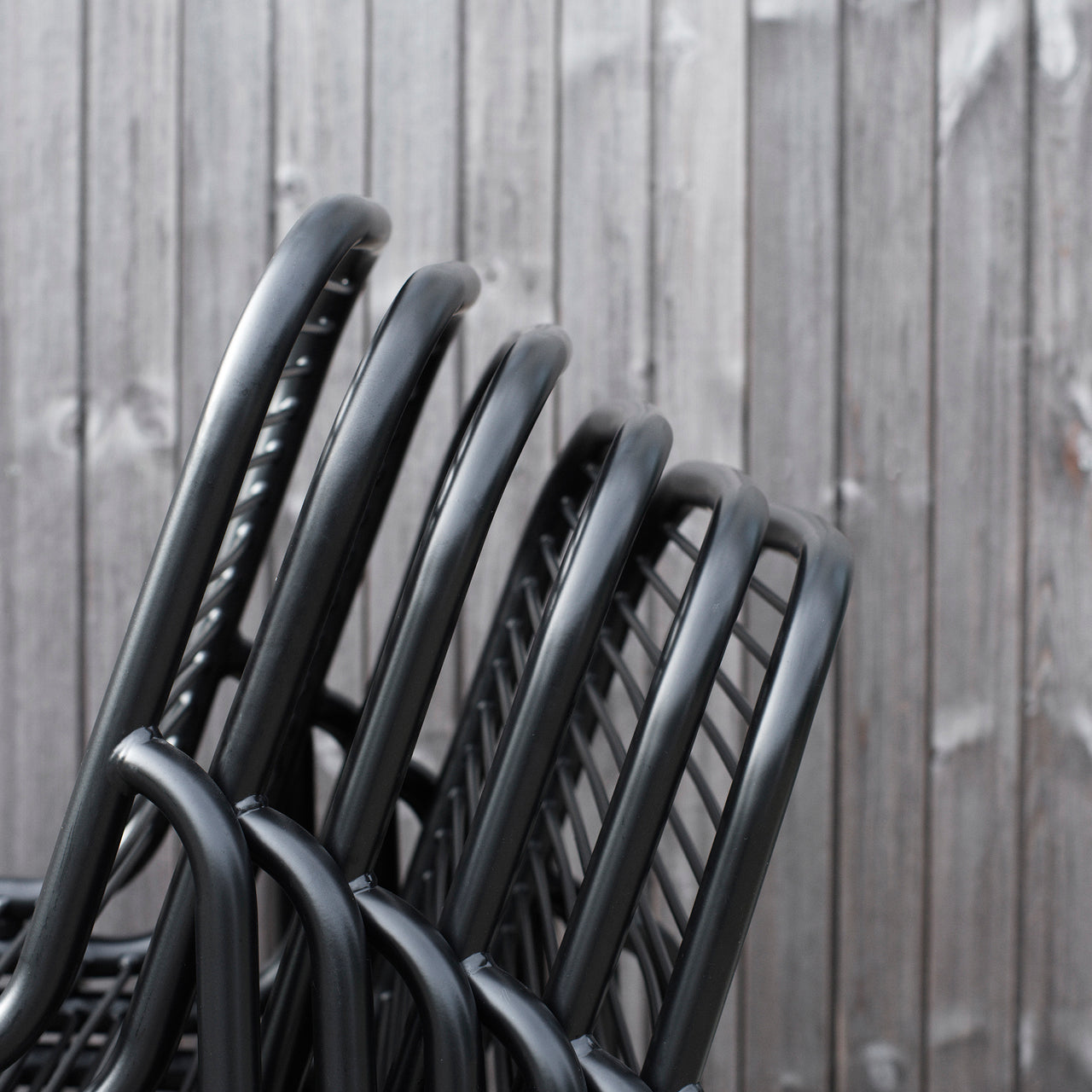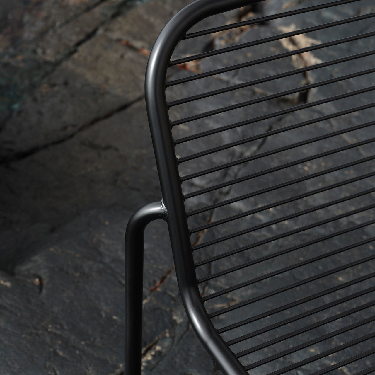The Vig Stacking Chair is a versatile outdoor seating option crafted from durable double powder-coated steel, making it ideal for extended outdoor use while maintaining its sleek appearance. Its stackable design makes it highly functional for flexible seating arrangements. Available in colors black, grey, and dark green, the Vig collection offers a cohesive collection of outdoor furniture.