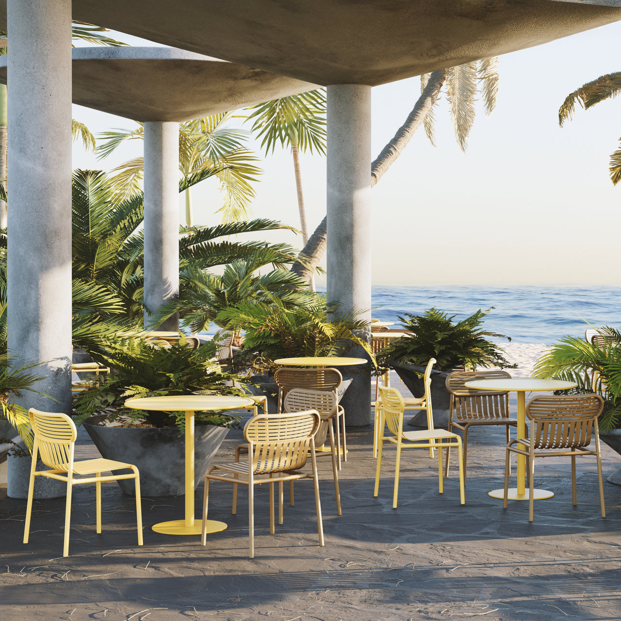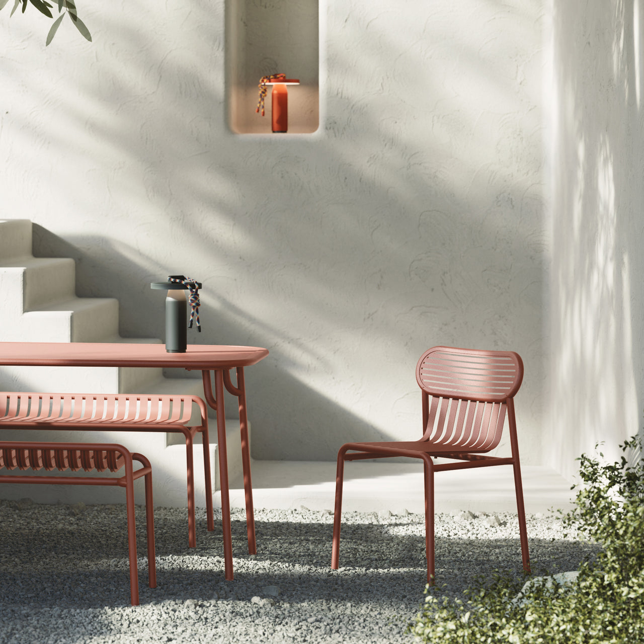 PRICE IS FOR PAIR OF CHAIRS. Vertical and horizontal slats give a charming feel and a graphic panache to this side chair from the Week-End outdoor collection from Petite Friture. Handily stackable when not in use, it pairs with the series' complementary dining tables for a versatile and easygoing take on alfresco dining. Conceived by Paris-based design duo Studio BrichetZiegler, it's sturdily crafted in aluminum in a variety of attractive matte-finish hues with a grained and anti-UV powder-coat.