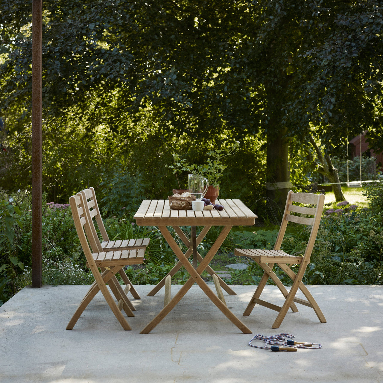 At a summer cabin, on a cool terrace or out on the patio, Skagerak’s rectangular table is perfect for alfresco meals—and it’s foldable for storing away off-season. Anders & Lars Hegelund’s slat-topped design is carefully crafted in FSC-certified teak that coordinates with the Danish maker’s companion seating. The untreated wood will patinate to a lovely grey over time or keep the color golden with a suitable furniture oil.