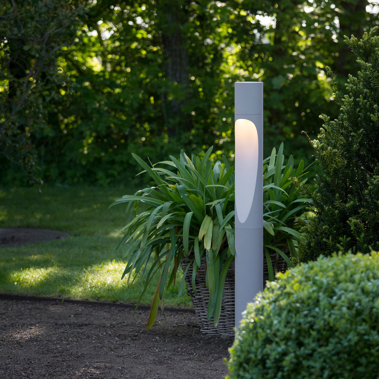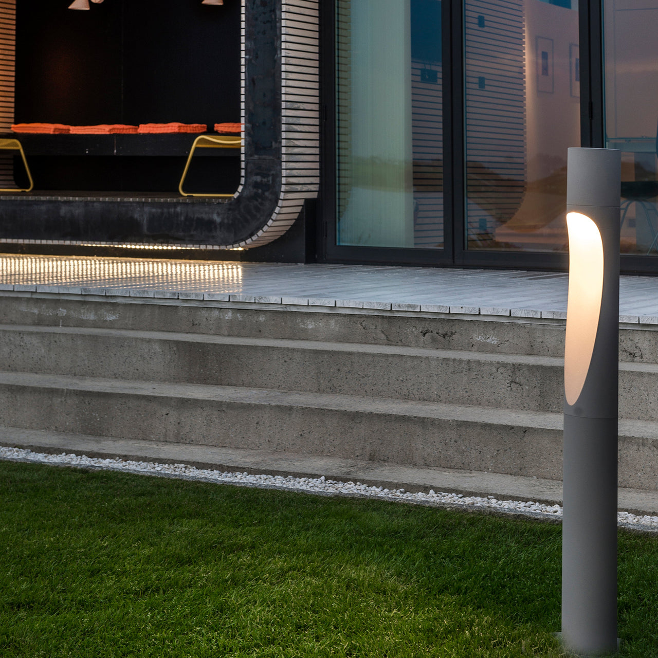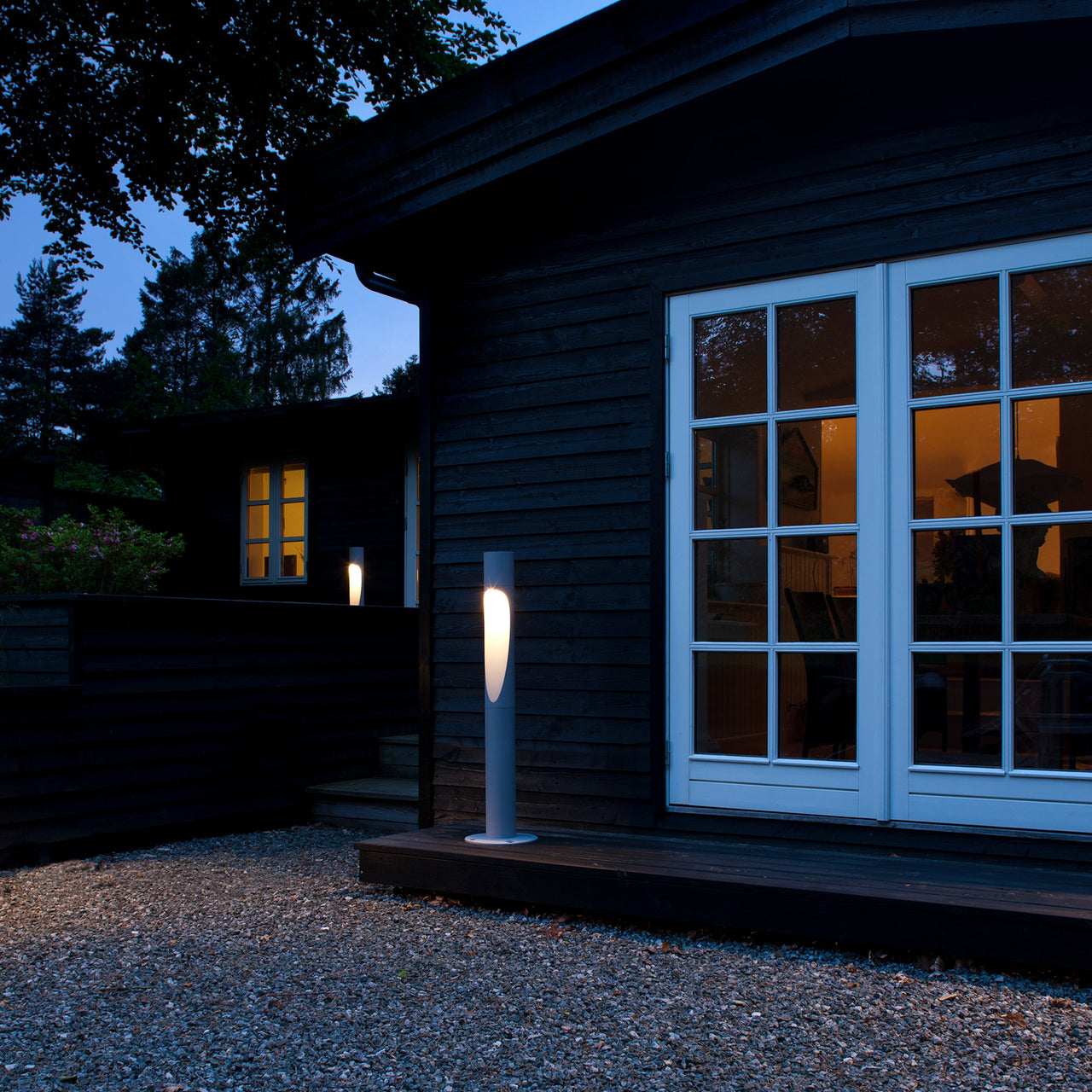 In the taller standard version, designer Christian Flindt’s outdoor ballard illuminates gardens, parks and other outdoor living spaces, both public and residential. Multiple units can be operated by a single power supply, and the light is especially conducive to repetitive installations with its refined minimalist flair.