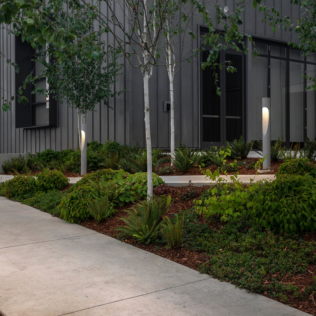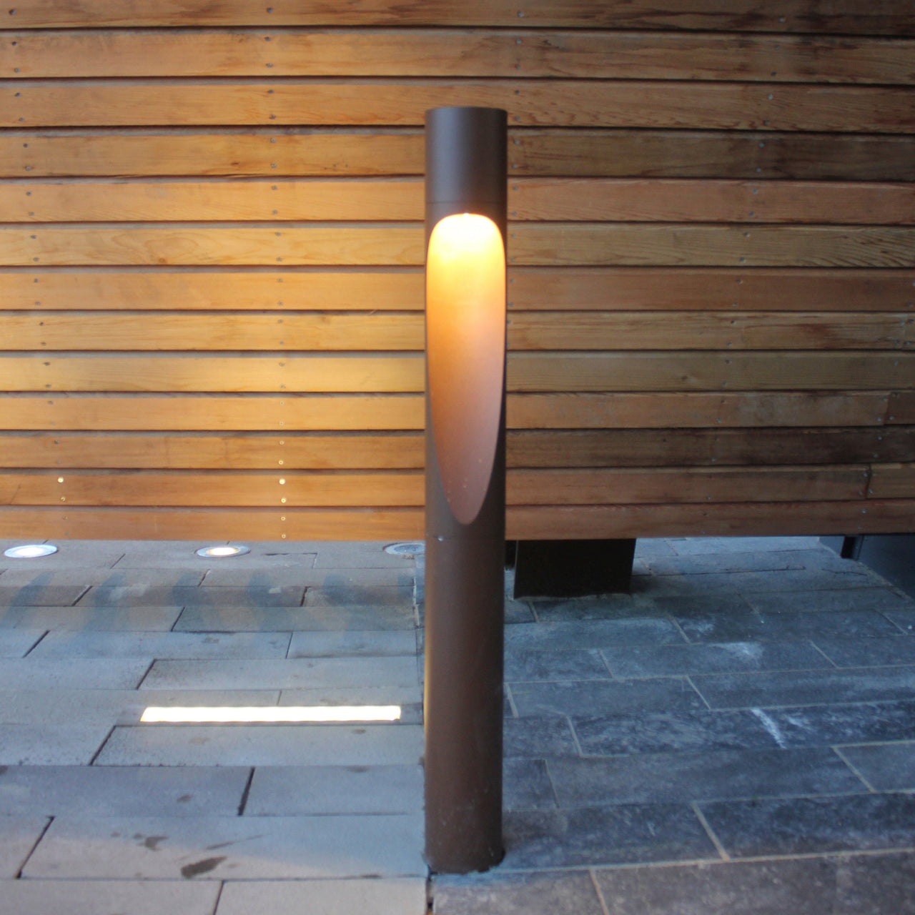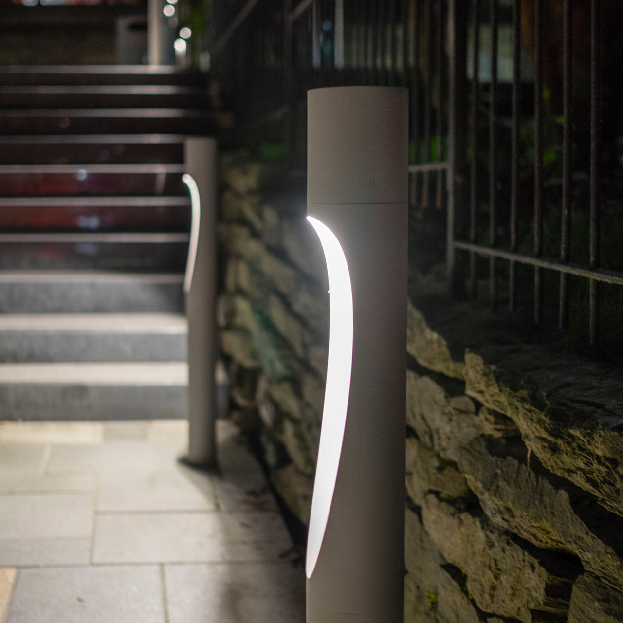 In the taller standard version, designer Christian Flindt’s outdoor ballard illuminates gardens, parks and other outdoor living spaces, both public and residential. Multiple units can be operated by a single power supply, and the light is especially conducive to repetitive installations with its refined minimalist flair.