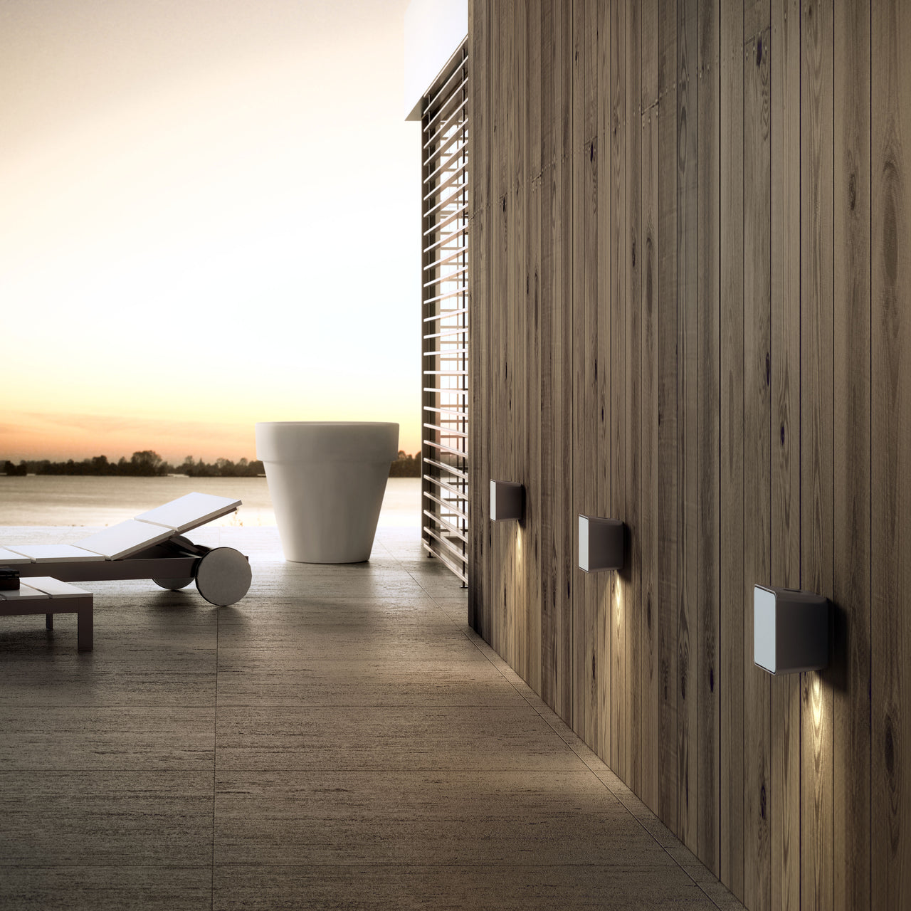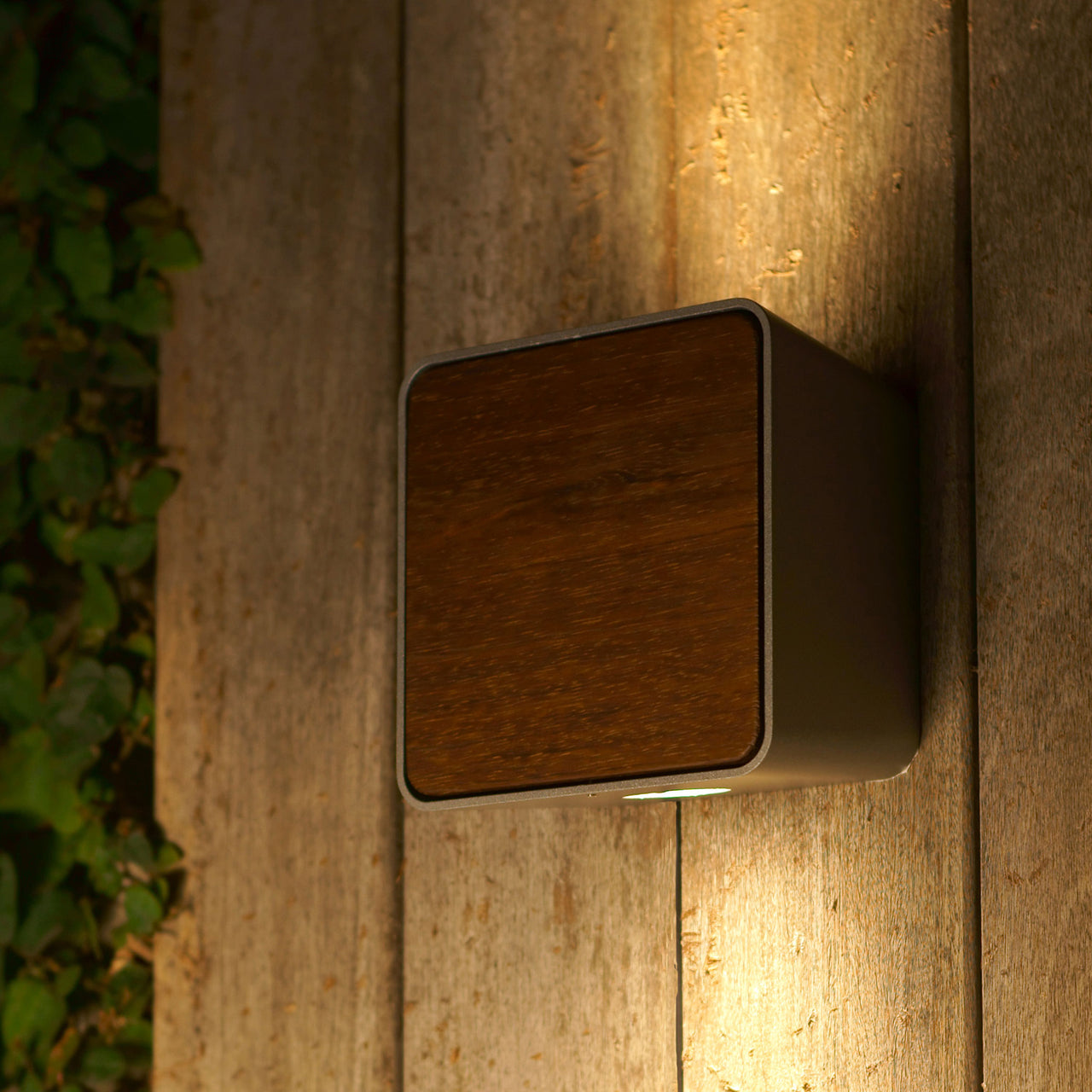 Call it camouflage by decor. Marset's weatherproof Lab Wall Light can either blend in or stand out. Designer Francesc Rifé's LED fixture employs variable front panels—in light or dark iroko wood, simulated stone or metal in black, grey, or white—to match up or contrast with its outdoor surroundings. For commercial spaces, custom graphics can be even incorporated as signage.