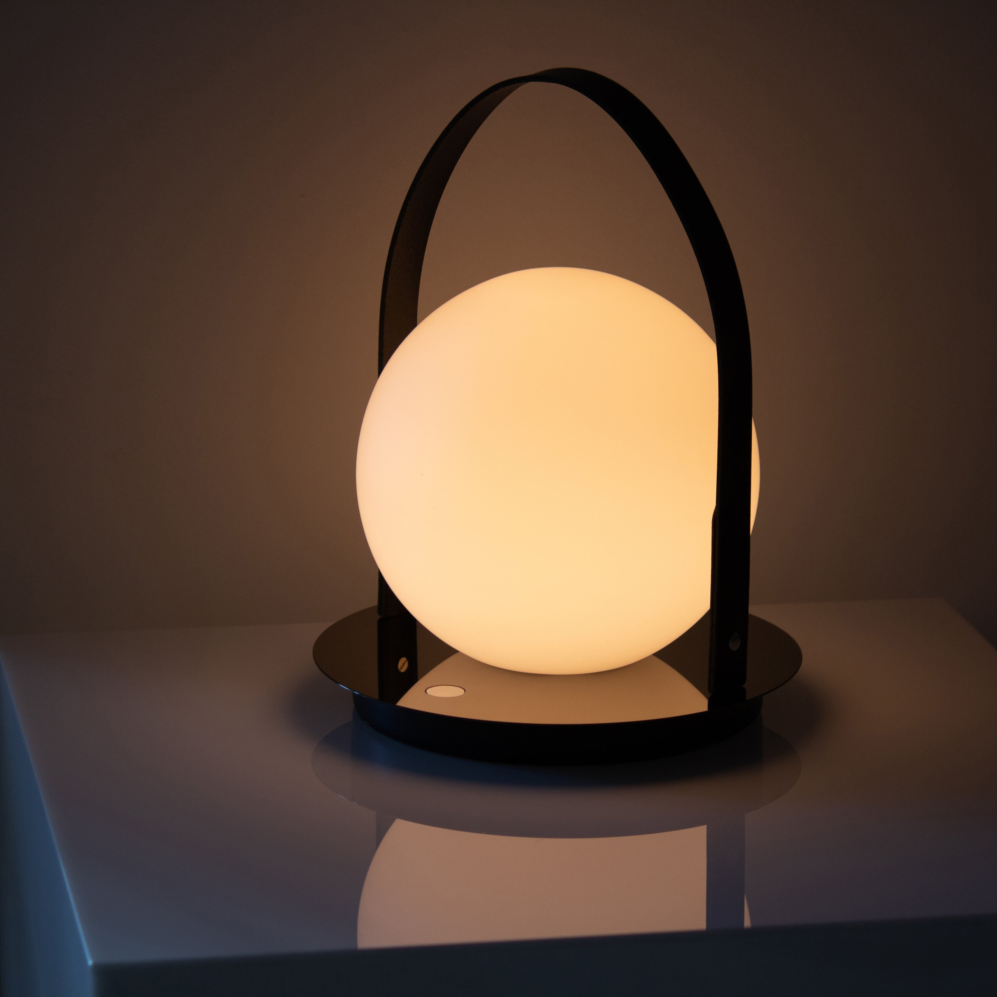 Whether it’s the life of a party or setting a more intimate scene, Bola Lantern is easily one of the most refined portable lamps around. Elegantly appointed in a choice of rich metals with a leather handle, Pablo Pardo’s glowing opal-glass globe echoes his signature Bola series. The rechargeable lantern provides 4 levels of warm ambient light with enough power to last late into the night and beyond—from 10 to 200+ hours. USB charging cable included.