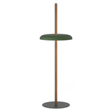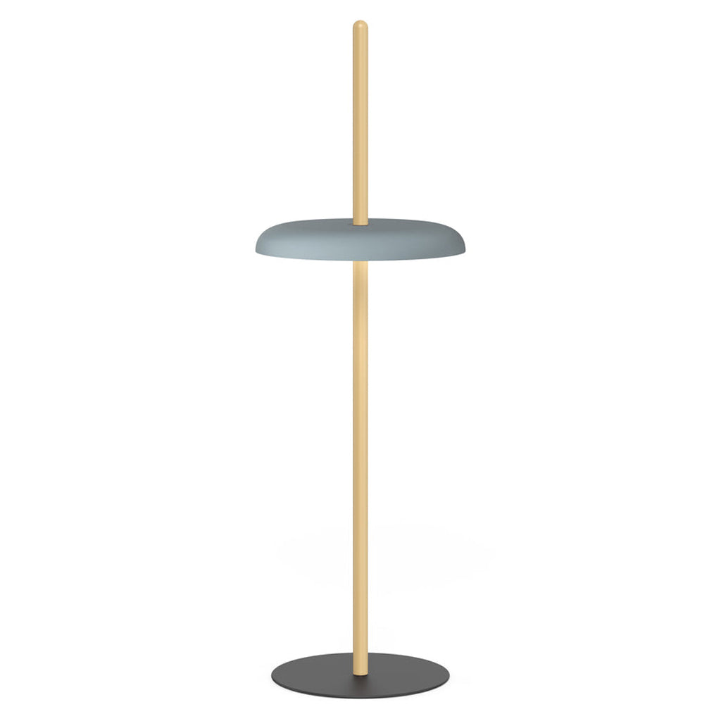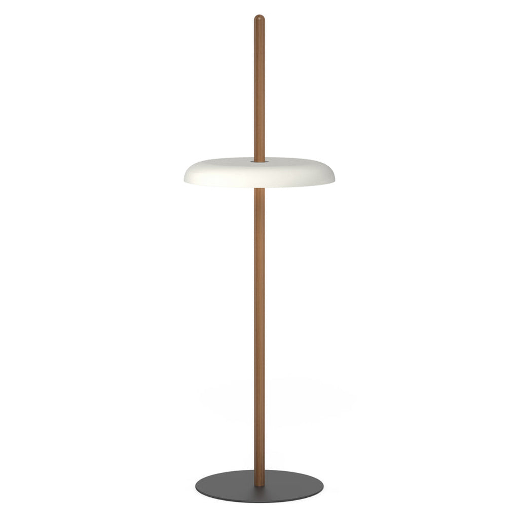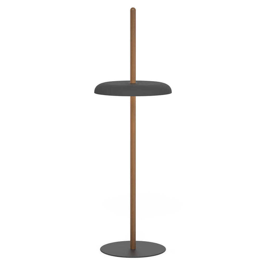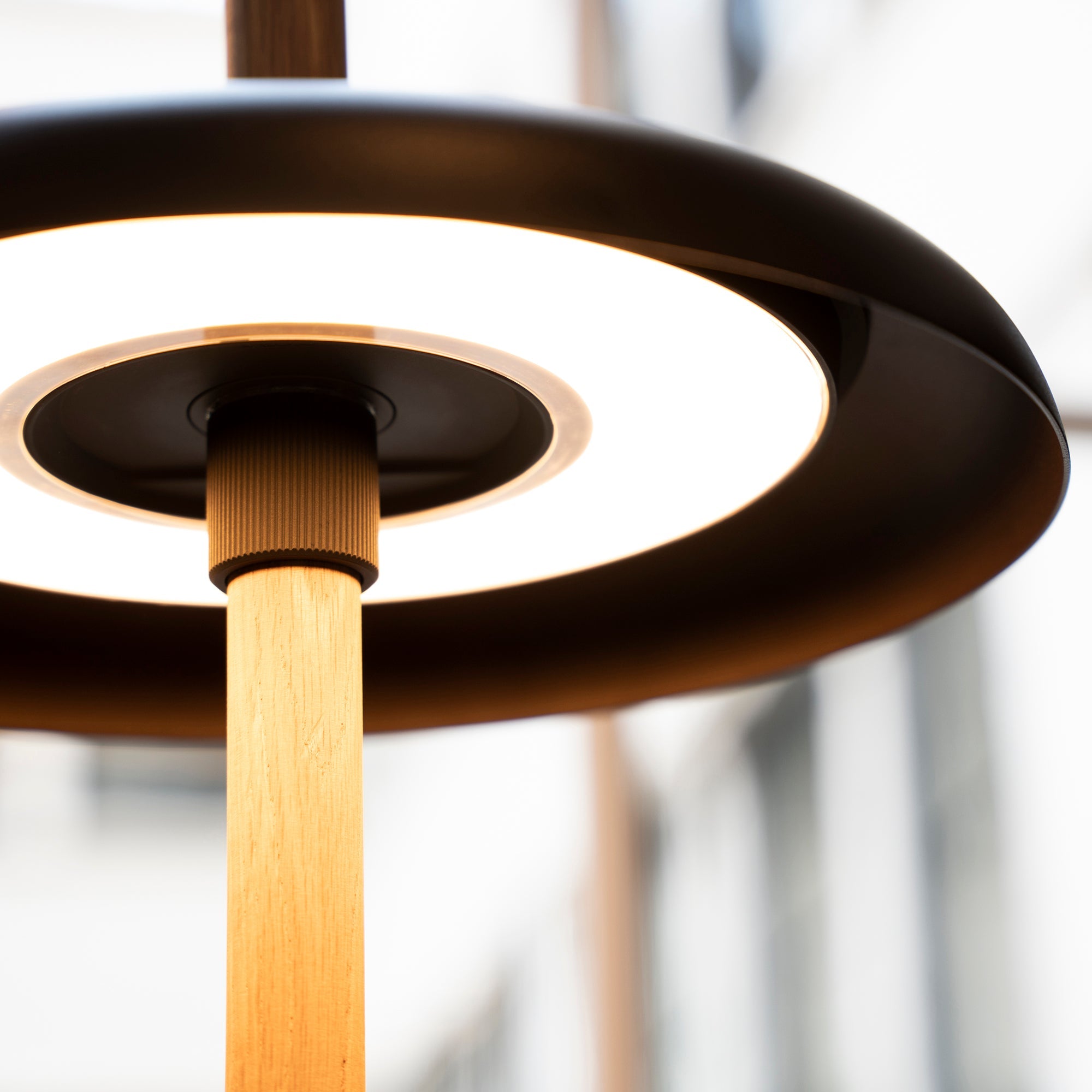 Pablo goes plug-free in a floor lamp version of Nivél for use indoors and out. From a center wood post on a sturdy base, the steel shade slides up and down to modulate the position of softly ambient, downward-facing illumination. It makes for an unobtrusive light source for home or office, adjusted via touch control of the integrated LED flat panel. With the post in solid oak or walnut, the lamp offers a choice of colors for the powder-coated steel shade.