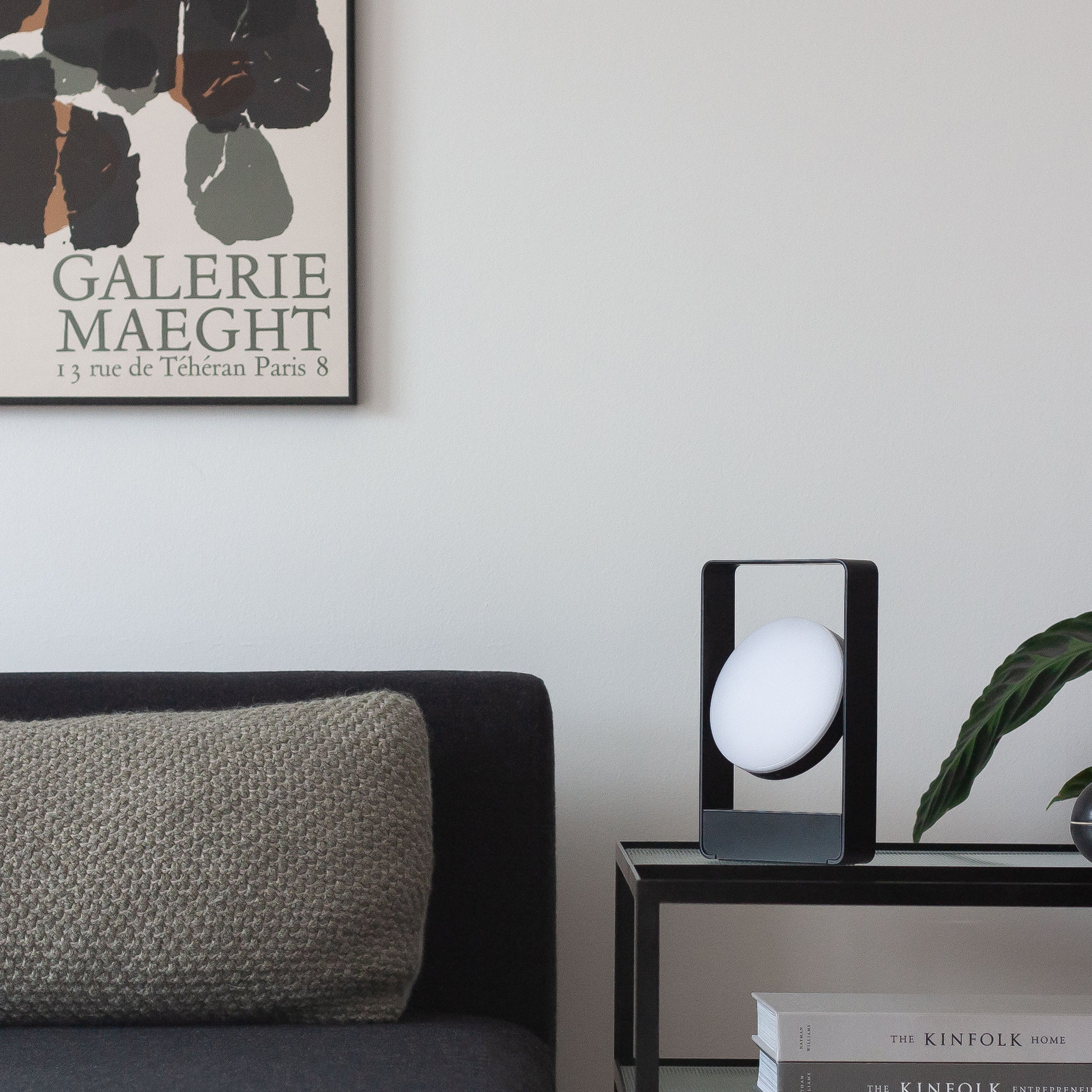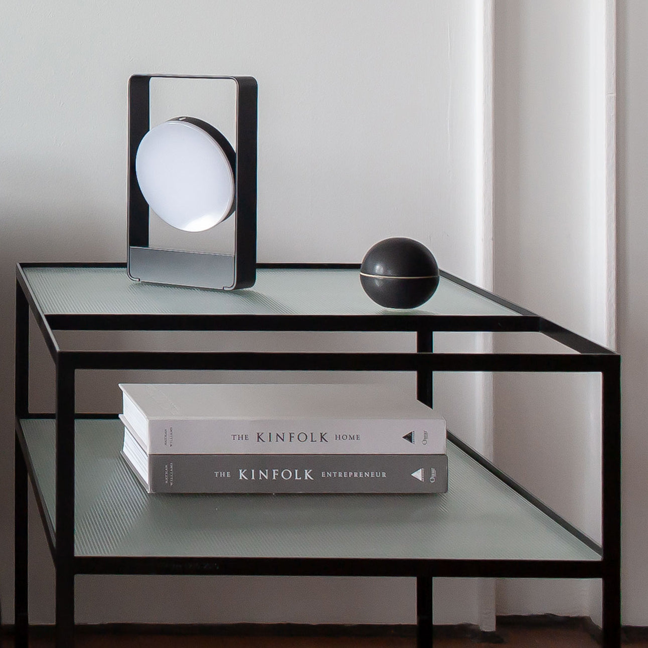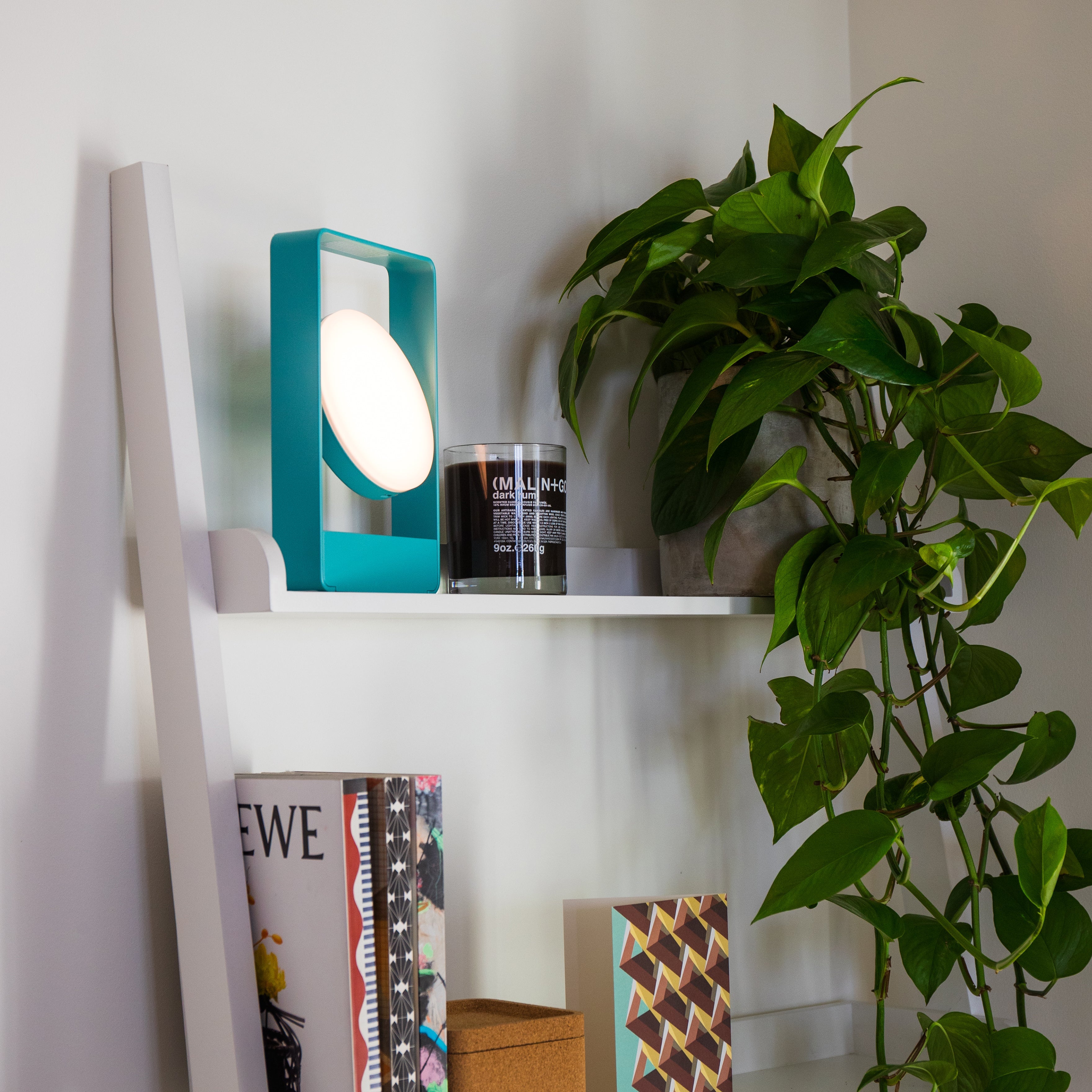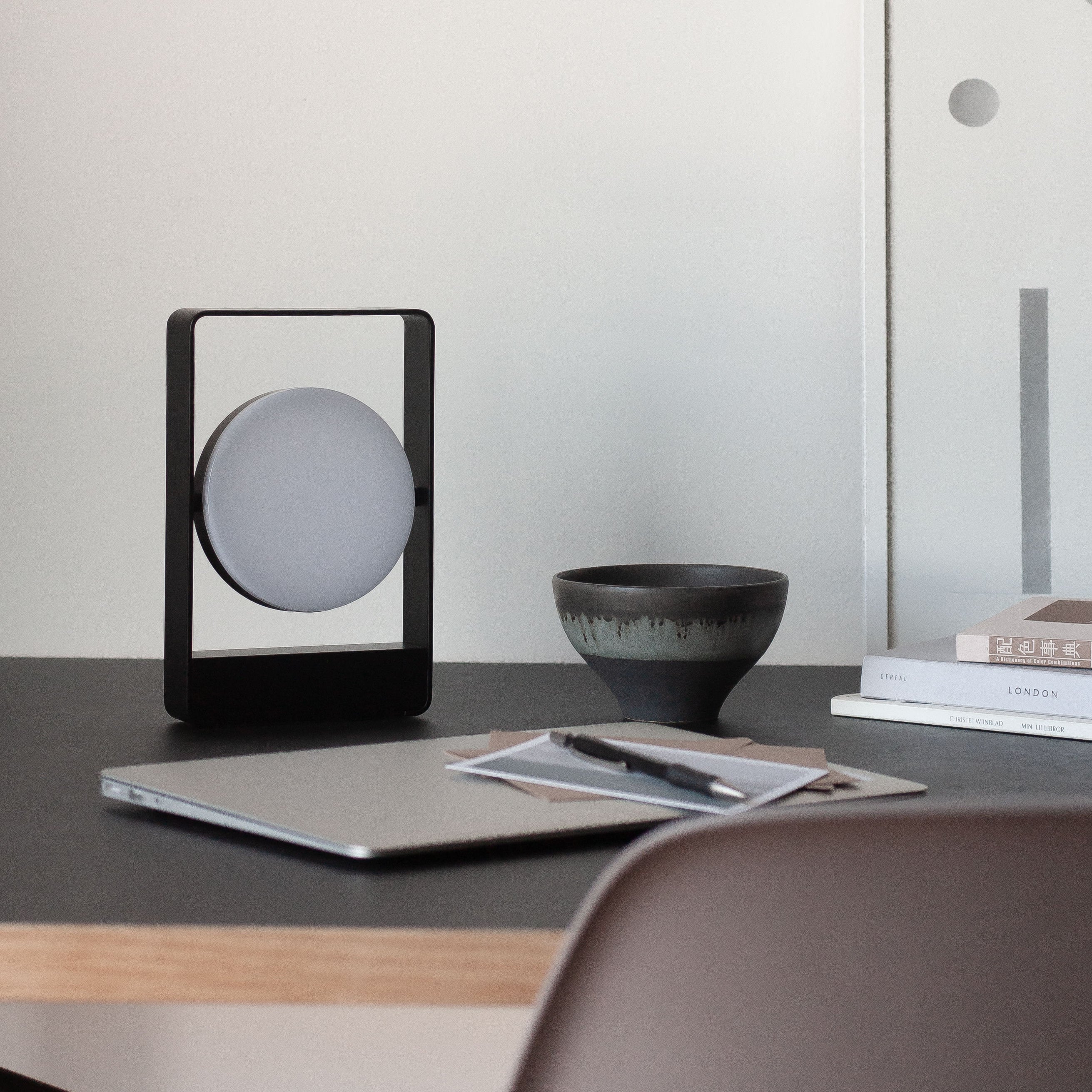 Mouro is the name of the lighthouse in Patricia Perez's hometown, and the designer’s portable lamp also serves as a ready beacon, easily moving from indoors to outside. In a powder-coated steel frame, the central element rotates 360 degrees and the light is dimmable with 3 settings. Recharge via a discreet USB inlet for up to 6 hours of use at full power.