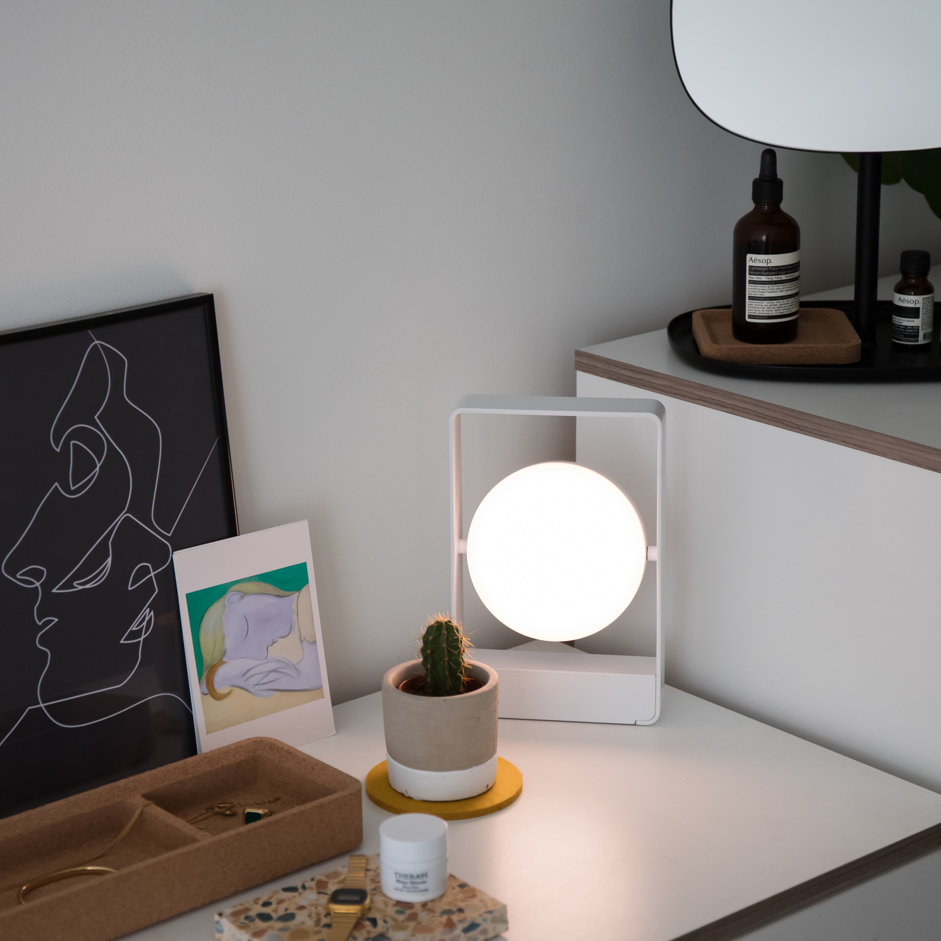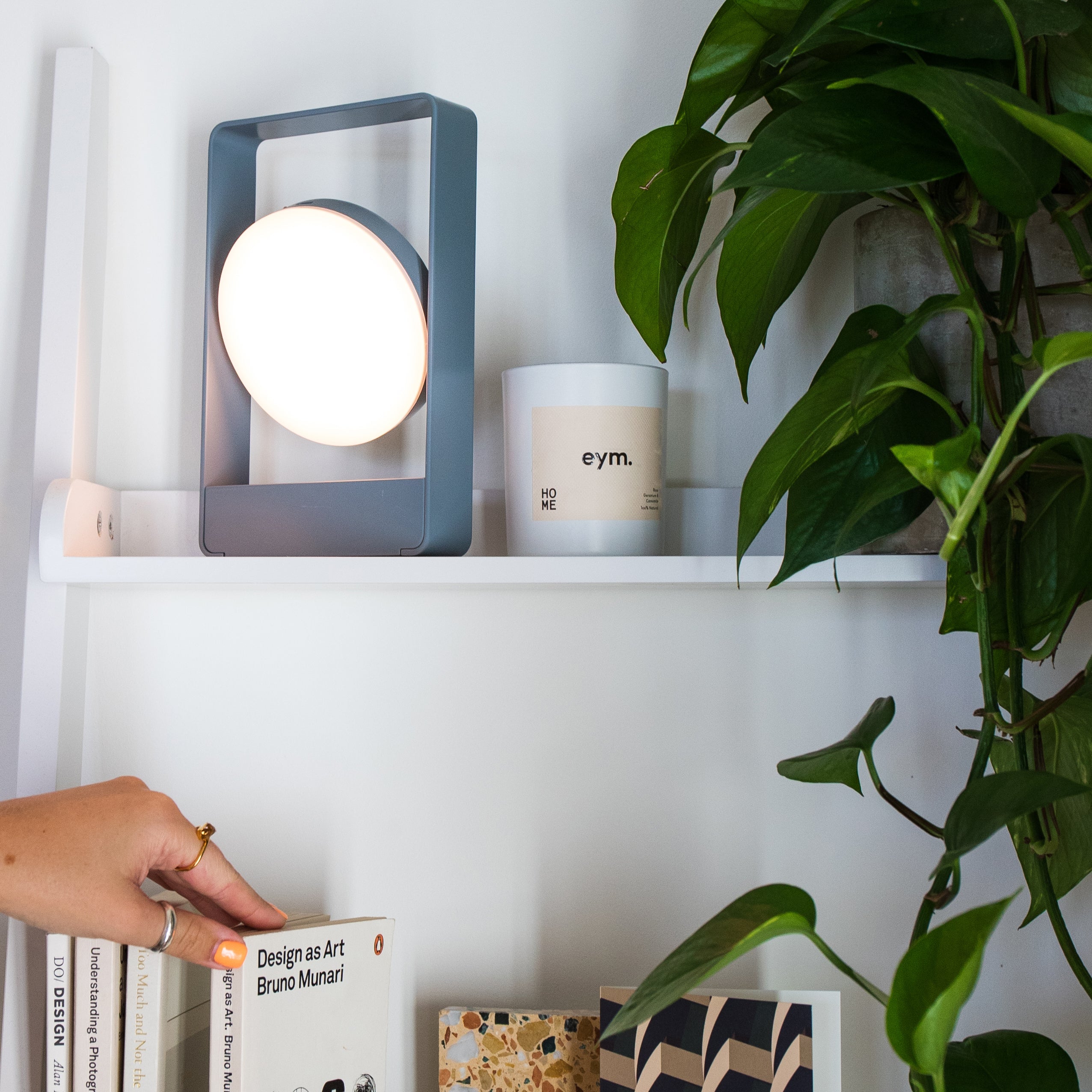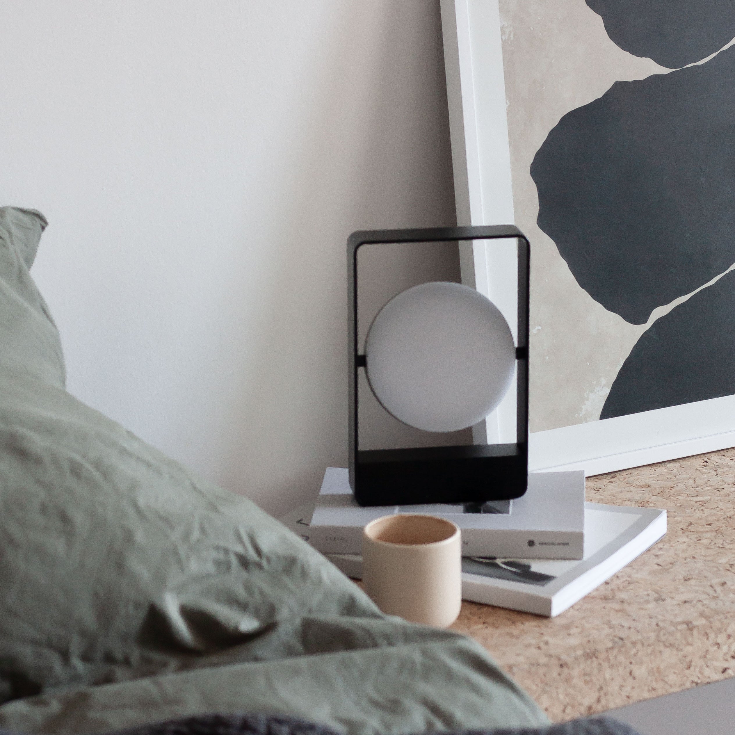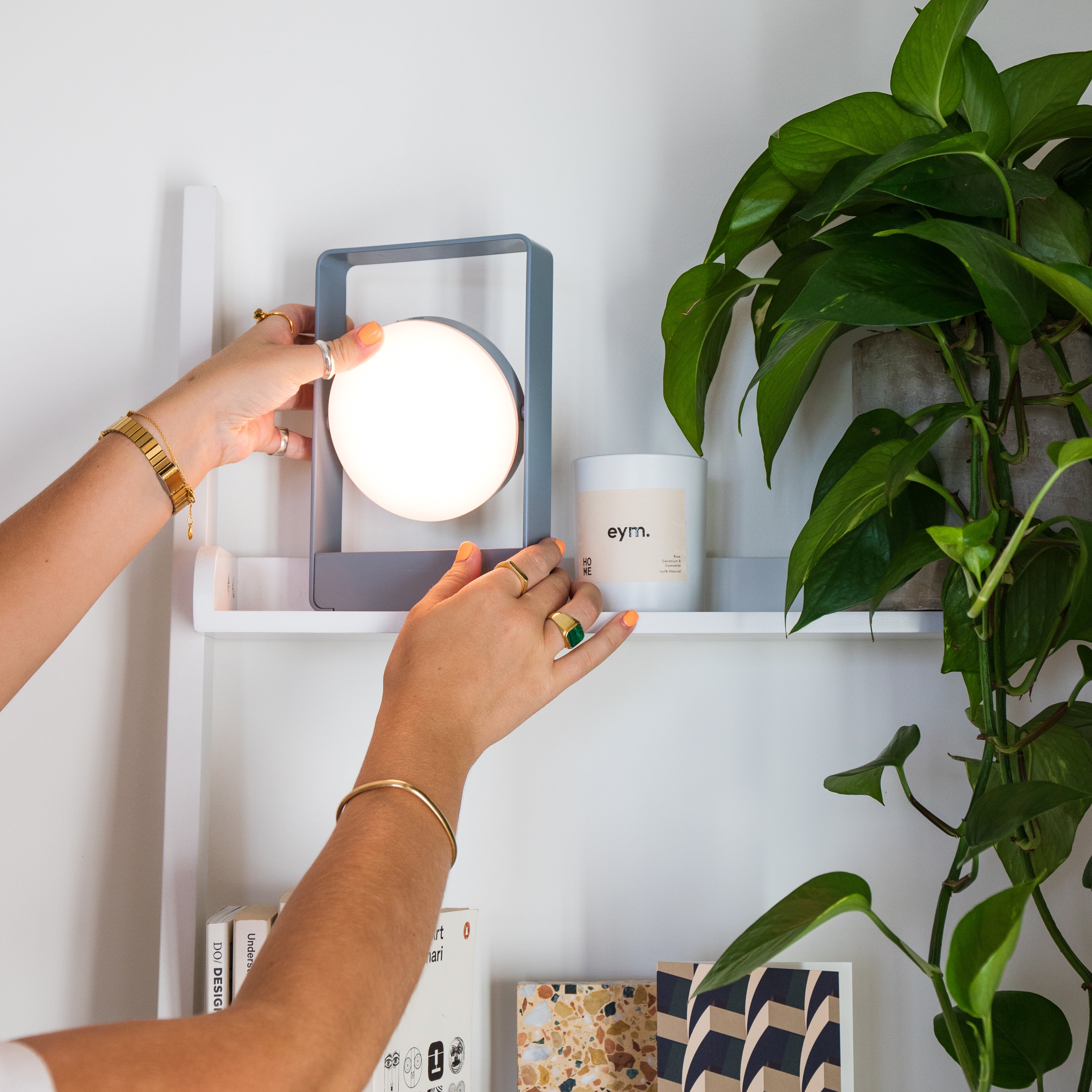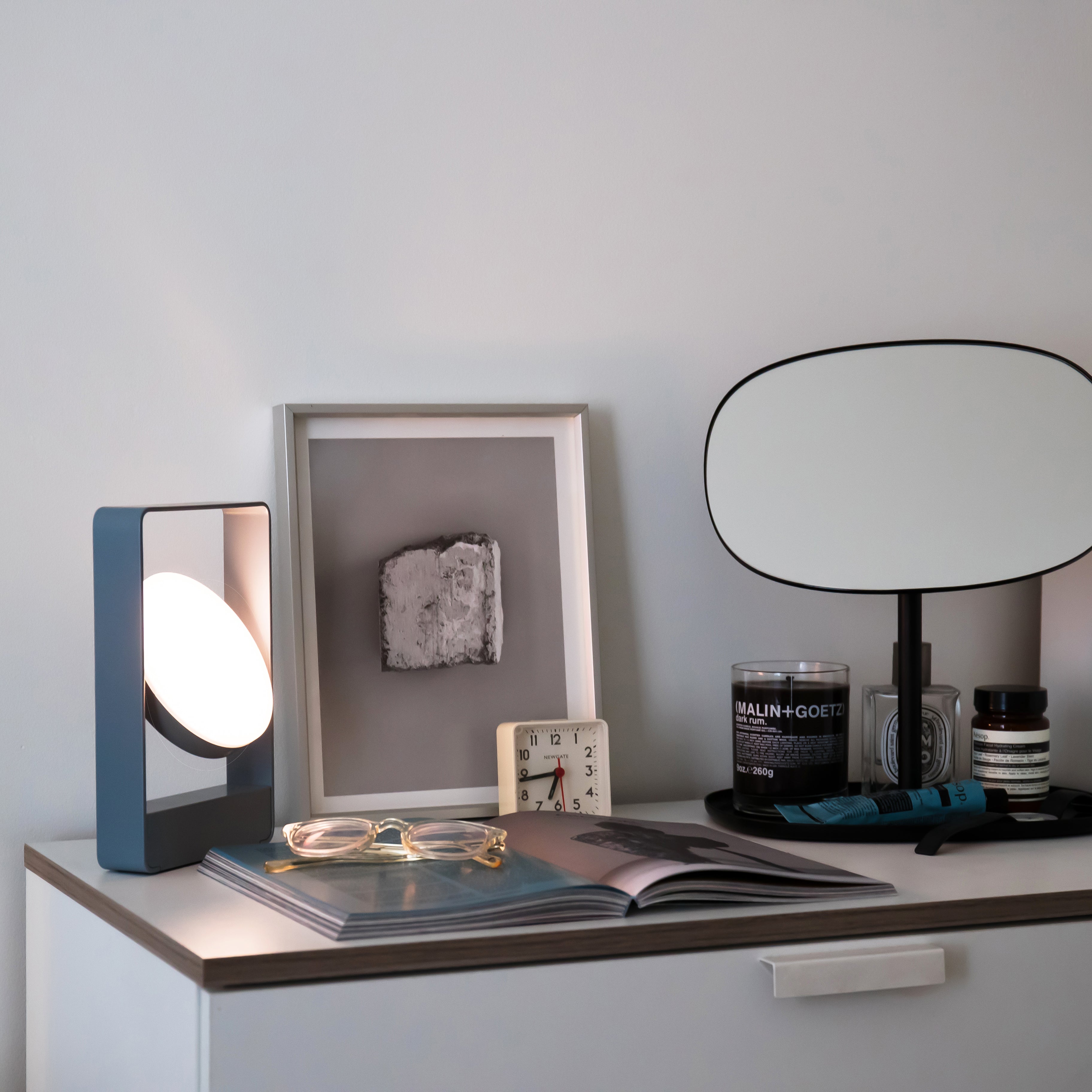 Mouro is the name of the lighthouse in Patricia Perez's hometown, and the designer’s portable lamp also serves as a ready beacon, easily moving from indoors to outside. In a powder-coated steel frame, the central element rotates 360 degrees and the light is dimmable with 3 settings. Recharge via a discreet USB inlet for up to 6 hours of use at full power.