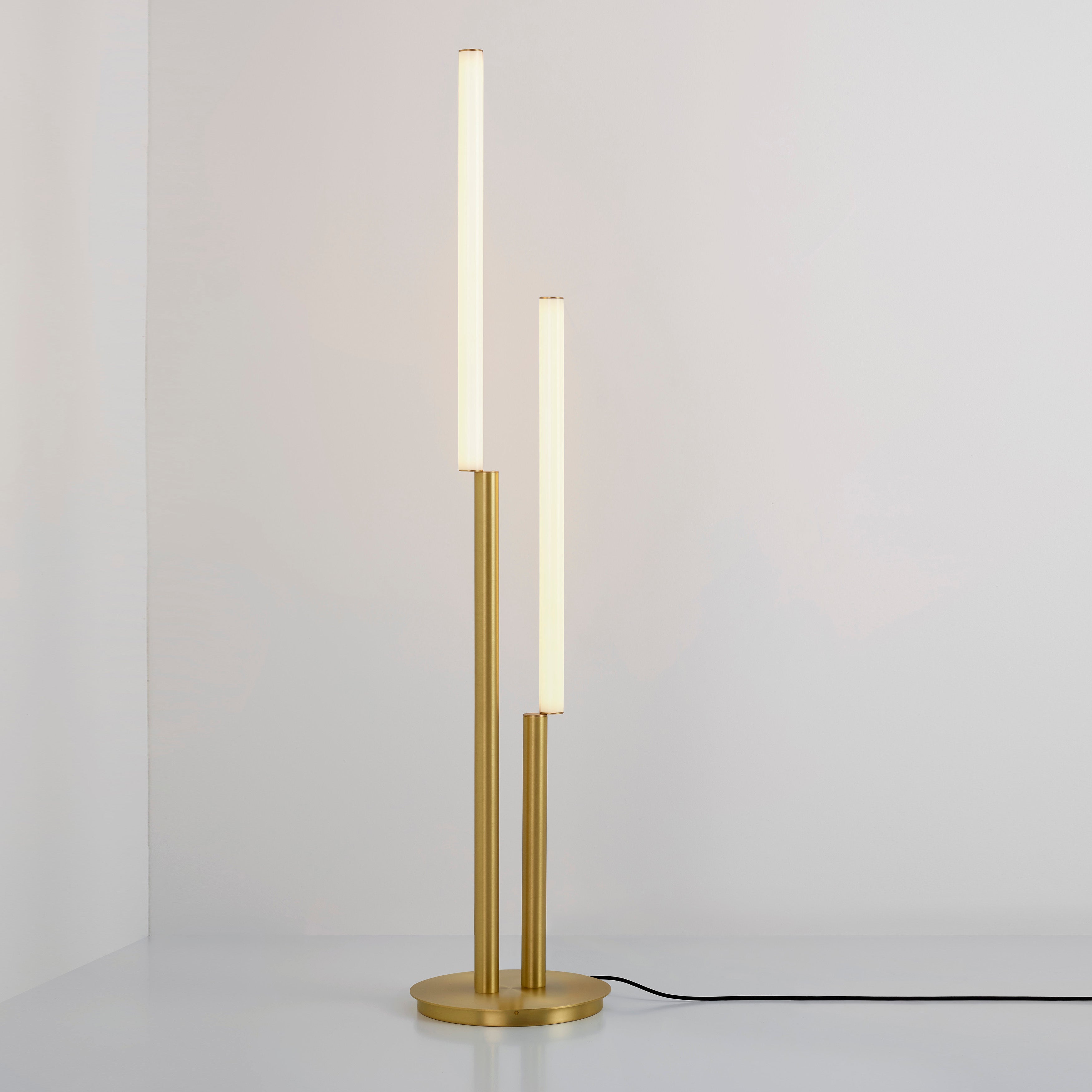 Gorgeously crafted by artisans in France, Signal adapts as a pair of floor versions that repeat the collection's signature offset detail. French designer Pauline Deltour extends her off-kilter placement in a single Pivot model with a horizontal glowing light or the vertical Duo with poles of illumination at differing heights. CVL's solid-brass construction is offered in a selection of exclusive polished and satin finishes, with each tubular polycarbonate diffuser equipped with a radiant integrated LED light source.