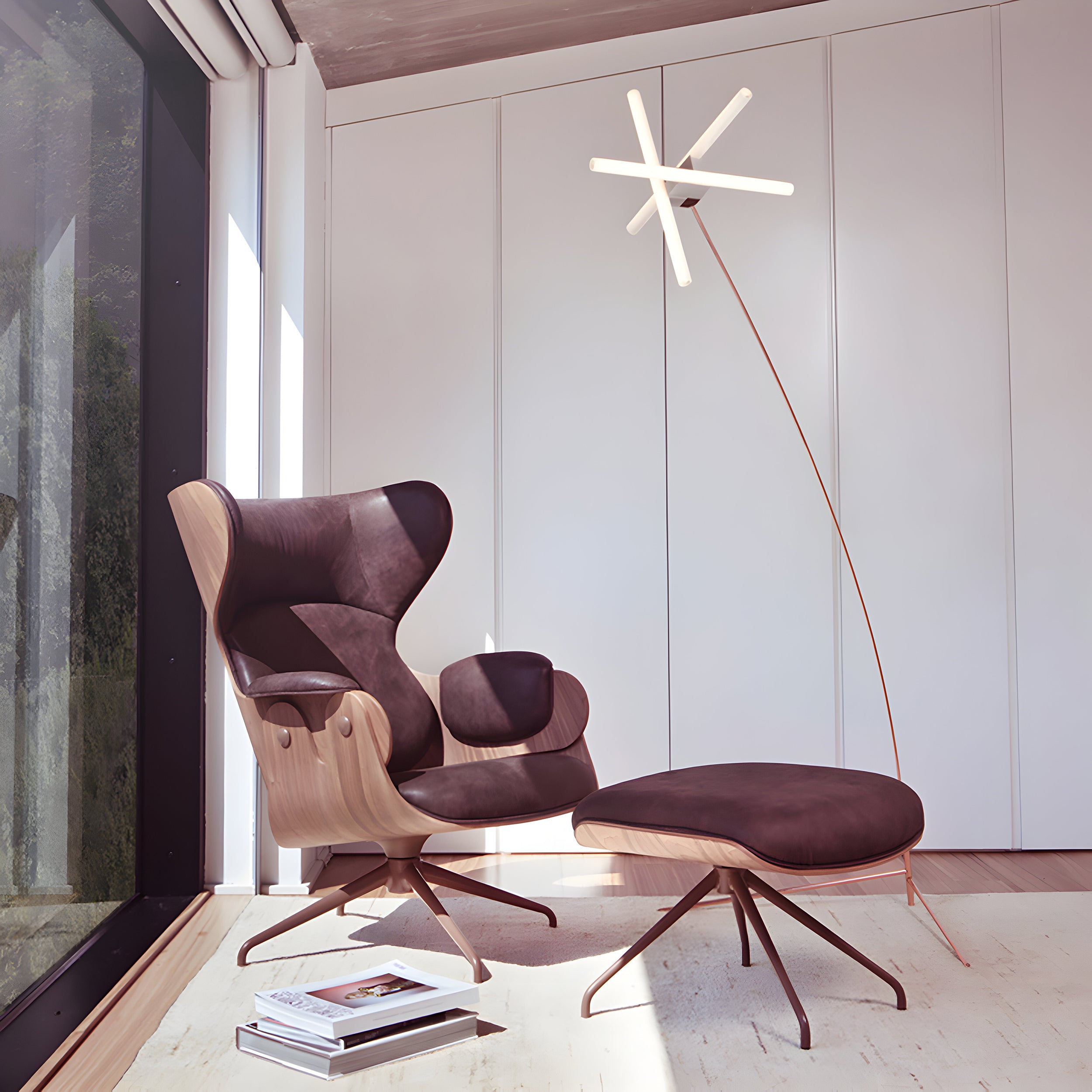 Pepe Cortés’ 1976 design was left in a drawer until BD put the floor lamp into production in 1984 (its very name means “forgotten”). Rejuvenated with LED technology. Olvidada is just as current 40 years on, characterized by its signature polished-copper tubular structure and geometric combination of bulbs.