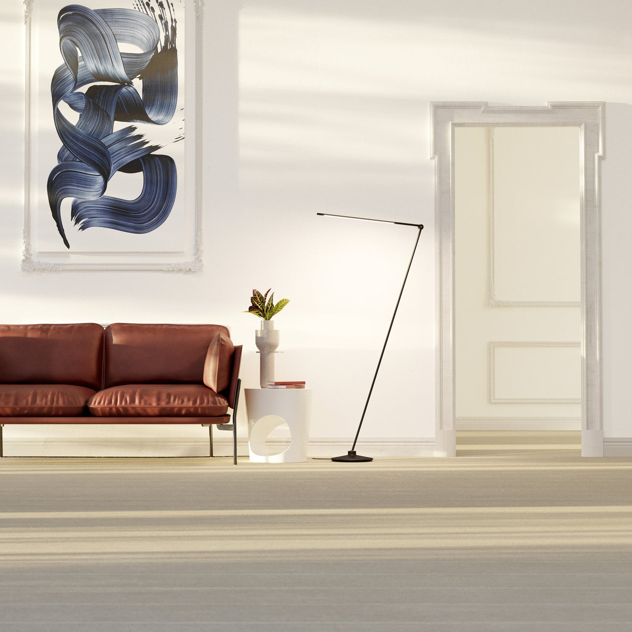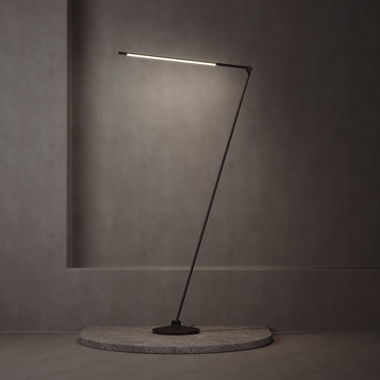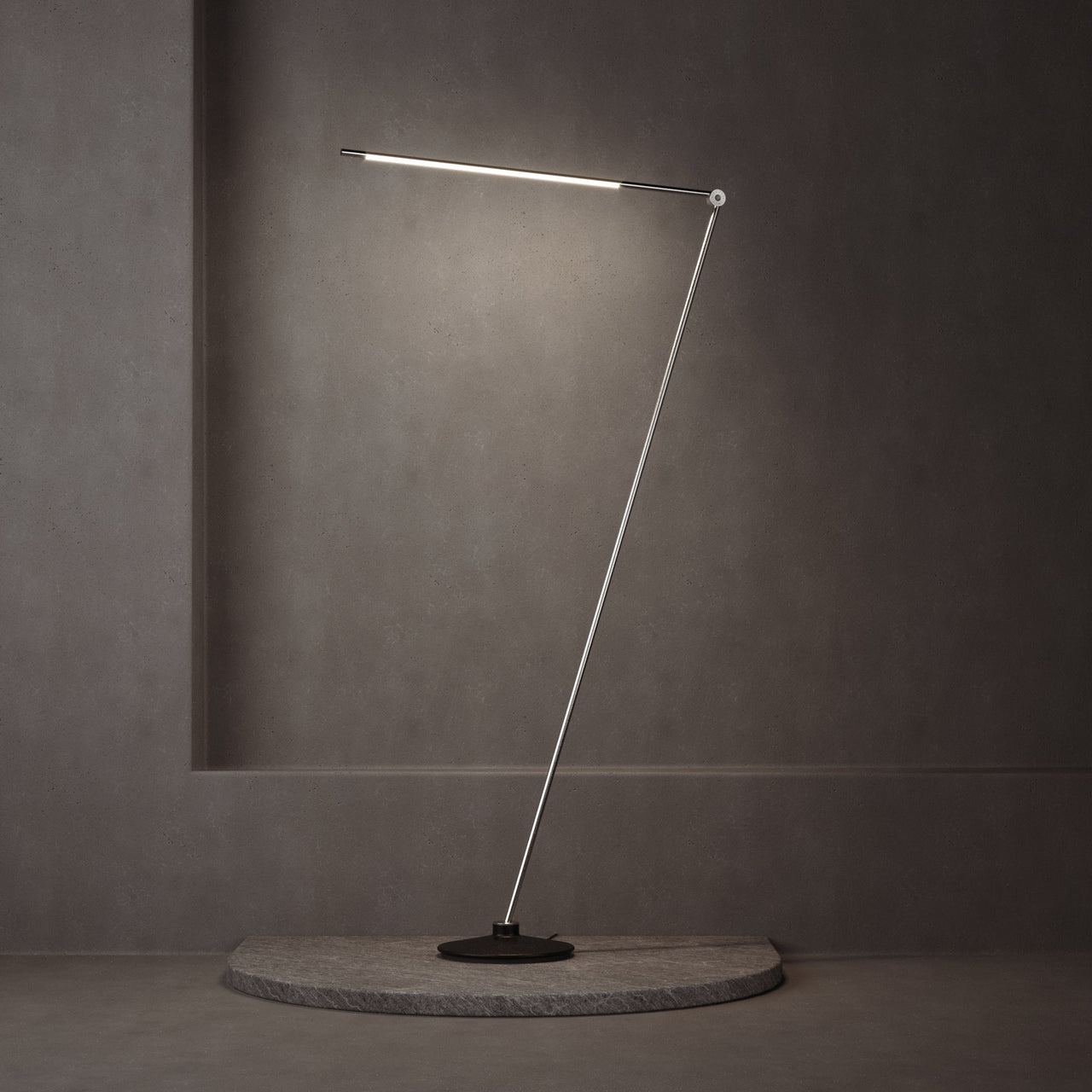 The floor version of the best-selling Thin Lamp is a marvel of minimal volume and maximal effect. Enabled by LED technology, it's an ultra-slim wand of light—a mere 1/2 inch—mounted on a ball joint for multi-directional movement. This lithe light is powered by a maximum 7 watts of power for an awesome 500 lumens of warm white illumination. Seattle-based creative director Peter Bristol collaborated on the Thin concept with lighting brand Juniper for this ever-expanding collection of freestanding, wall and ceiling versions.