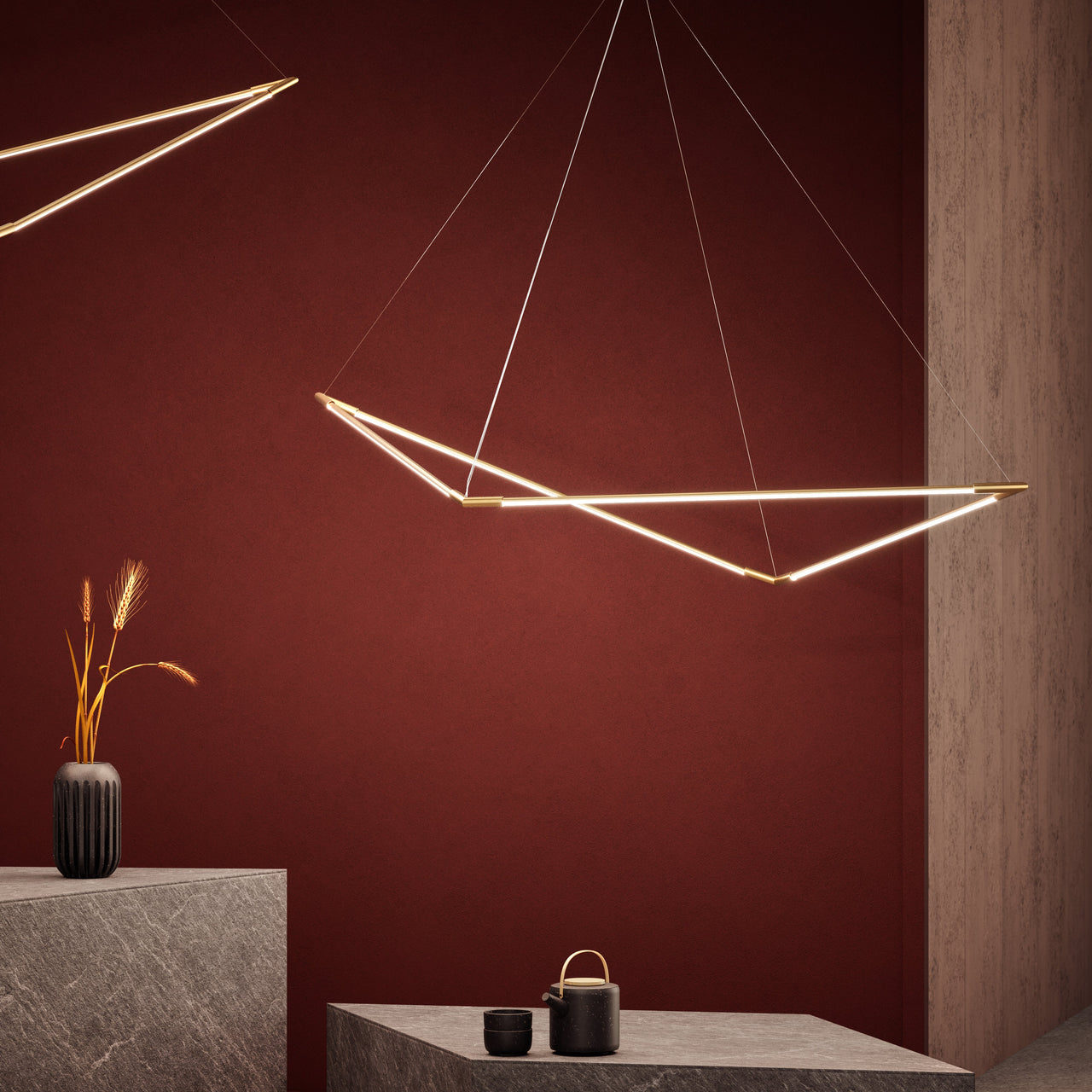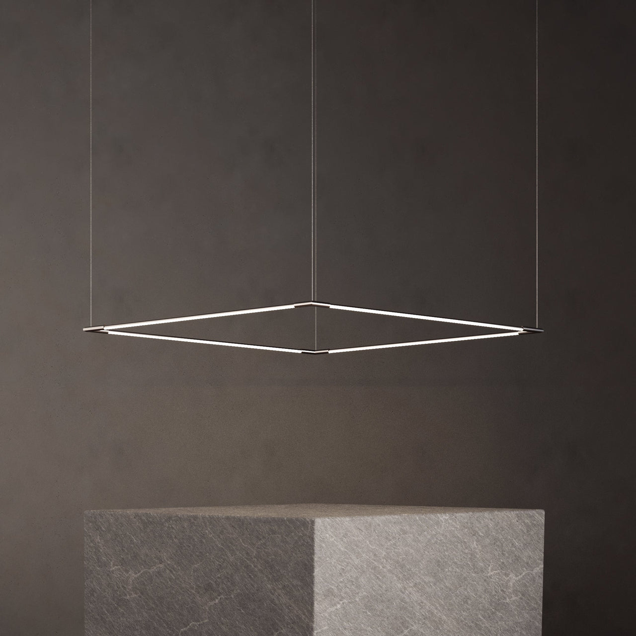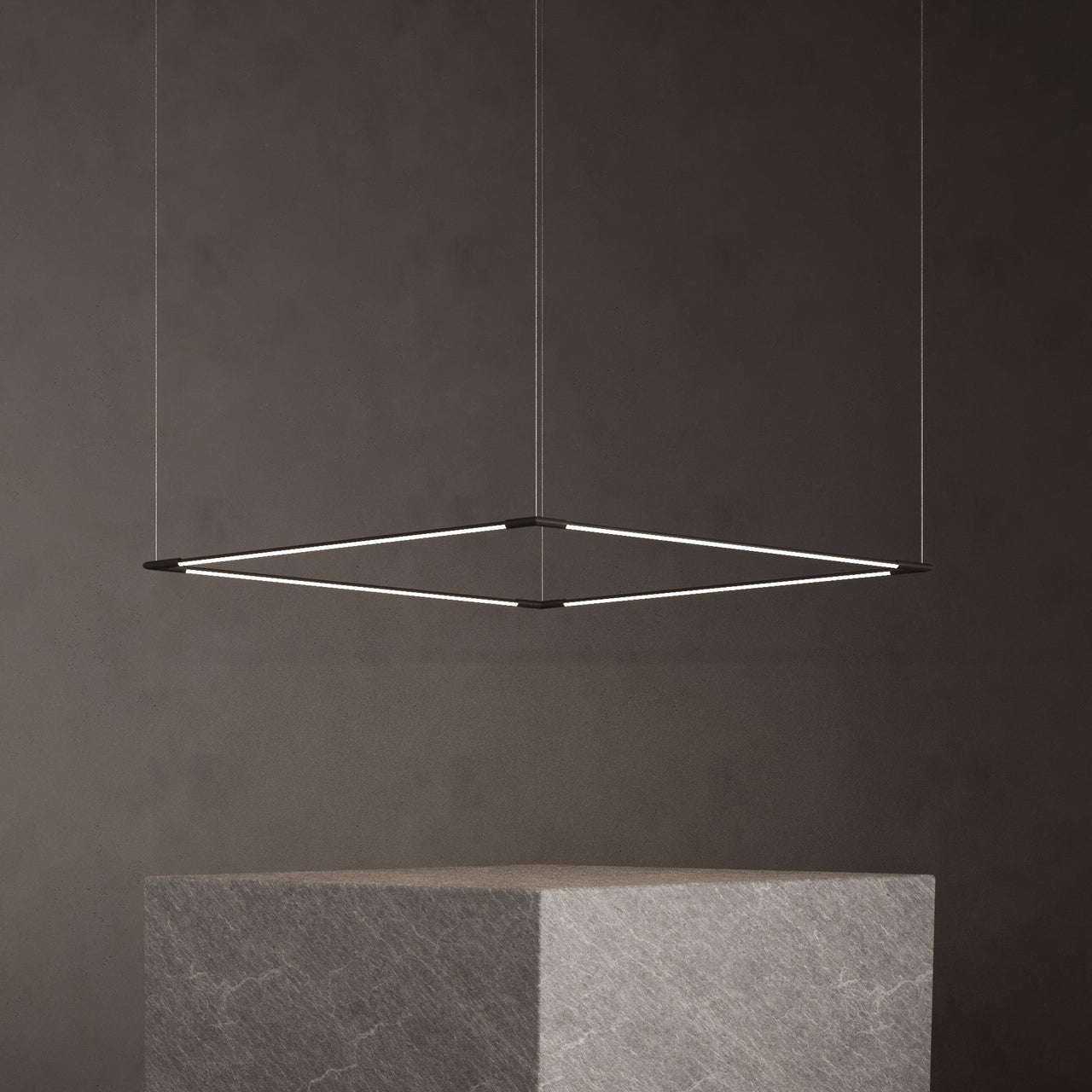 Also known as a parallelogram, this lighting shape adds dramatic possibilities to Peter Butler’s signature Thin Primaries lighting system for Juniper Design. As either a suspended or wall-mounted fixture, it is more than just a pretty shape, delivering functional illumination for commercial, residential, or hospitality settings. Larger installations are a customizable option as the fixtures can be clustered, expanded or interlocked. Fully rotatable to orient the light in the desired direction, with magnetically connecting ends for quick and easy installation and light adjustability.