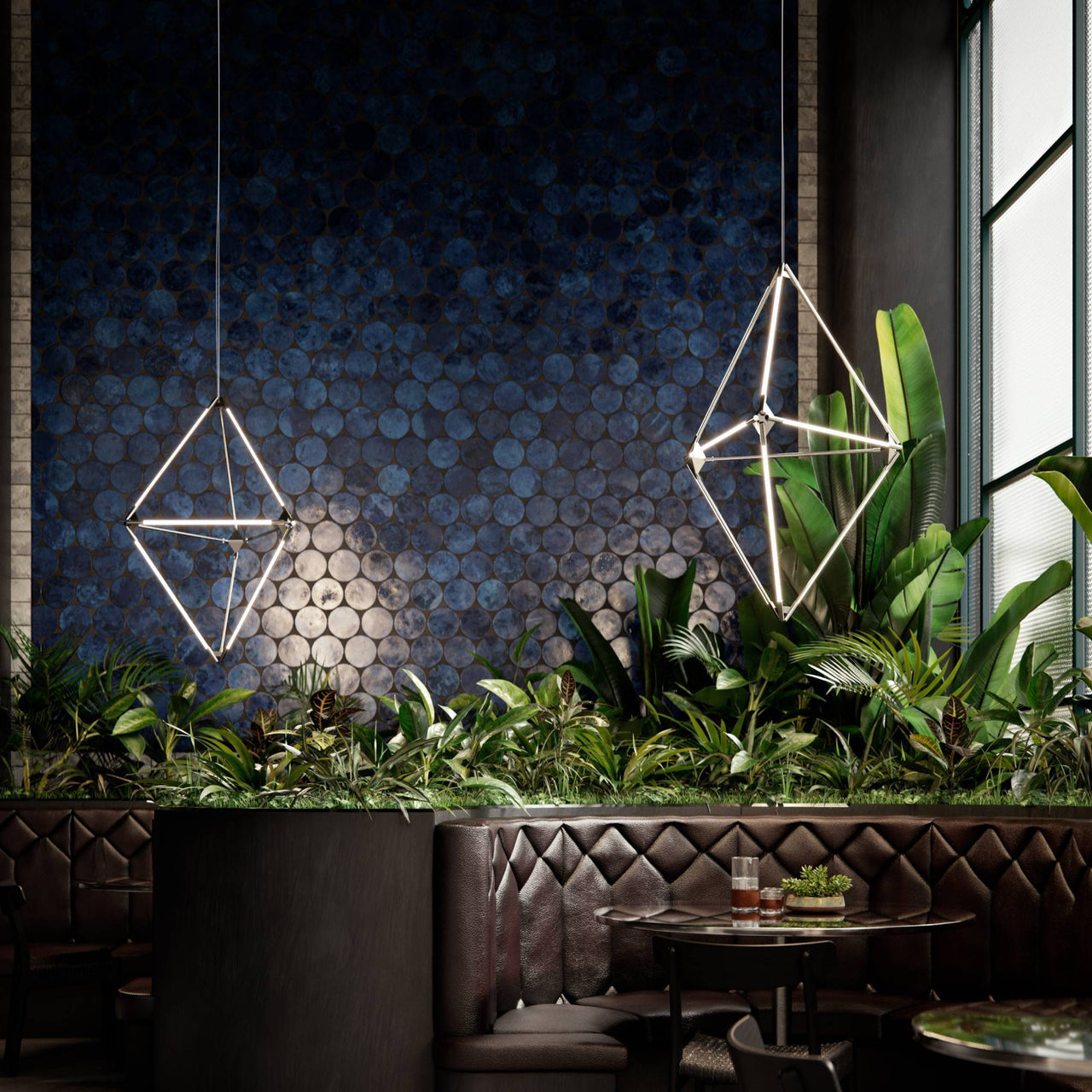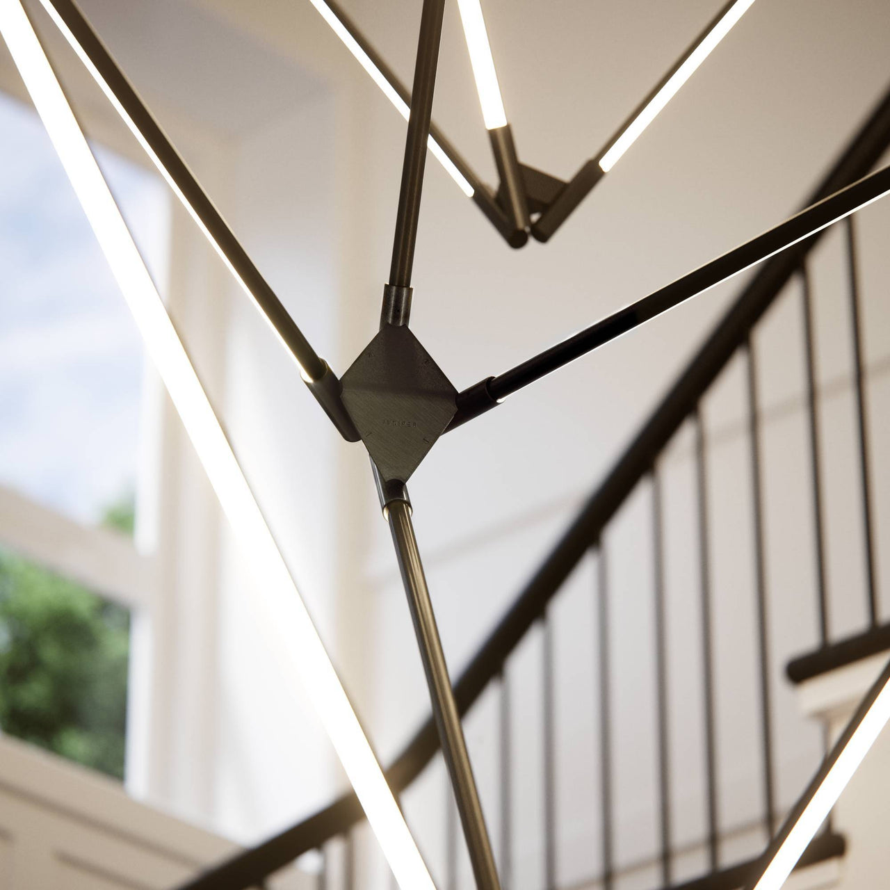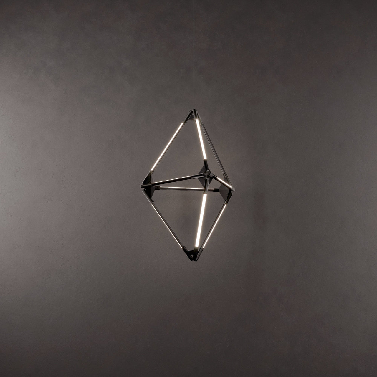 Bright like a diamond, the song goes, and Thin's hanging Solids Diamond creates a magical 3-D volume of light. The magnetic 1/2-inch LED segments are precision-machined in solid brass and connect with corner pieces to rotate inward for concentrated light or face outward for a diffused aura. Available in 3 sizes and a range of finishes to shine ever so bright in nearly any customized display imaginable.