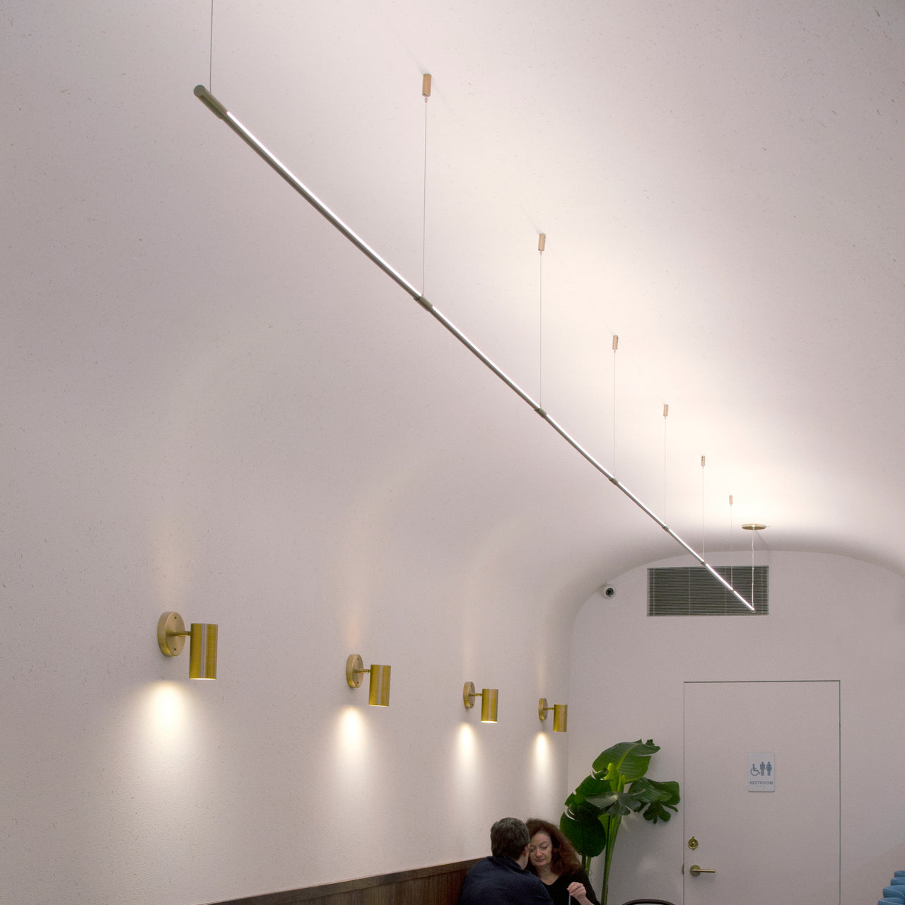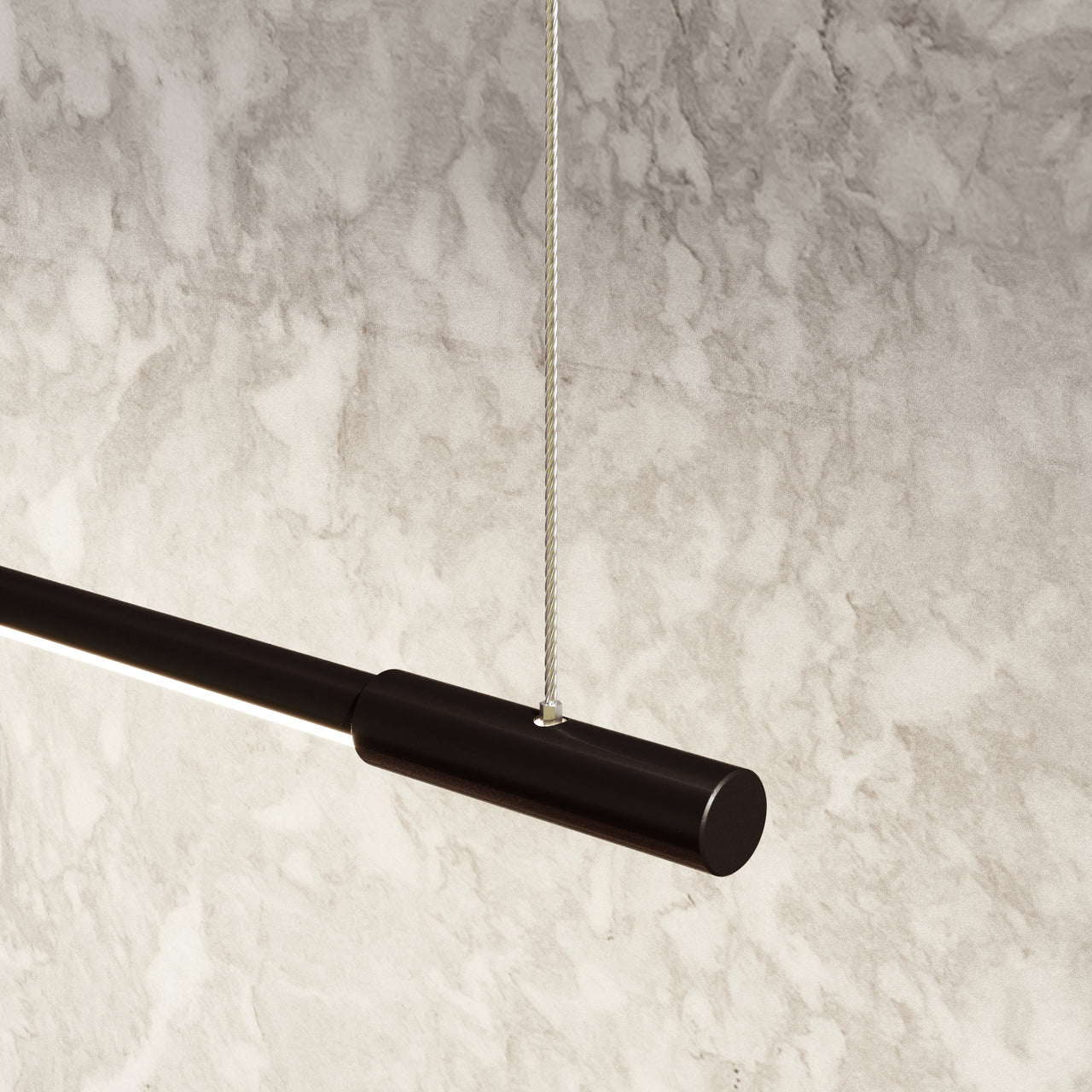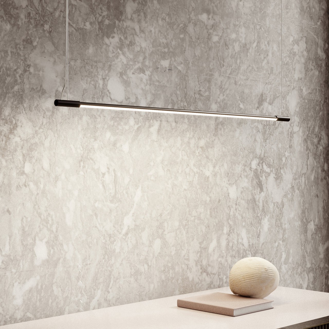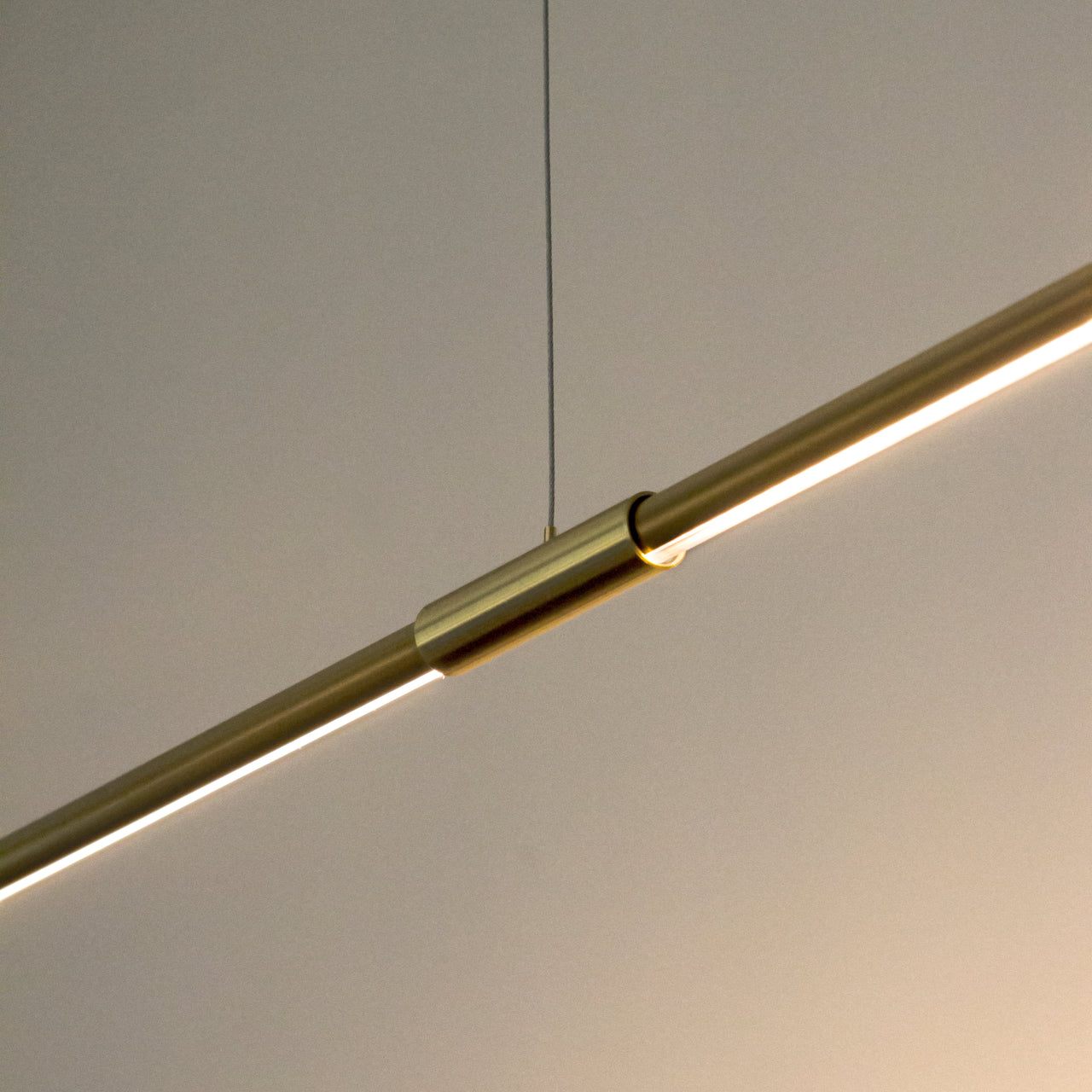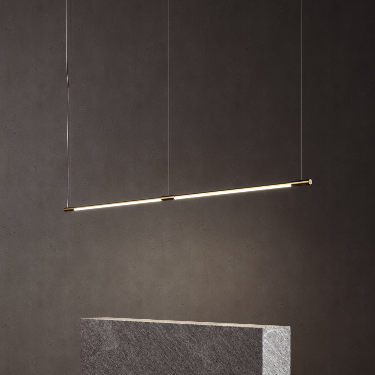 Putting a fine line on task lighting, Thin Suspension is an LED pendant light that extends designer Peter Bristol's signature ultra-slim profile. For home or office. the 1/2-inch precision-machined brass fixtures can be interconnected magnetically as modules to extend to almost any desired length, Juniper Design's hand-finished pendant is fully dimmable and an adroitly minimalist addition to a variety of settings.