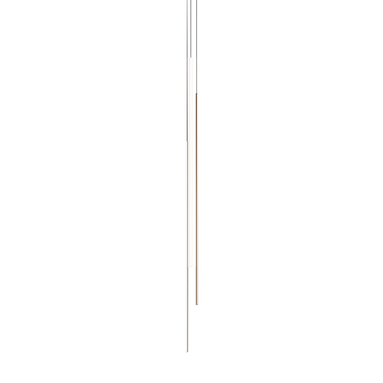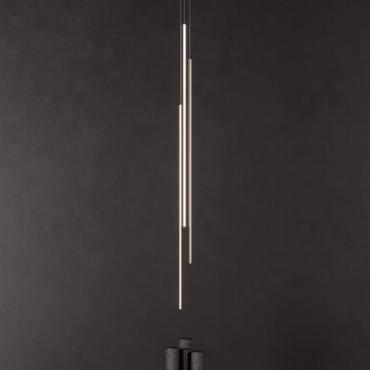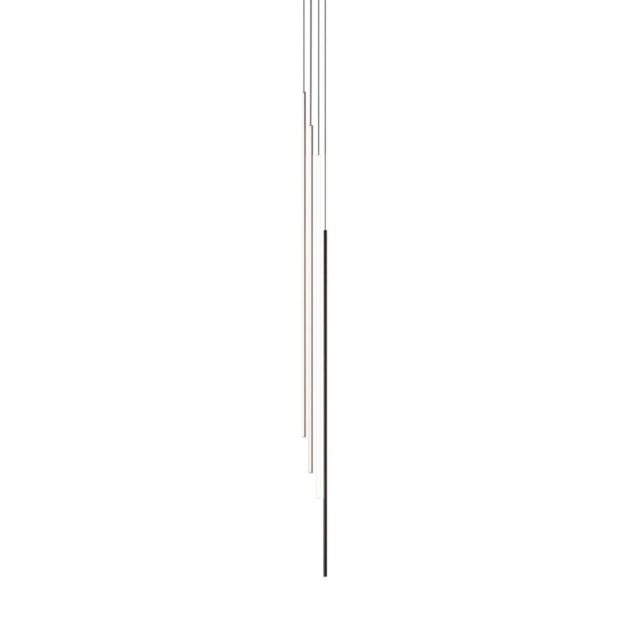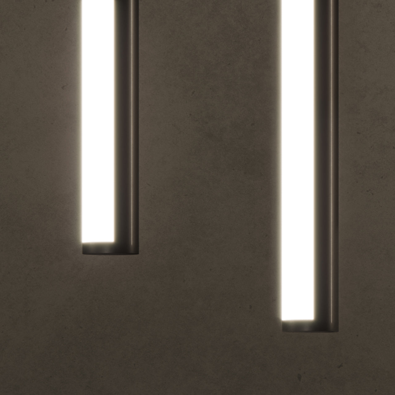 Thin Vertical Suspension drops as a single attenuated line, emblematic of Juniper’s signature 1/2-inch diameter lighting innovation. Each LED segment can be rotated 360 degrees on-site to direct the illumination as needed and may be installed singly or clustered with up to 6 segments, each individually adjusted for height. Available in 3 lengths and a choice of luxe finishes, each segment is weighted so it does not move as it drops from the ceiling but remains still and steady.