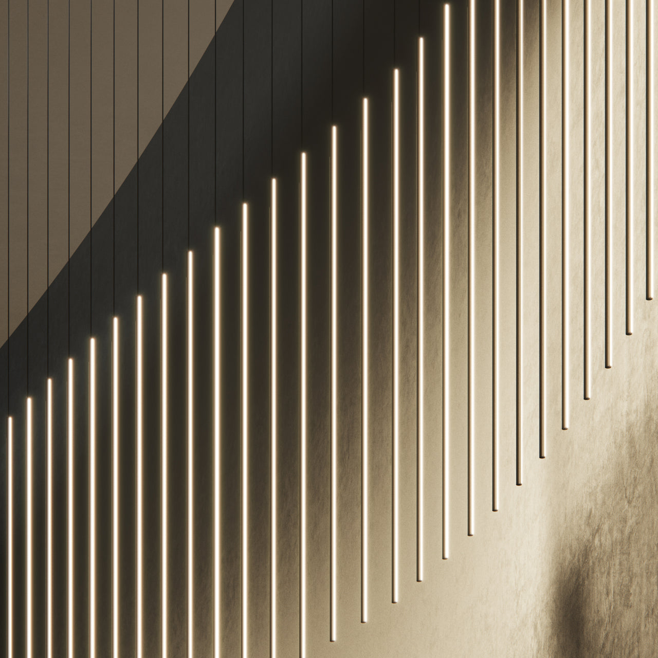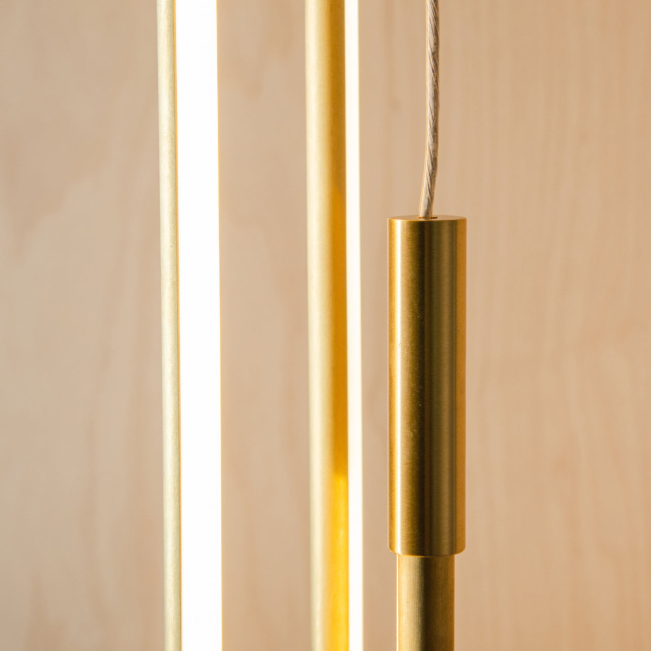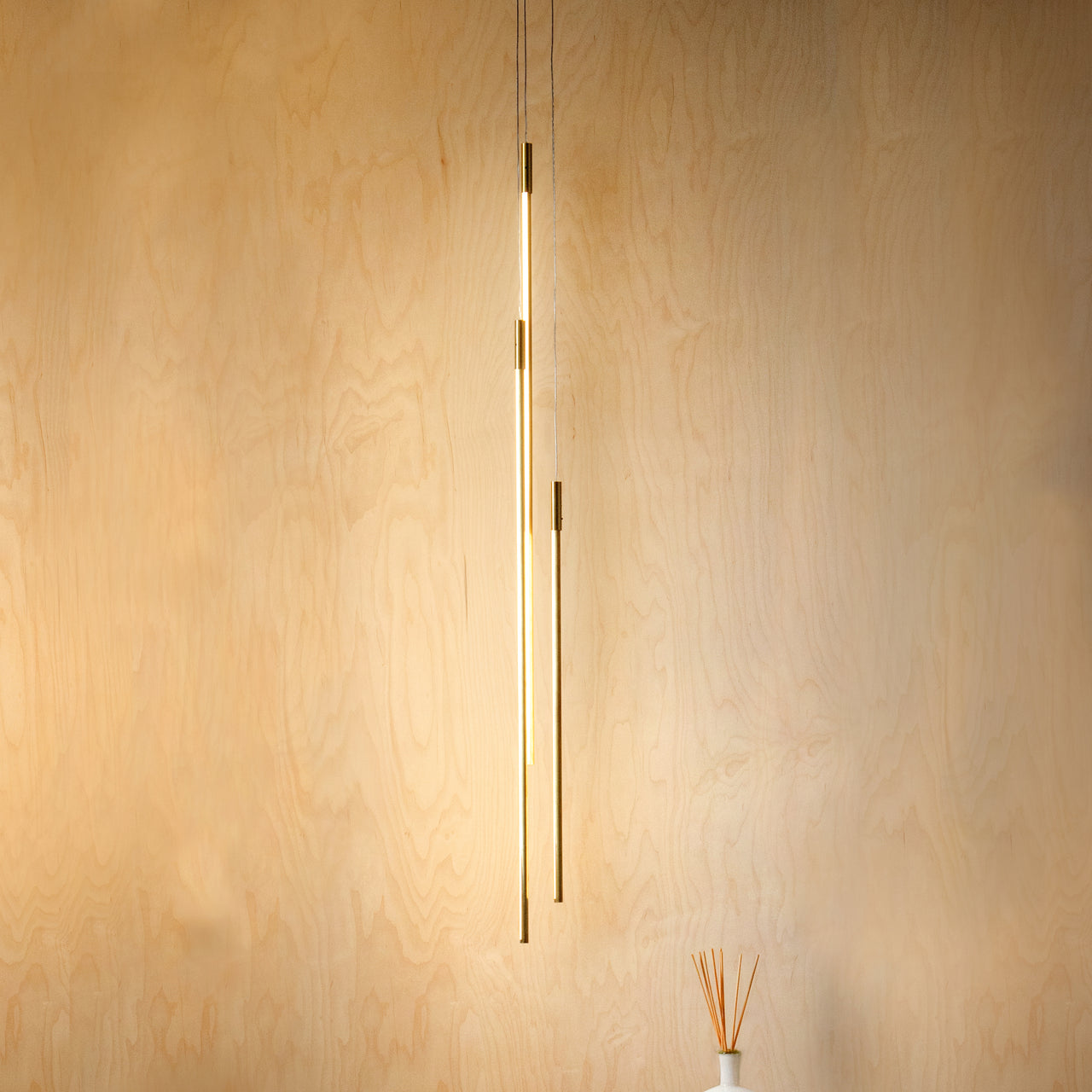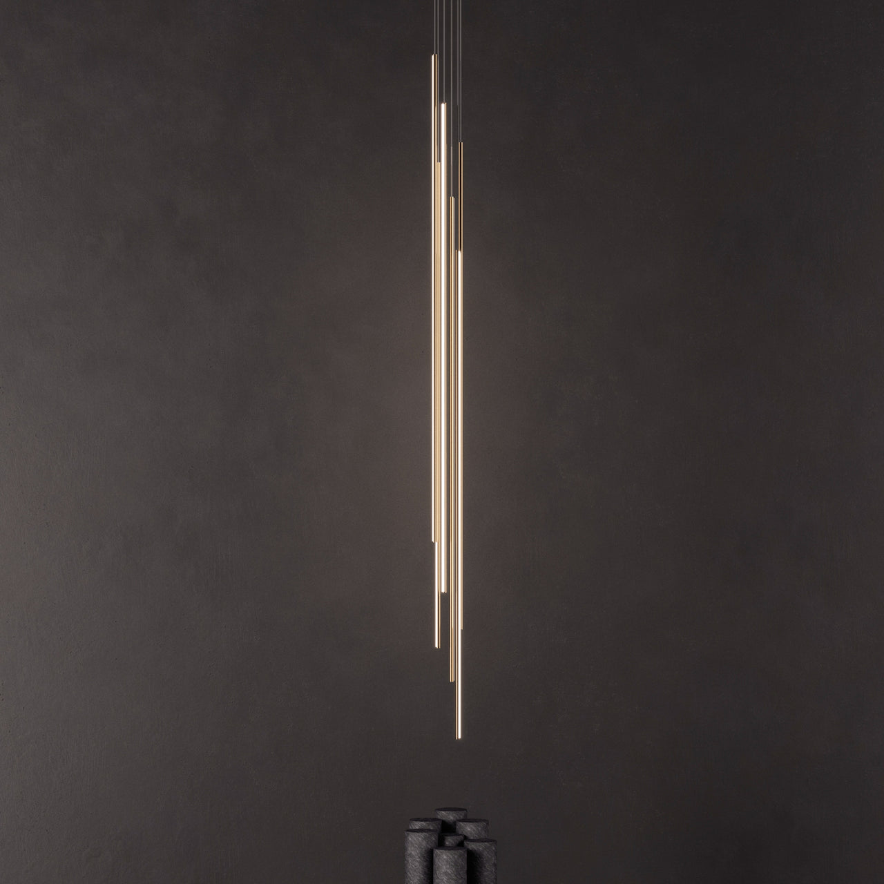 Thin Vertical Suspension drops as a single attenuated line, emblematic of Juniper’s signature 1/2-inch diameter lighting innovation. Each LED segment can be rotated 360 degrees on-site to direct the illumination as needed and may be installed singly or clustered with up to 6 segments, each individually adjusted for height. Available in 3 lengths and a choice of luxe finishes, each segment is weighted so it does not move as it drops from the ceiling but remains still and steady.