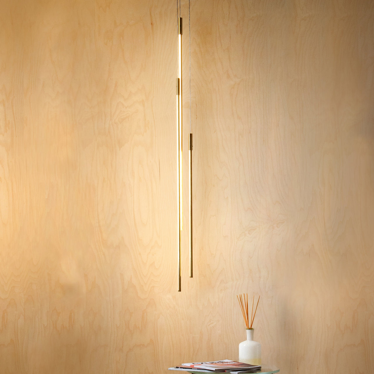 Thin Vertical Suspension Light: Small + 3 Segments + Satin Brass
