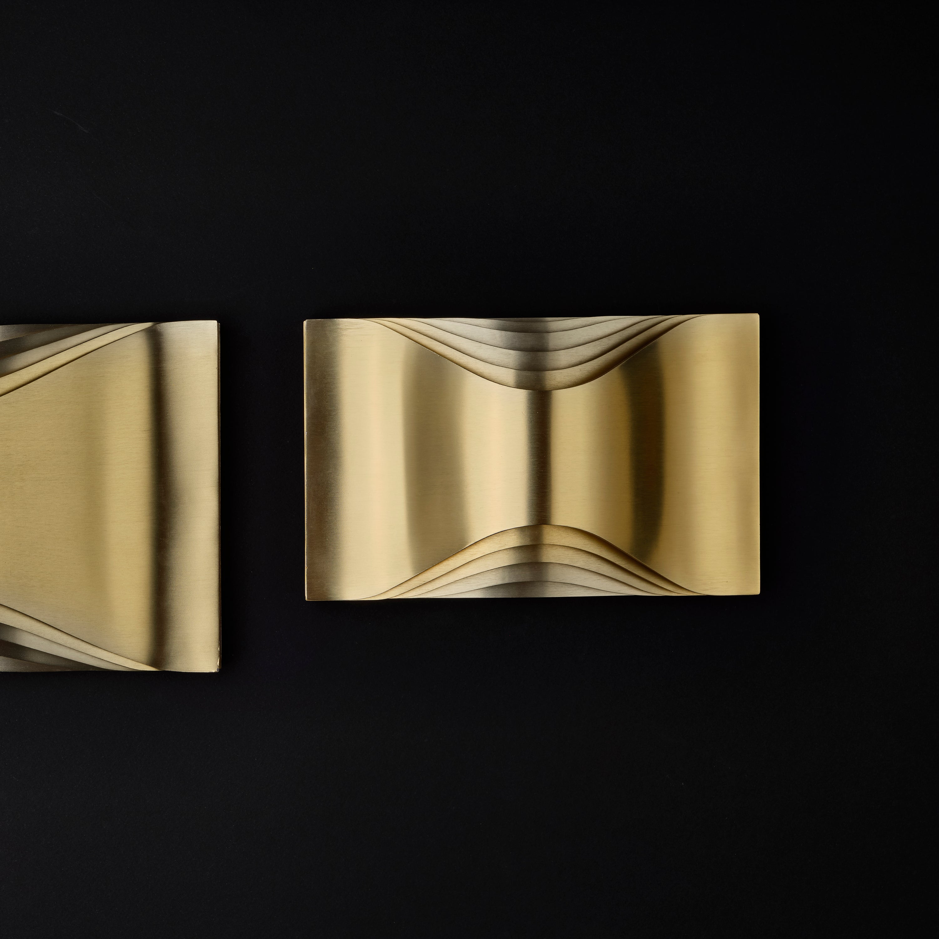 Designer Philippe Nigro explores a striking new wavelength with his dynamic wall light from DCW Éditions' ambiance-enhancing Atmospherics collection. Fashioned in anodized aluminum, the fixture has distinctive layers of curving flanges that diffuse the illumination both above and below. Powered by the warmly toned glow from an integrated LED light source, the brushed metal form lends a sculptural accent even when switched off.