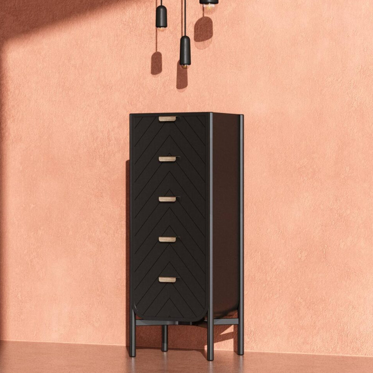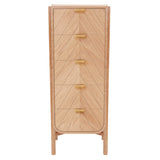 Marius Tall Chest brings a relaxed charm to the bedroom with its curved lines and lighter oak tones. Pierre-François Dubois and French design brand Hartô have not neglected storage in the equation, with the benefit of 5 deep drawers for storing plenty of clothes. In allover natural oak finish or with contrasting drawer fronts in light grey or petrol blue.
