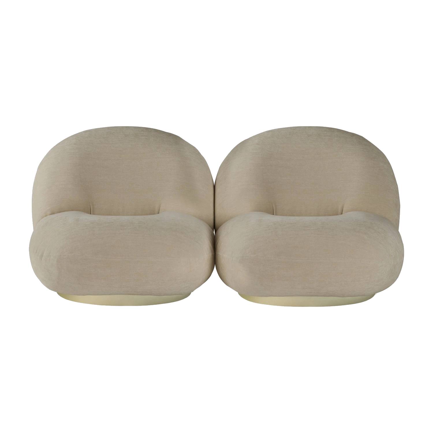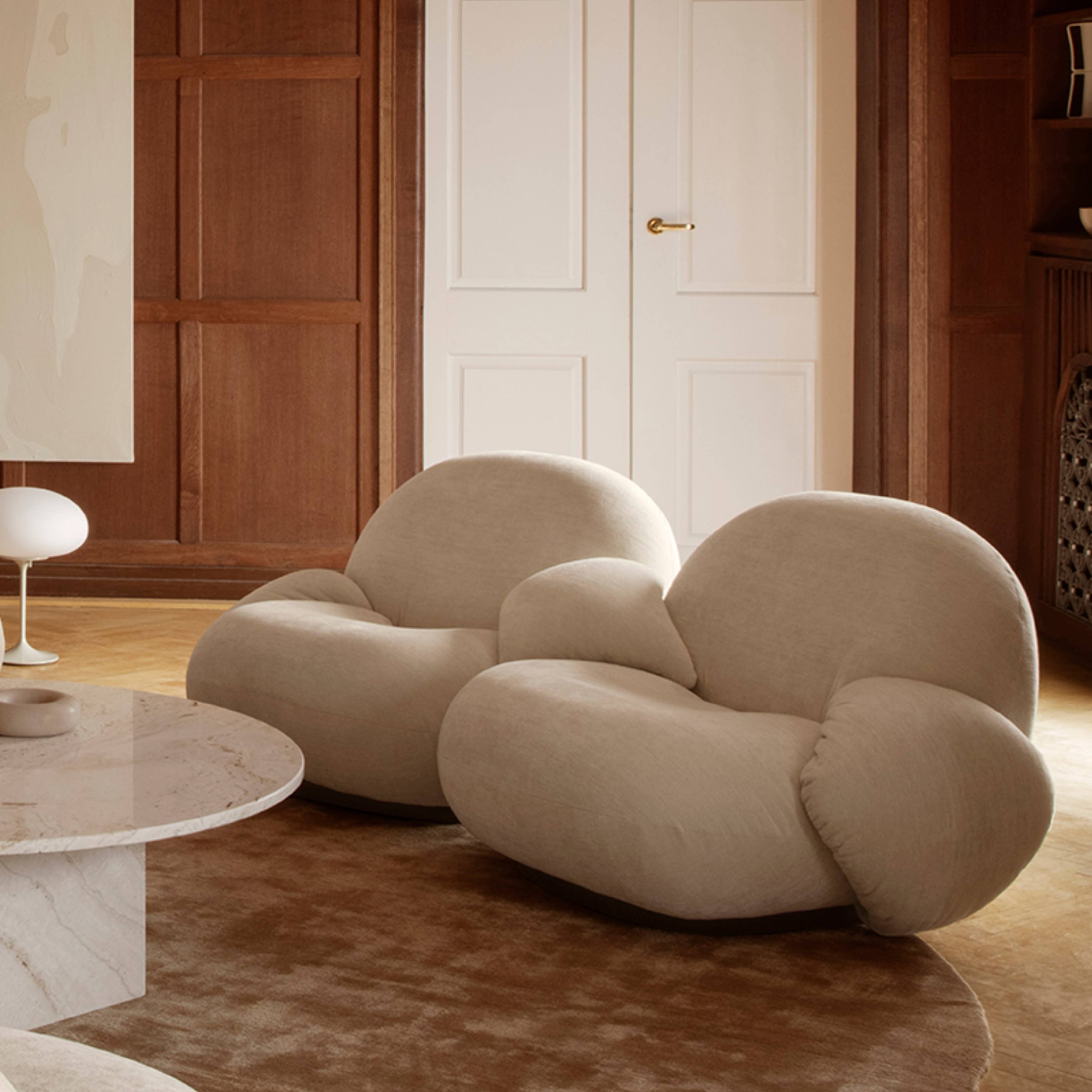Pierre Paulin’s 1975 vision of sitting on a cloud formation is enhanced with armrests on the sides and middle providing even more support and allowing one to lean with ease. Now reissued by Gubi, Pacha’s 2 Seater reveals the French designer’s obsession for ergonomic precision and exacting craftsmanship behind the sofa’s hyper-relaxed contours. A choice of black or pearl gold base and a wealth of upholstery options combine to offer a completely customizable version of this now iconic seating.