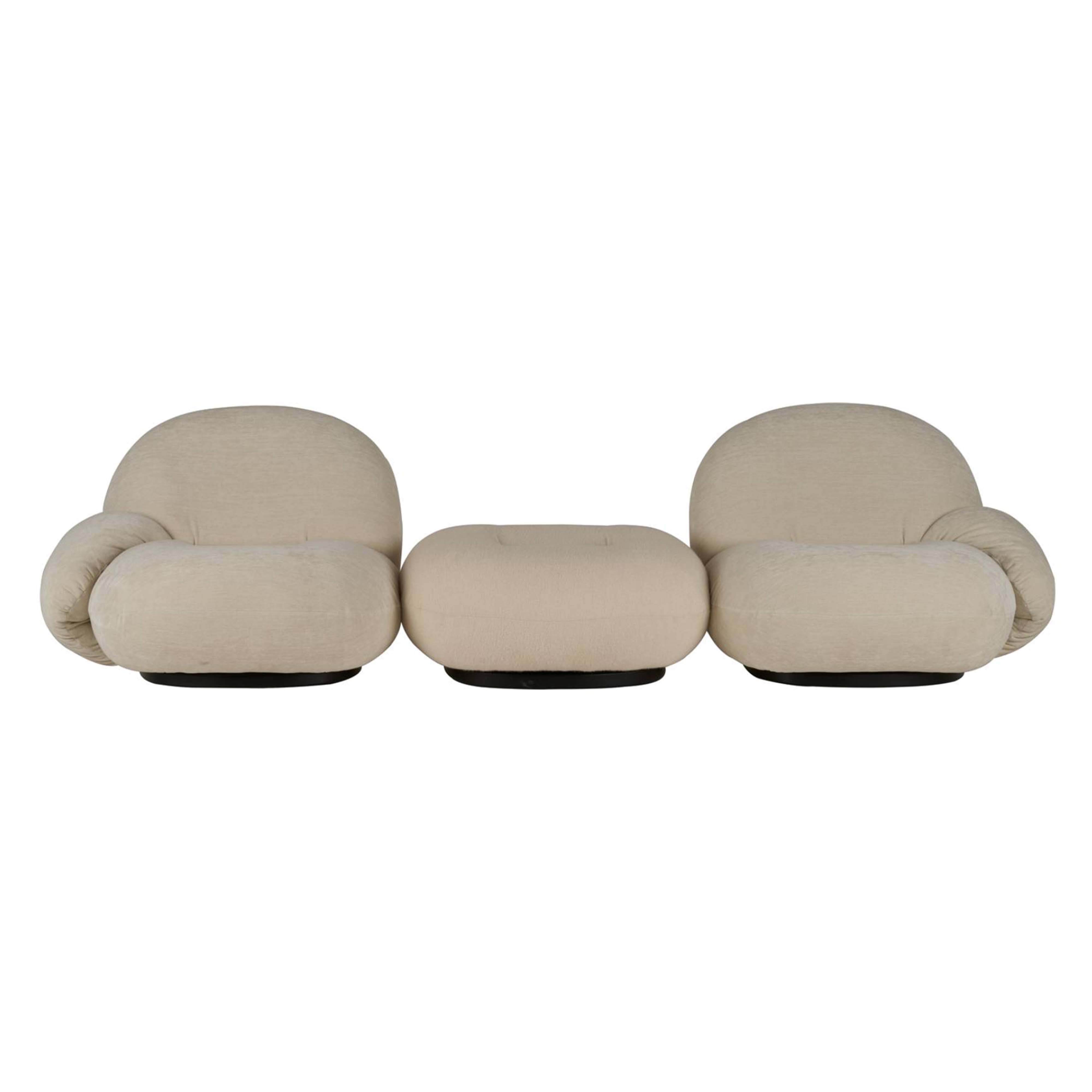 In Pacha’s more compact 2-Seater, the addition of a separate movable ottoman fulfills the seating’s promise of complete ease. Low armrests at the sides provide support and also allow for changeable sitting positions. Pierre Paulin’s iconic ‘70s cloud-like sofa combo is grounded in ergonomic precision and unstinting craftsmanship. Now revived by Gubi, it comes with either a black or pearl gold base and offers extensive upholstery options.