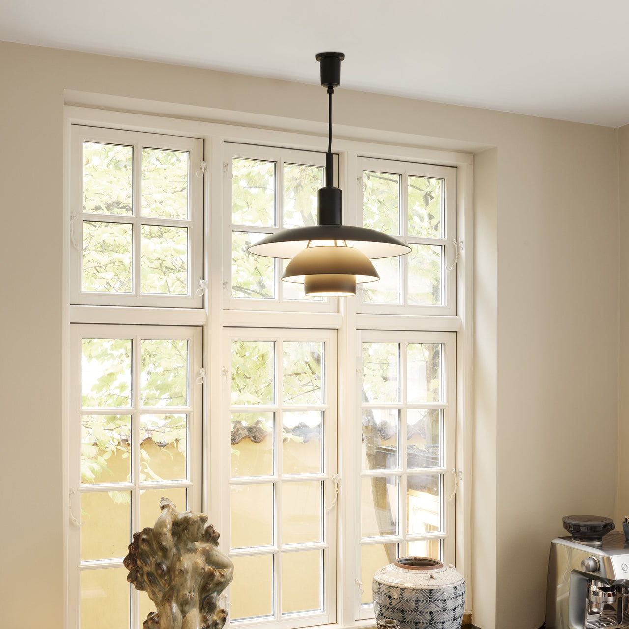In 1929, Poul Henningsen began combining metal and opal glass in his pacesetting lighting and today PH 5/5 continues to elevate interiors when placed high up in a room. Creating a cozy ambiance at home or in commercial spaces, the design assures glare-free illumination with its 3-shade formation in black spun aluminum and handblown white glass.