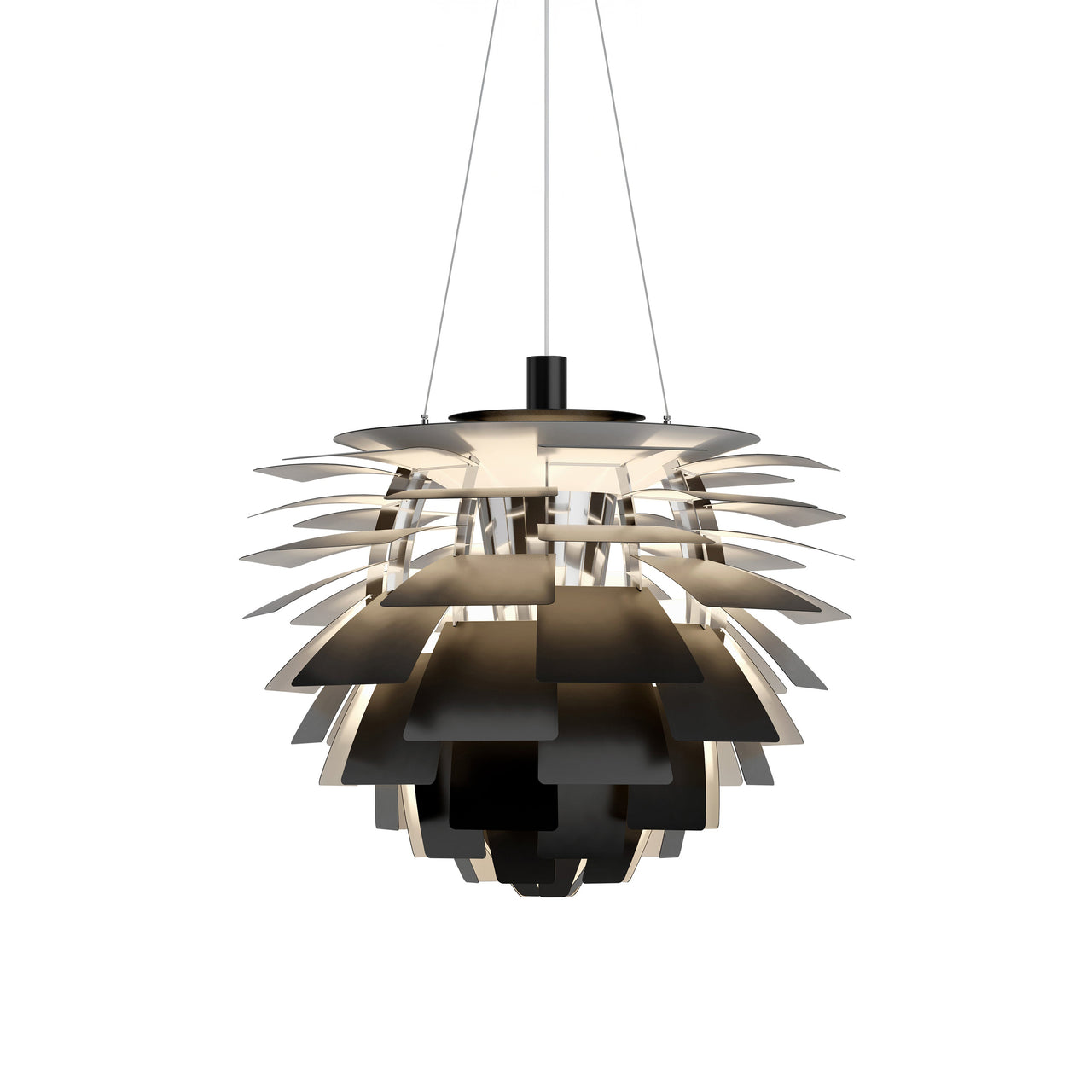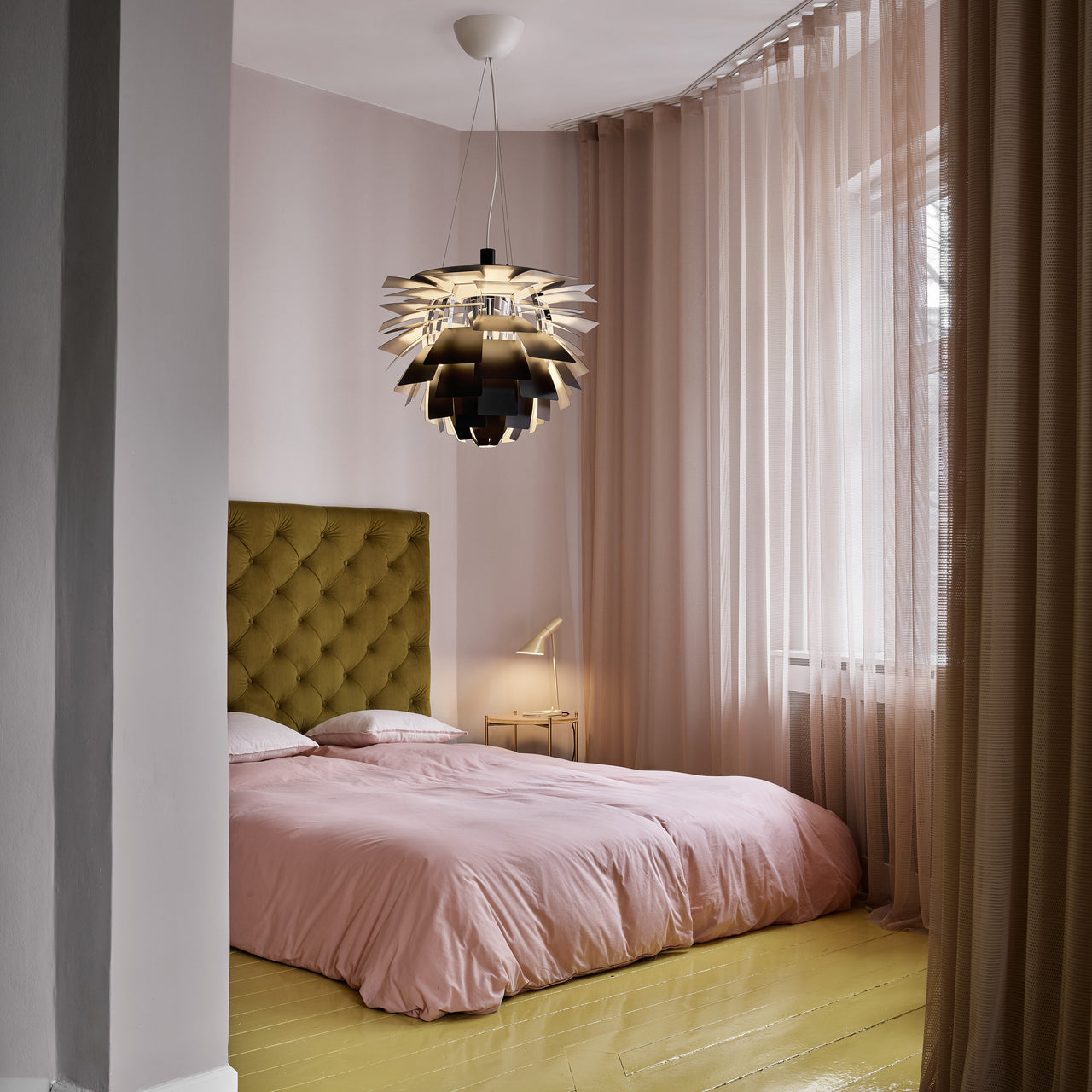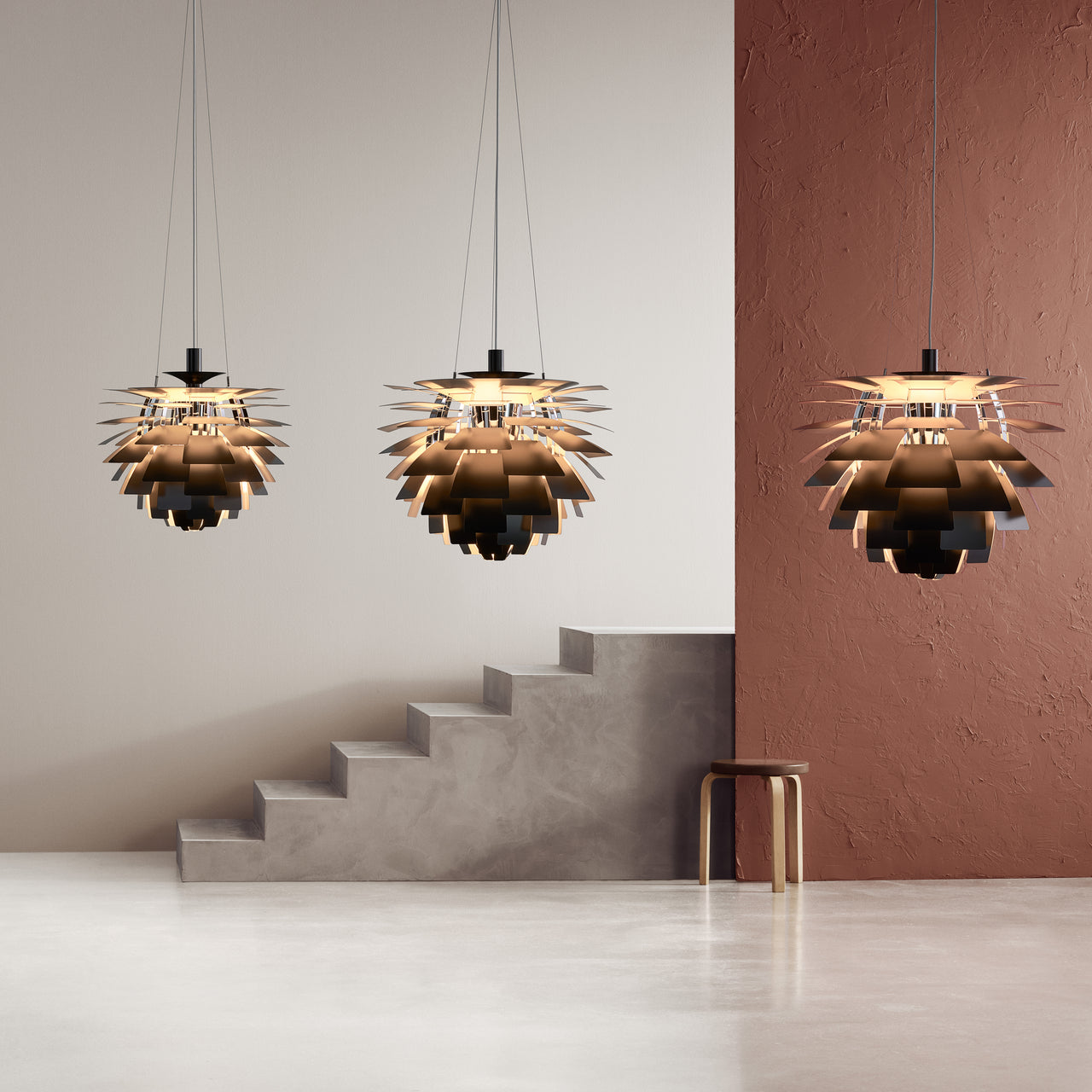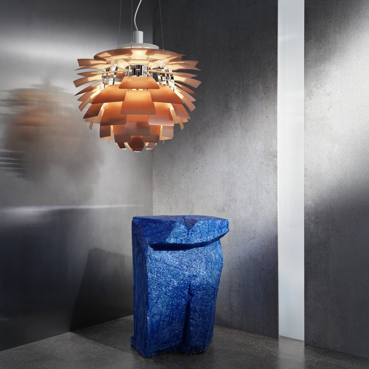 Breathtaking in form, the large version of PH Artichoke, like its sister pendants, features 72 precisely positioned leaves in concentric rows to provide glare-free light from any angle. Still largely made by hand, Poul Henningsen’s sculptural circa-1958 design, now powered by an LED, is offered in a range of metallics or a powder-coated finish.