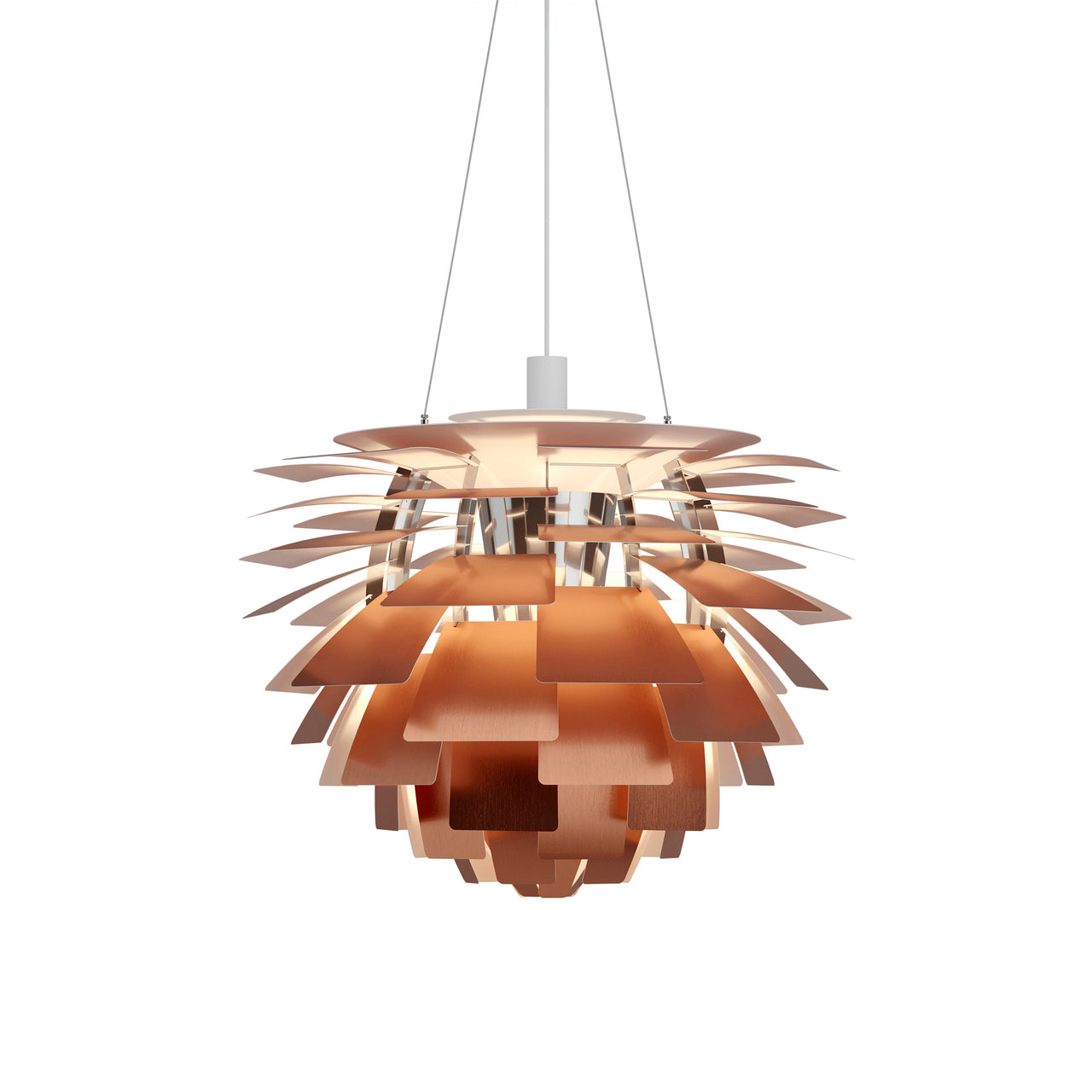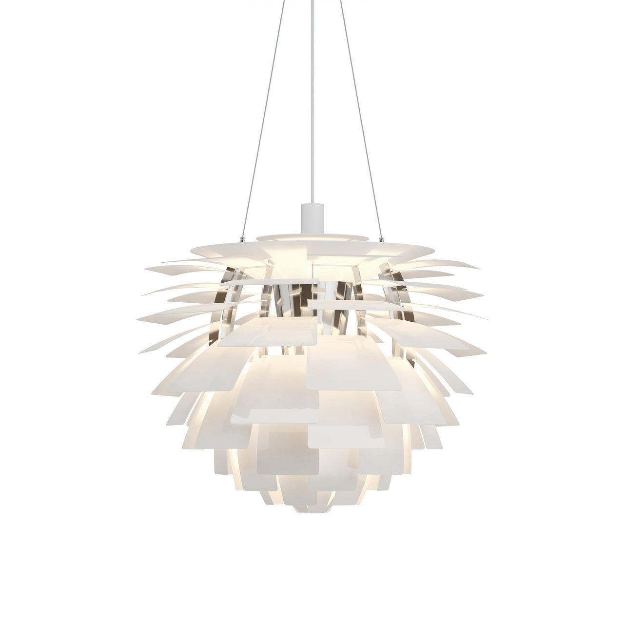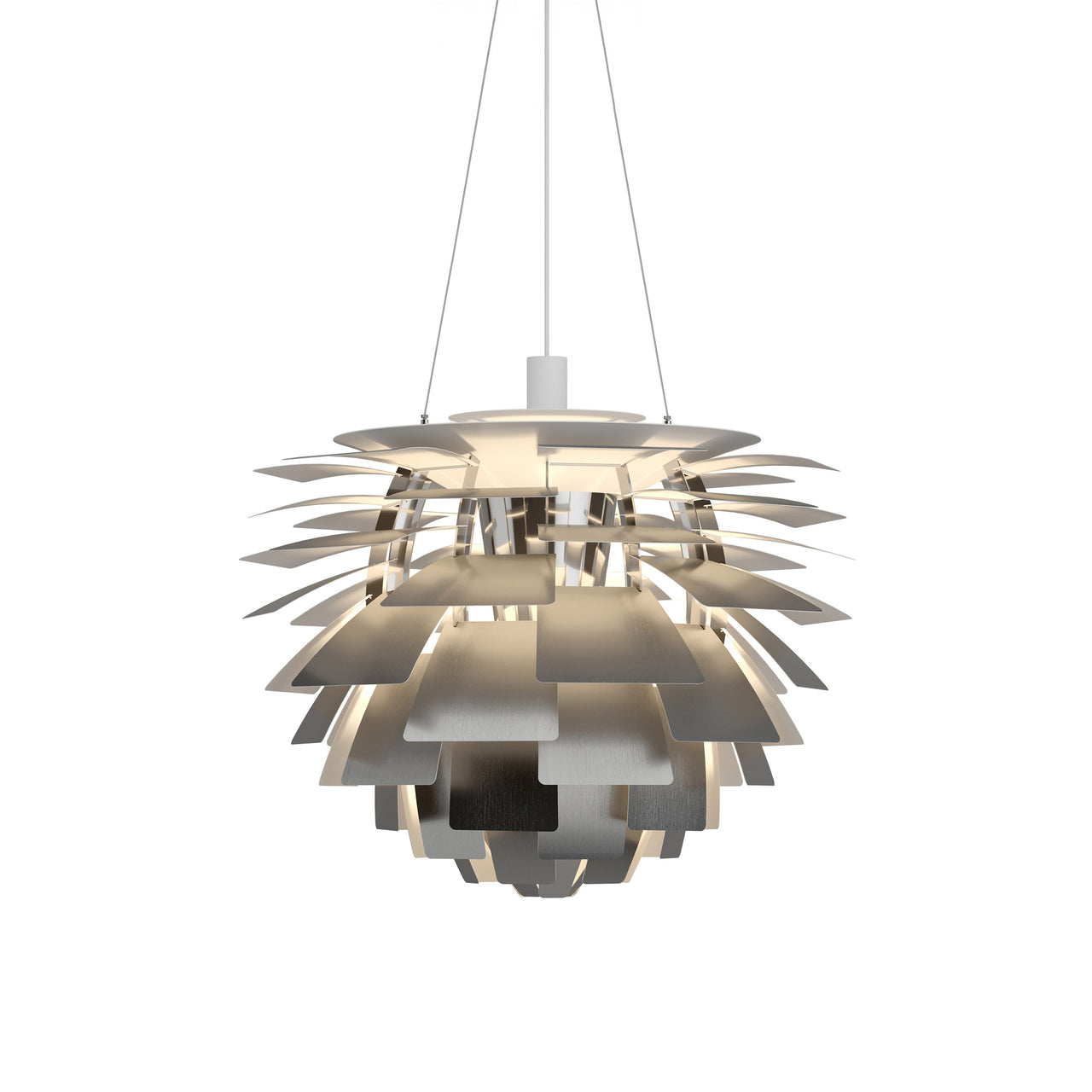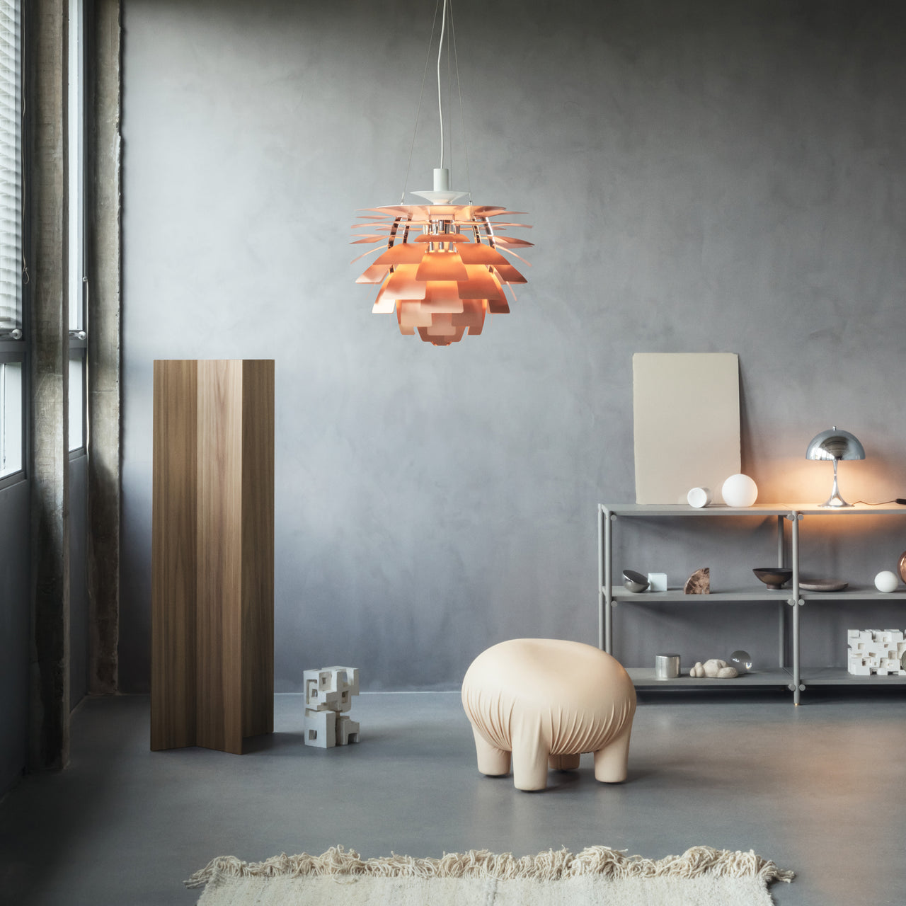 Breathtaking in form, the large version of PH Artichoke, like its sister pendants, features 72 precisely positioned leaves in concentric rows to provide glare-free light from any angle. Still largely made by hand, Poul Henningsen’s sculptural circa-1958 design, now powered by an LED, is offered in a range of metallics or a powder-coated finish.