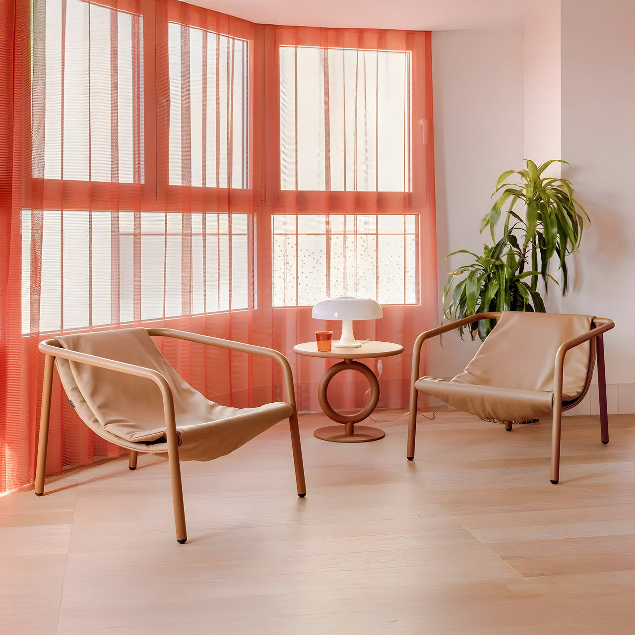 Designed for compact spaces, the Elle Mini Lounge Chair takes inspiration from traditional beach loungers, using only two main elements: textile and metal. The seat, made from either soft fabric or leather, is stretched over a minimal steel frame with an extra-matt lacquered finish. This construction keeps the chair lightweight while reducing material use. The removable and repairable cover supports sustainability by allowing for easy maintenance and longevity.