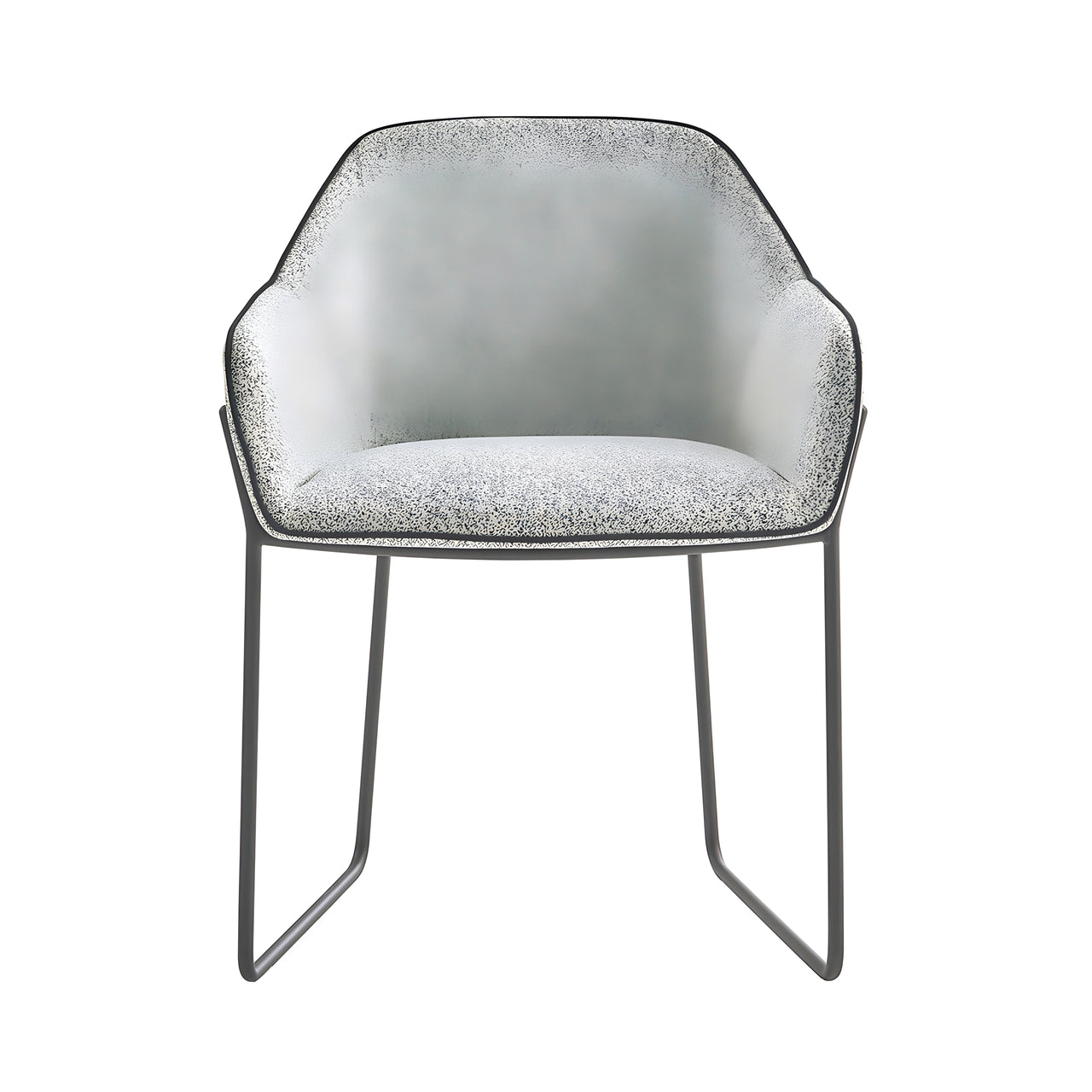 Inspired by the structure of a nest, this chair features a supportive seat set on a sturdy steel sled base with an epoxy-coated finish available in 3 colors. The fixed upholstery is accented with black piping.