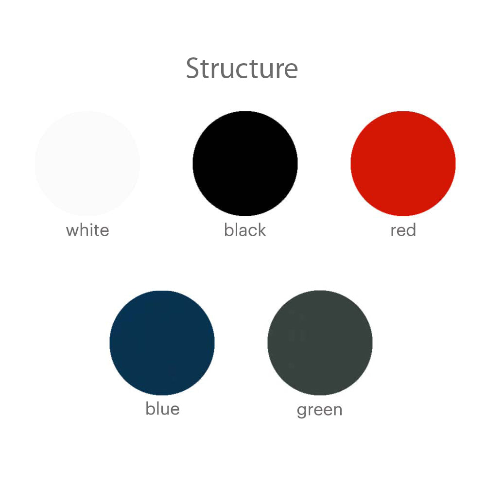 Steel, powder-coated polyester, iroko wood, fibre cement, rubber cushion, oak or walnut