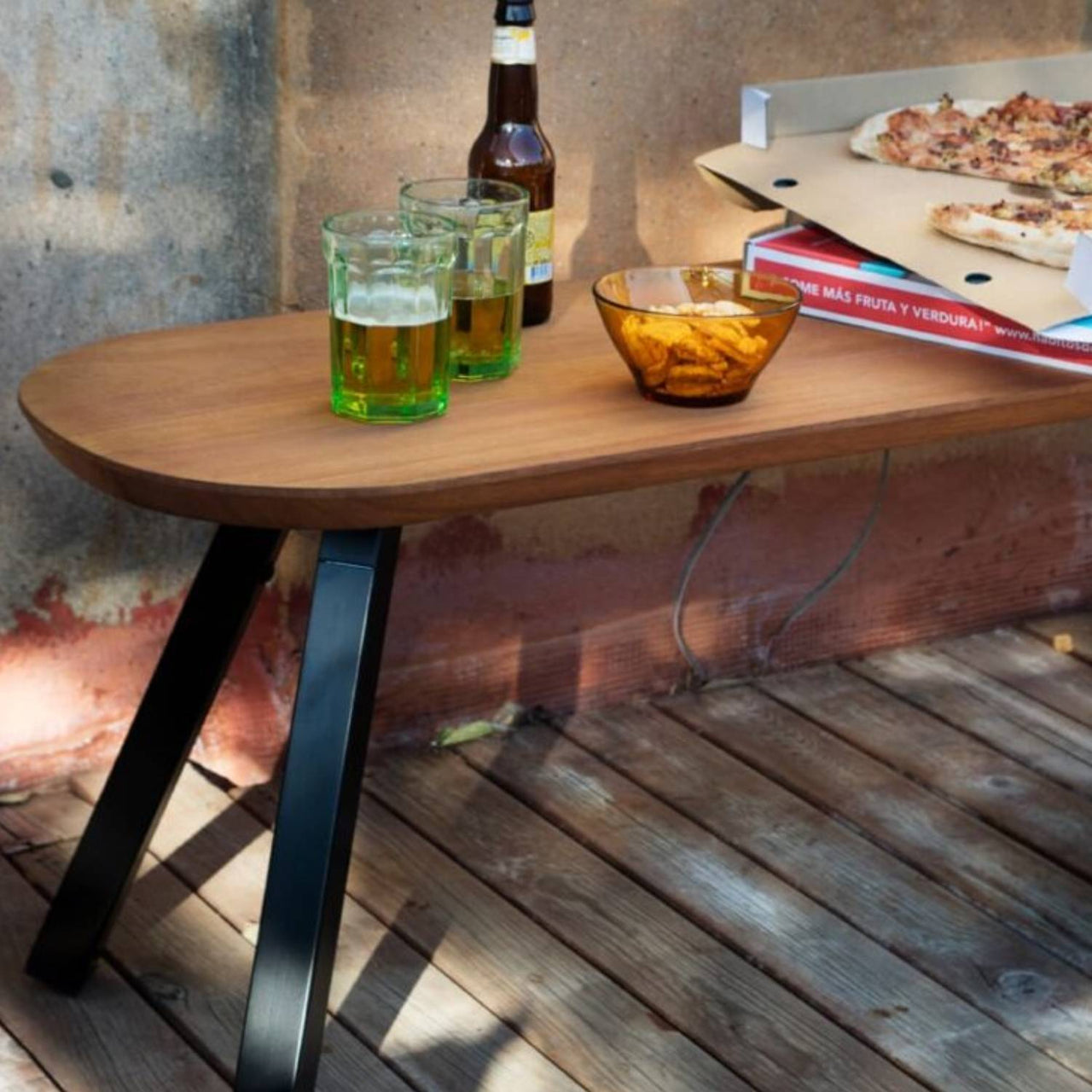 Take a load off in style with the You and Me collection of benches to complement RS Barcelona's standout ping-ping/conference/dining table of the same name. Good for the grownups and the kids alike—with sturdy steel legs and framework finished in graphic black or white powder-coat. Designers Antoni Pallej à and Júlia Polbach add a mellow note with the choice of rich iroko or oak wood for the seat. With a selection of optional cushions available for either indoor or outdoor use.