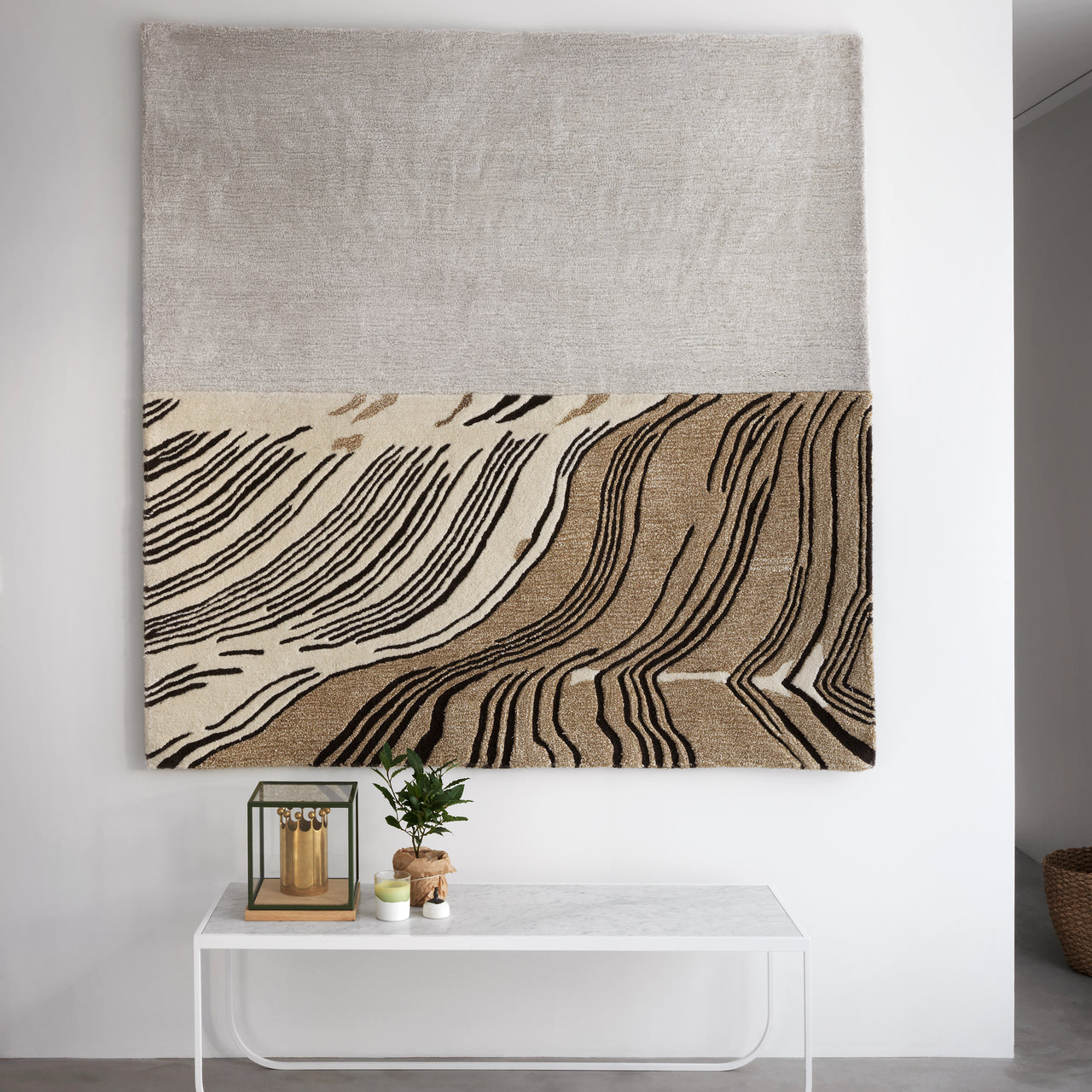 Designer Mattias Stenberg creates an abstract landscape-themed series of hand-tufted rugs with cut details in mixed compositions of pure wool and lustrous natural Tencel yarns. As striking when hung on the wall as laid on the floor, Swedish maker Asplund offers 5 different works of textile art: Frost, a pink-tinged winter vista; Field, a view of rolling hills; Ice, a crisp polar landscape; Lake, a Nordic winter’s day; and Moonlight, echoing the inky nocturnal sky.