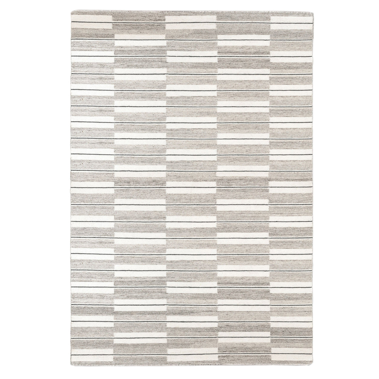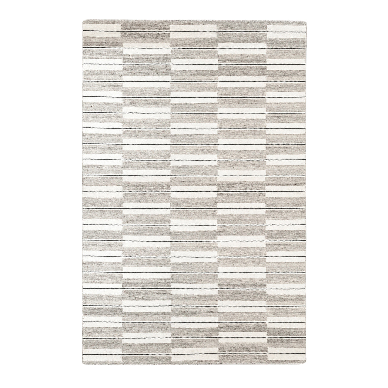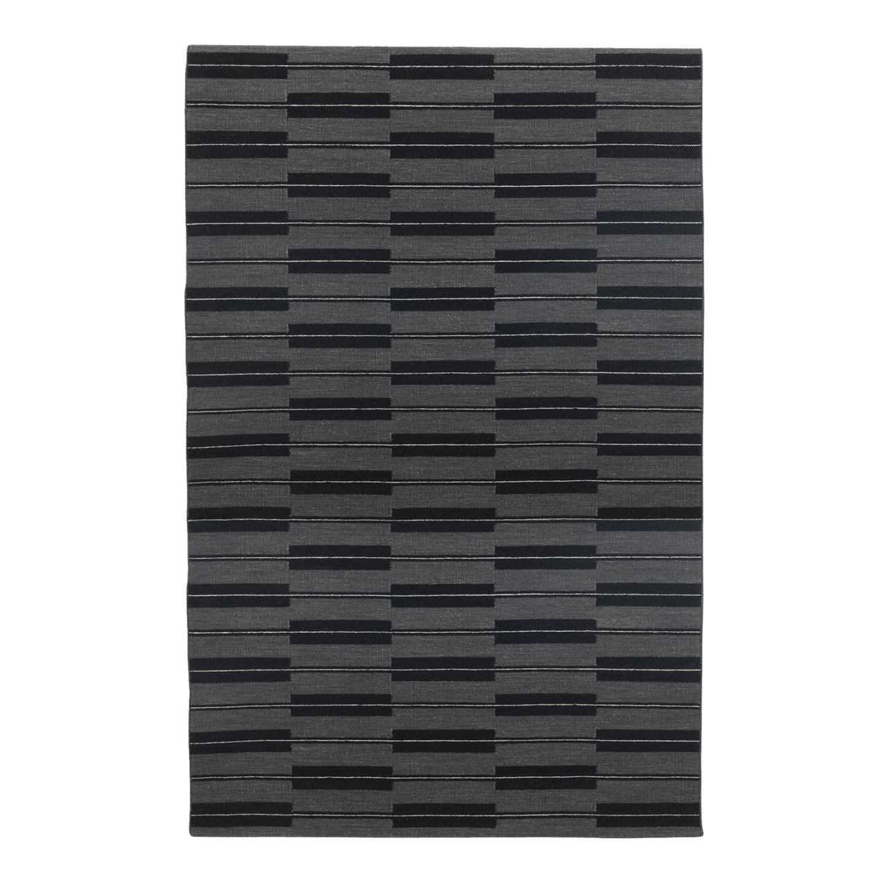 Handwoven in India, Spindle Rug by London designer Eleanor Pritchard features a large-scale pattern of repeating thick and thin blocks center-scored with a fine accent line. Available in 2 sizes hand-tufted or flat-weave options.Hand-tufted rugs have a pile finish that allows for the creation of curved patterns in varied lengths and they are extremely durable, withstanding high traffic. Flat-weave rugs have an even surface without pile and are made from Rpet, which is suitable for use indoors and outdoors use.