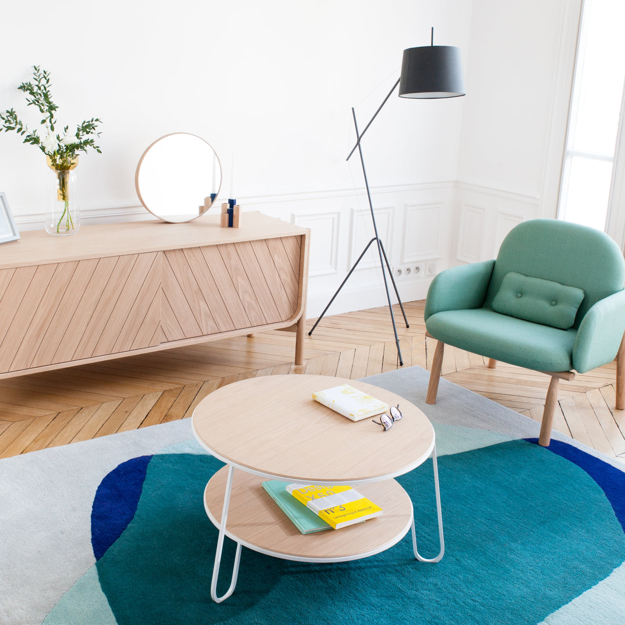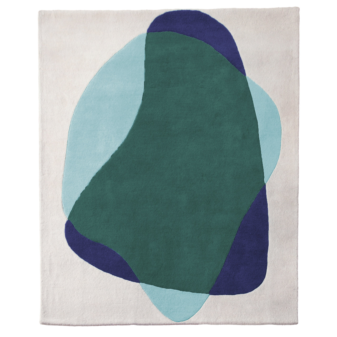French designer Pauline Gilain indulges her artistic side with Serge, her hand-tufted rug fashioned in 100% New Zealand natural wool. Available in 2 colorways. the dancing shades tinged with blue or green morph into rounded, poetic shapes, bringing to mind a watercolor painting. Indulgently soft, coxy and elegant, its placid hues evoke serenity and comfort—and it makes a striking room anchor that will no doubt appeal to abstract art and design aficionados.