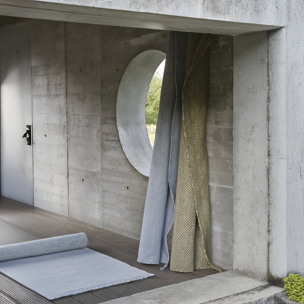Crafted from 100% recycled polyester sourced from post-consumer waste, this rug offers a tactile experience suitable for both indoor and outdoor environments. Its durable, moisture-resistant construction makes it ideal for high-traffic areas such as kitchens, lobbies, patios, and garden seating spaces. The design features a broken twill weave, creating a vibrant, almost three-dimensional pattern. Available in 4 sizes and colors.