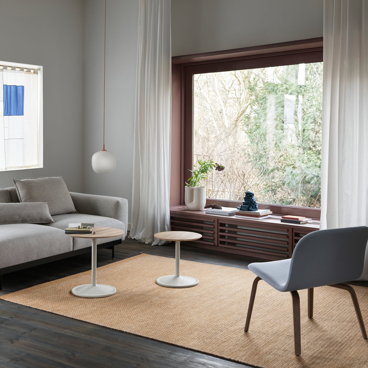 The Ply Rug is made from 100% New Zealand wool and offers a soft feel underfoot while showcasing a classic twill pattern. Designed by Margrethe Odgaard, the Ply Rug reflects Muuto’s emphasis on craftsmanship and natural materials. The square version is ideal for anchoring smaller seating areas or entryways, and a discreet loop at one corner adds both detail and functionality.