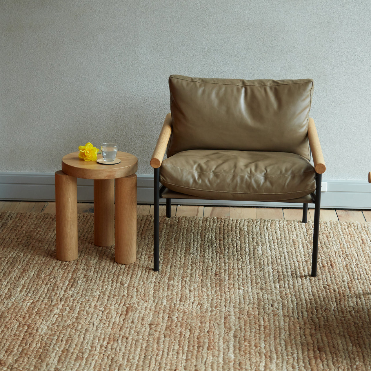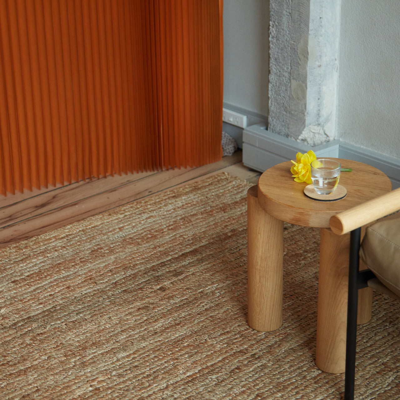Handcrafted by creating loops with a thick, twisted jute yarn, Nodi's textured rug lends a warm character to interiors that require everyday durability, such as family rooms, bedrooms and entryways. Looped Jute comes in natural or seafoam shades and a range of sizes (though the rug is not as suitable for homes with cats that are inclined to pull the loops up). With a cotton-latex backing, it's handwoven by artisans in certified GoodWeave® factories in India.