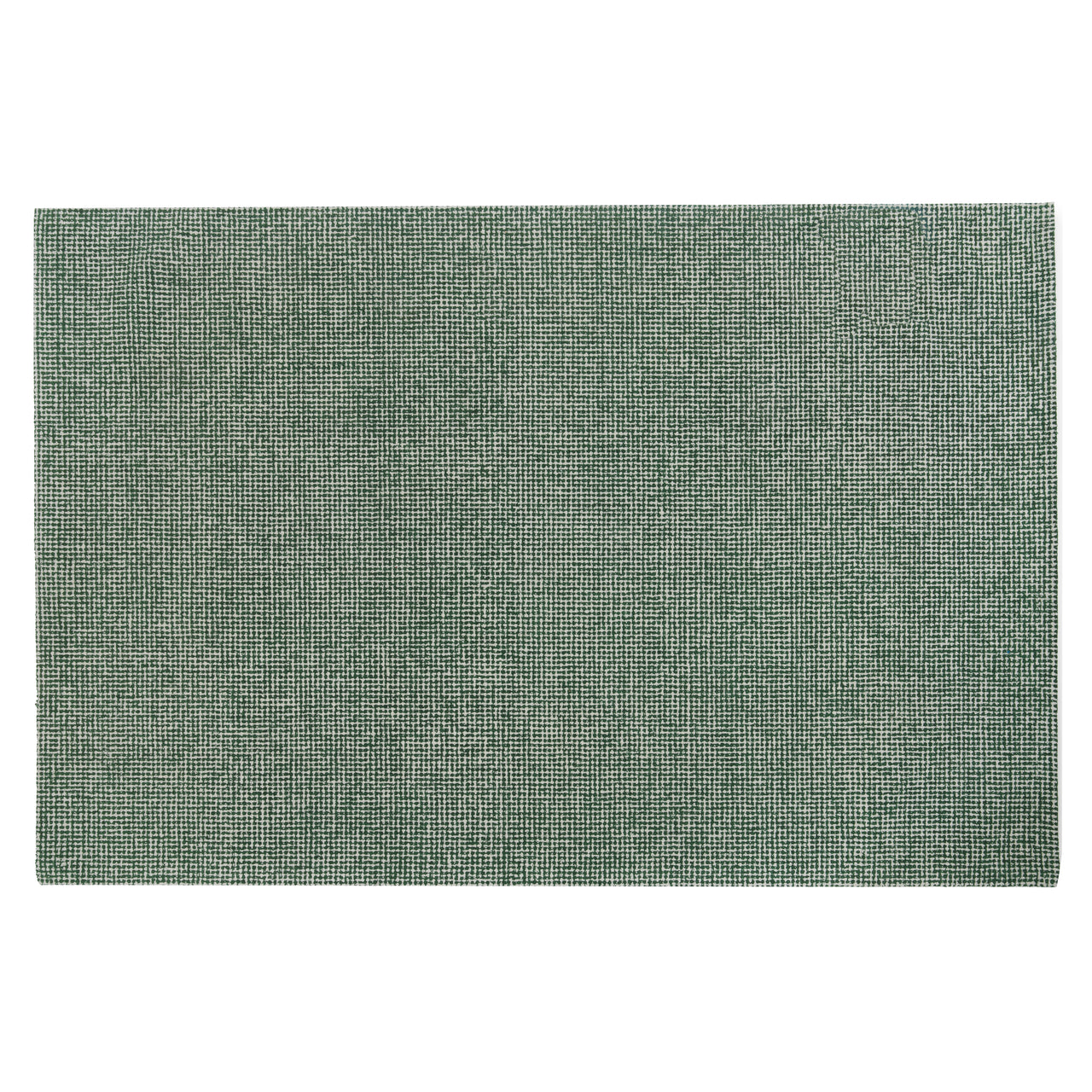 The Flick Rug is made from 100% recycled post-consumer PET yarn, repurposing plastic waste into a soft and durable floor covering. The yarn is spun from short textile fibers, creating a fine material that resists shedding and is easy to maintain. Featuring a subtle, mottled pattern, the rug is available in sand, dark grey, and versions with hints of green and blue. It comes in 3 sizes to fit different spaces.