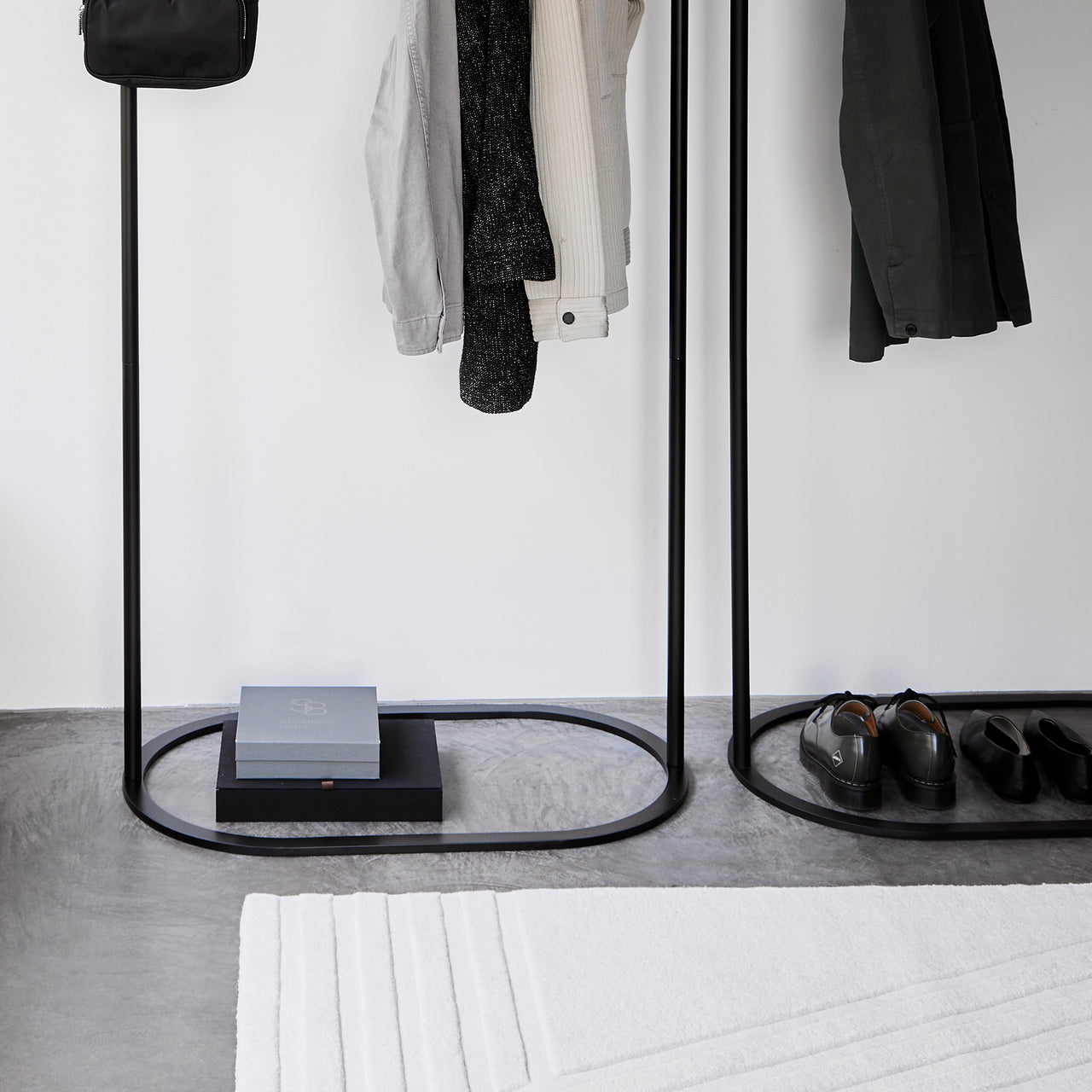 Taking its inspiration from the distinctive pattern found in traditional raked Japanese rock gardens, Woud’s mostly wool rug features a linear cut-pile motif. Available in a choice of 4 sizes each with its individual design, Kyoto lends a quiet sense of movement in the intersection of straight and diagonal elements. Los Angeles designer Adam Miller chooses a mellow grey tone to provide a complementing base for a furniture setting as well as to underscore the distinctive texture.