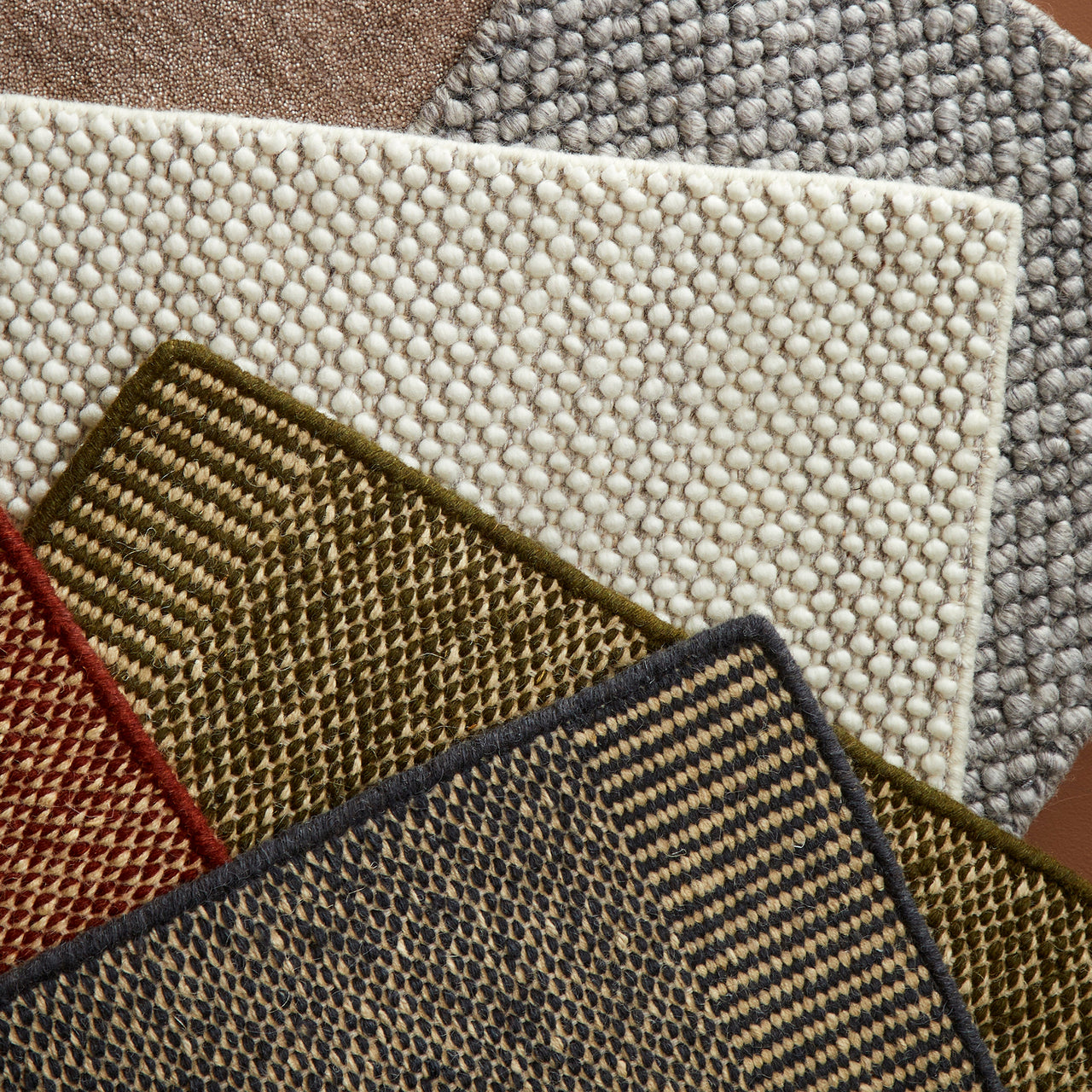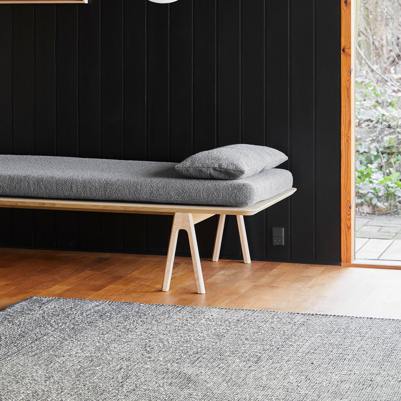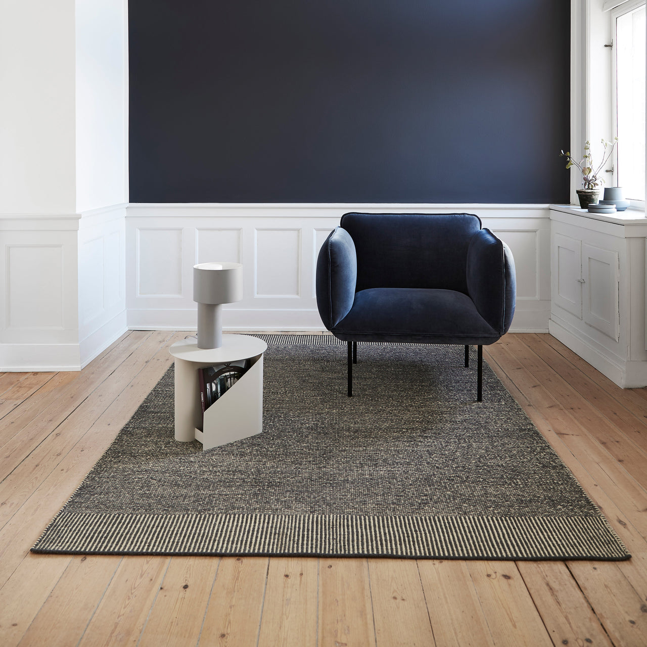Rombo’s name comes from its woven surface—the distinctive small rhombi or diamond-like pattern. The series of rugs designed by Copenhagen’s Studio MLR combines wool and jute for a robust weave with great depth. At either end, parallel lines border the rug and create an intriguing contrast.