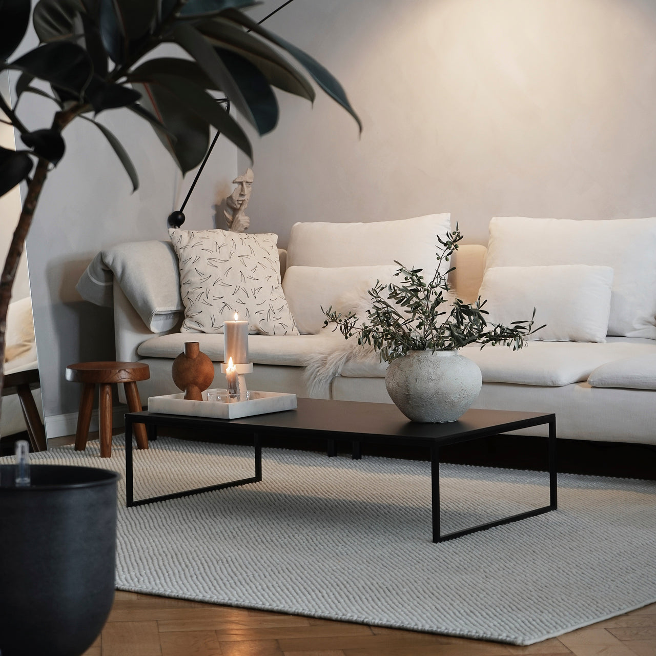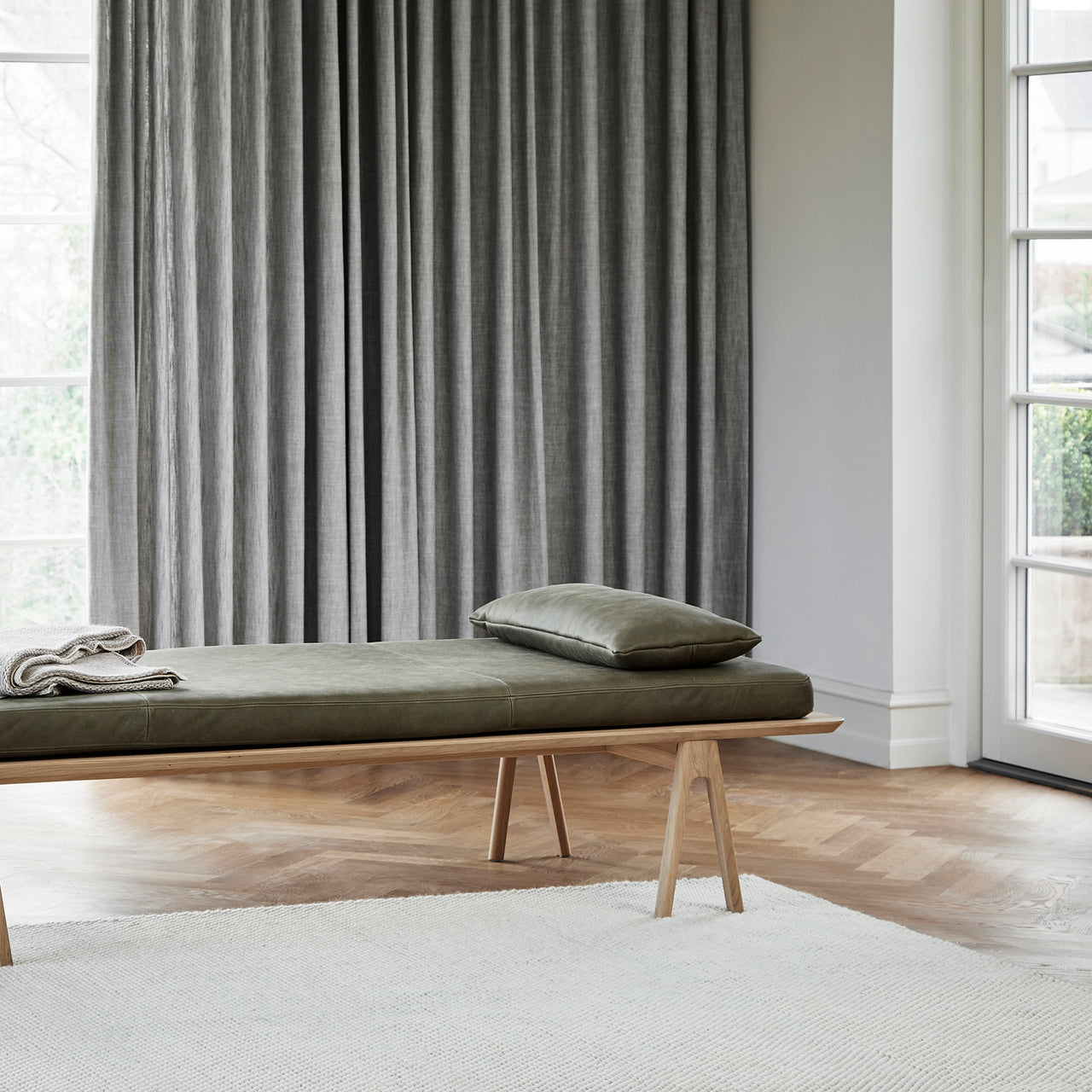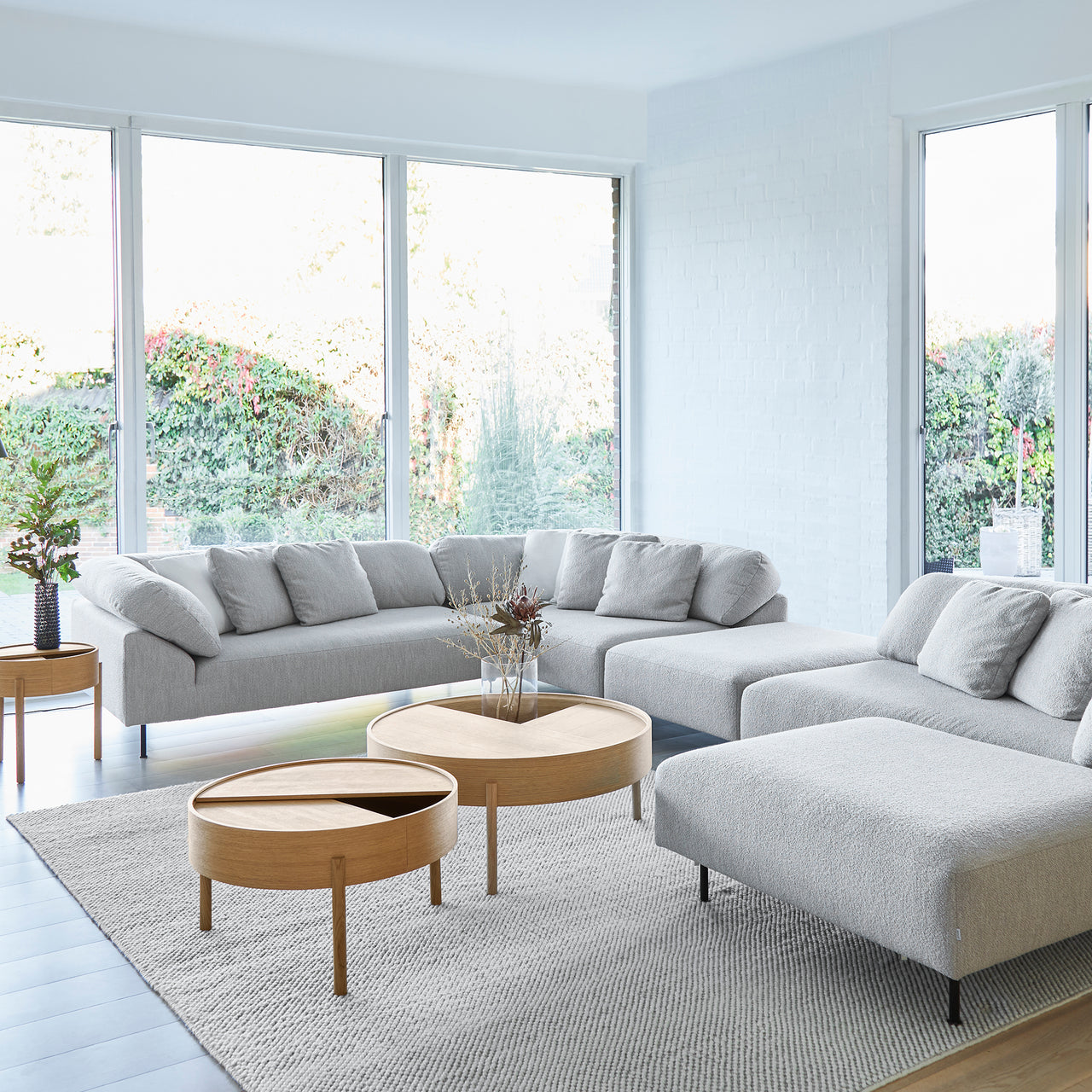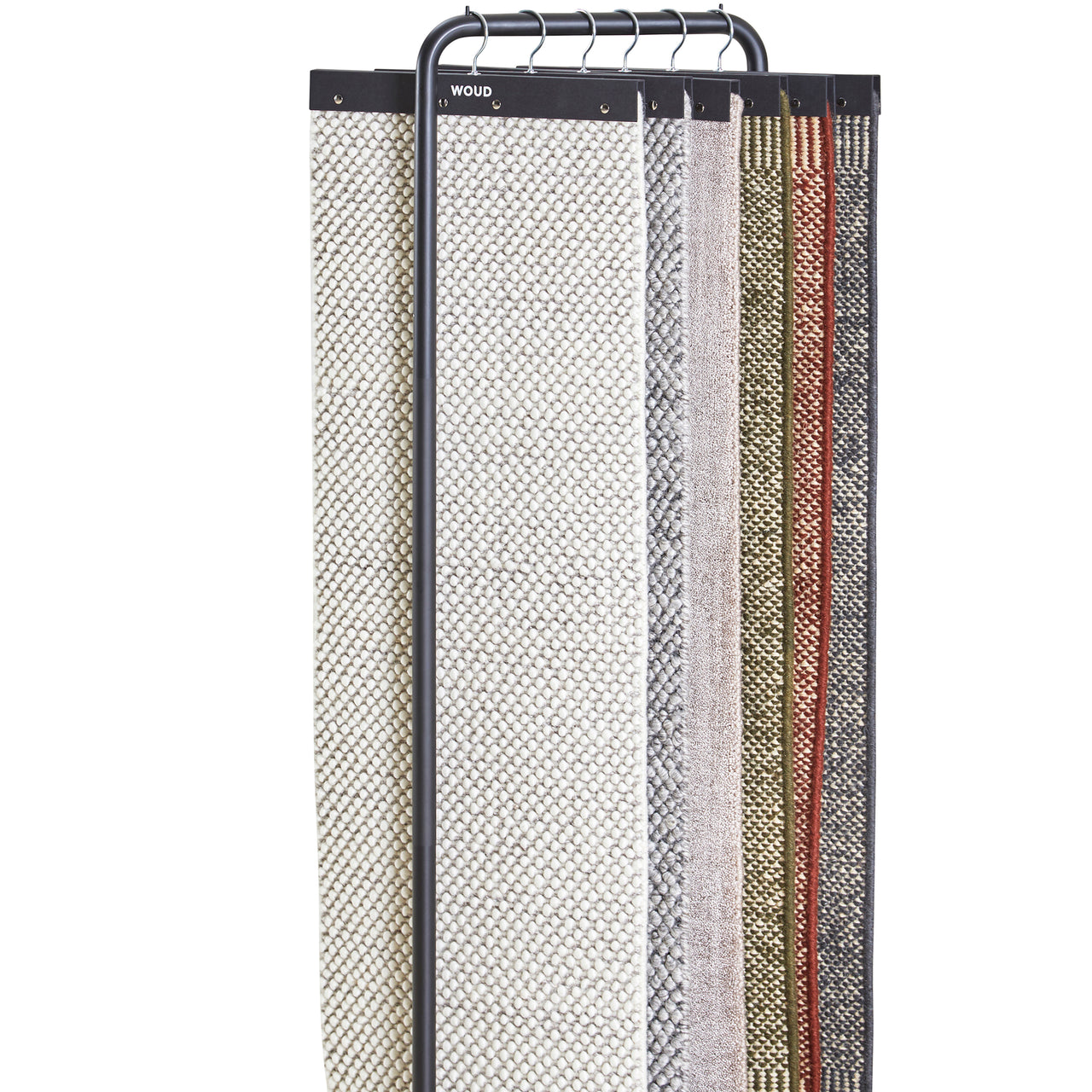 Tact is much more than a feast for the eyes. With woven loops that form a surface of circular droplets, Woud's wool area rug also stimulates and pleases the sense of touch. And the thickly fashioned, soft expanse has a welcome sound-reducing effect. With its rectangular, area-defining shape, the range of sizes suits varied kinds of spaces—from underscoring a coffee table in a conversation area to providing a warm and sensuous tread beside the bed.