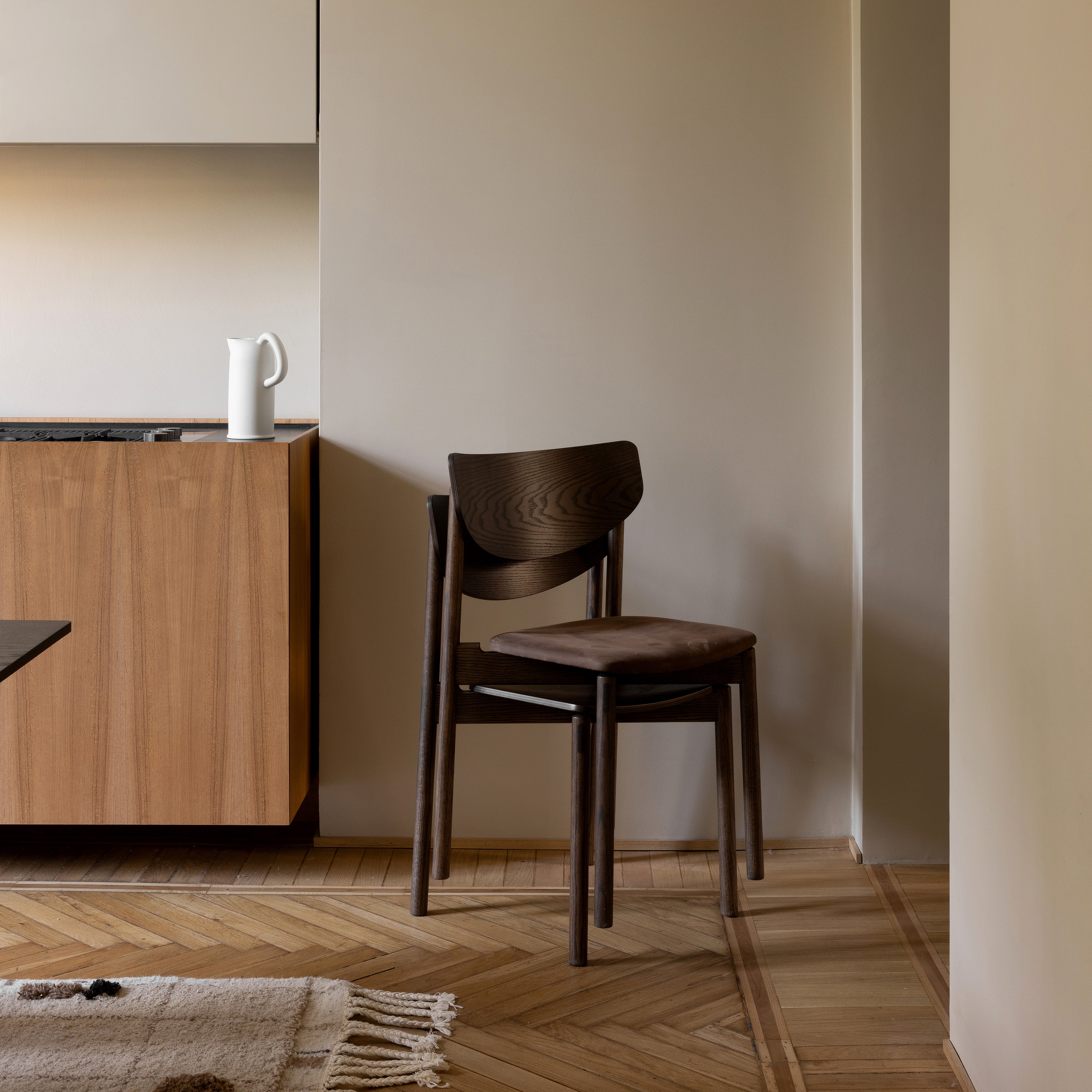 A selection of stock upholstery materials to clad the seat offers a luxurious option for Portuguese born designer Rui Alves' stackable dining chair Crafted in either ash or oak with a range of available finishes, Hane takes its name from the wing shape of its generous backrest that offers embracing comfort as well as highly individualized style.