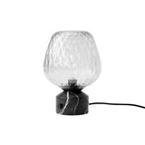 Designer Samuel Wilkinson's sublime table lamp features a quilted effect on its glass surface that reflects and refracts the light in subtle patterns. Fashioned from mouth-blown glass (alluded to by the lamp's name), the translucent silver-hued shade tops a Nero Marquina black marble base, equipped with a dimmer switch to adjust the light. The lamp makes for a striking addition on a bedside table, at a desk or sitting on a shelf or windowsill.