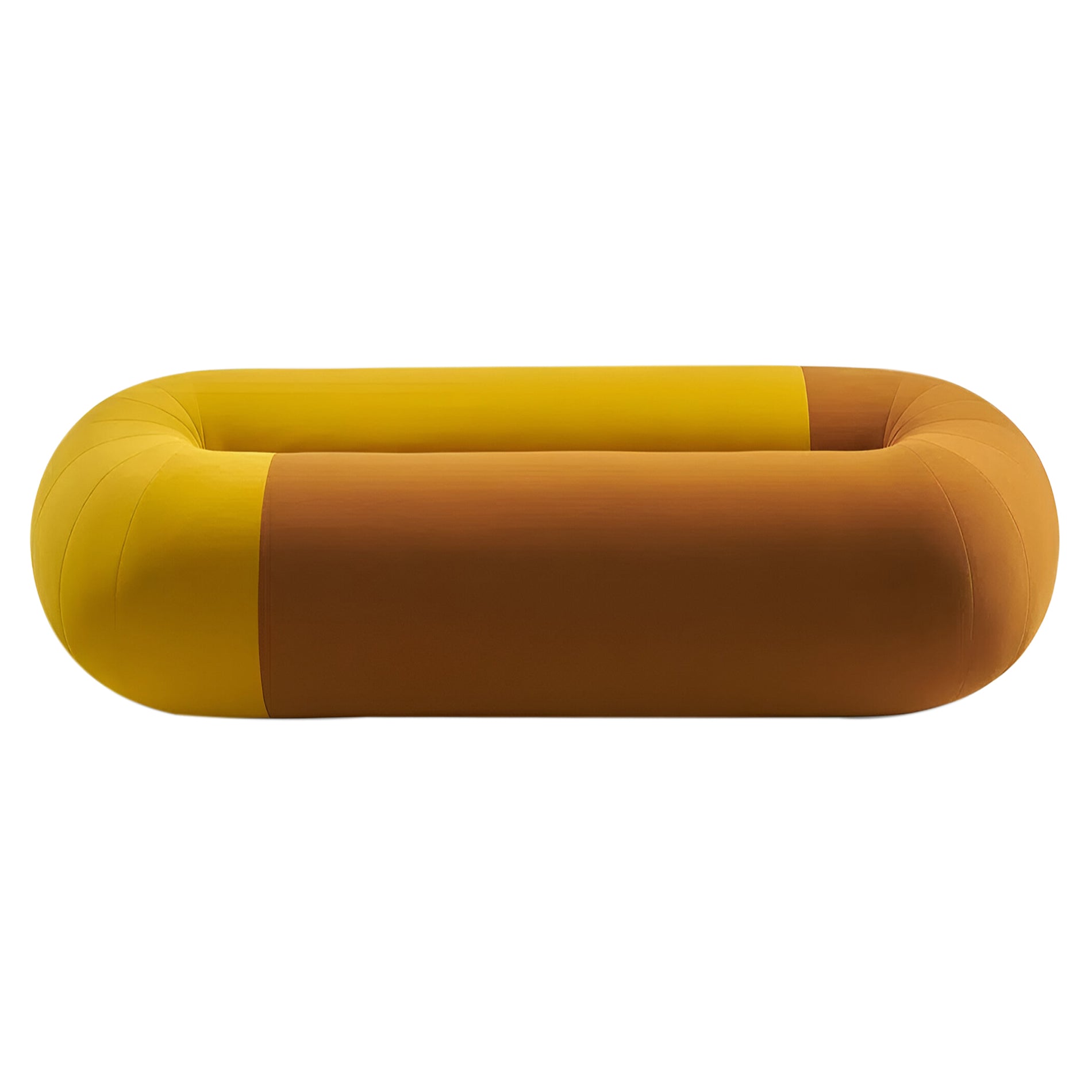 The Loop Pouf showcases gently rounded shapes and vibrant colors, utilizing the Planum textile by Raw Color for Kvadrat. This fabric combines three shades of a single color—reds, yellows, blues, or greens—creating a patchwork effect. Offered in 3 sizes, the pouf adapts to different spaces. Raw Color's expertise in blending light, shadow, color, and volume is evident in this design.