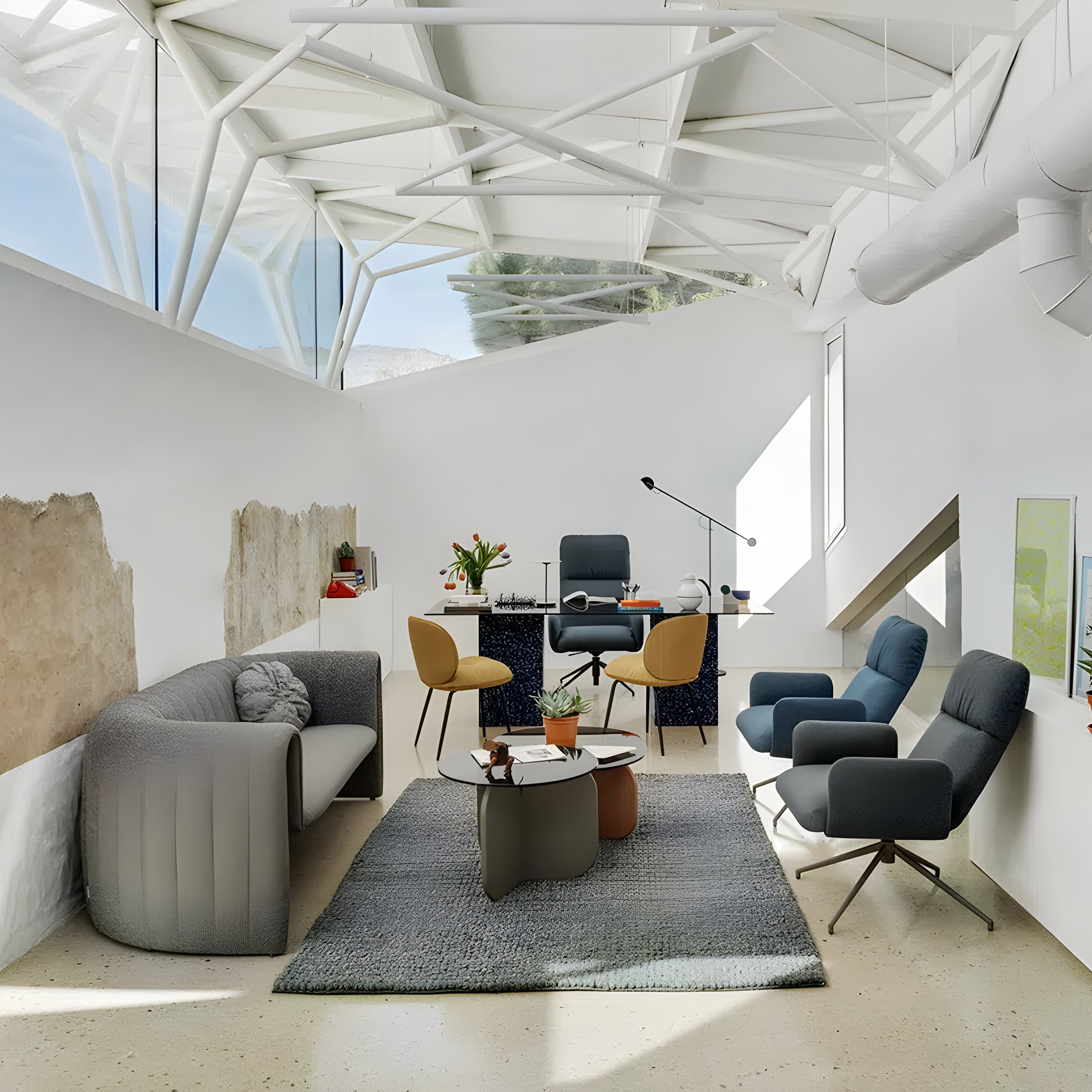 The Remnant Sofa is shaped by the idea of leftover material after carving a central piece, resulting in a distinctive structure with minimal material use. Though it appears simple, its design involves careful engineering and development. Subtle quilting adds texture, and the sofa can be covered in different fabrics to suit various settings. It blends industrial techniques with handcrafted details