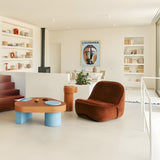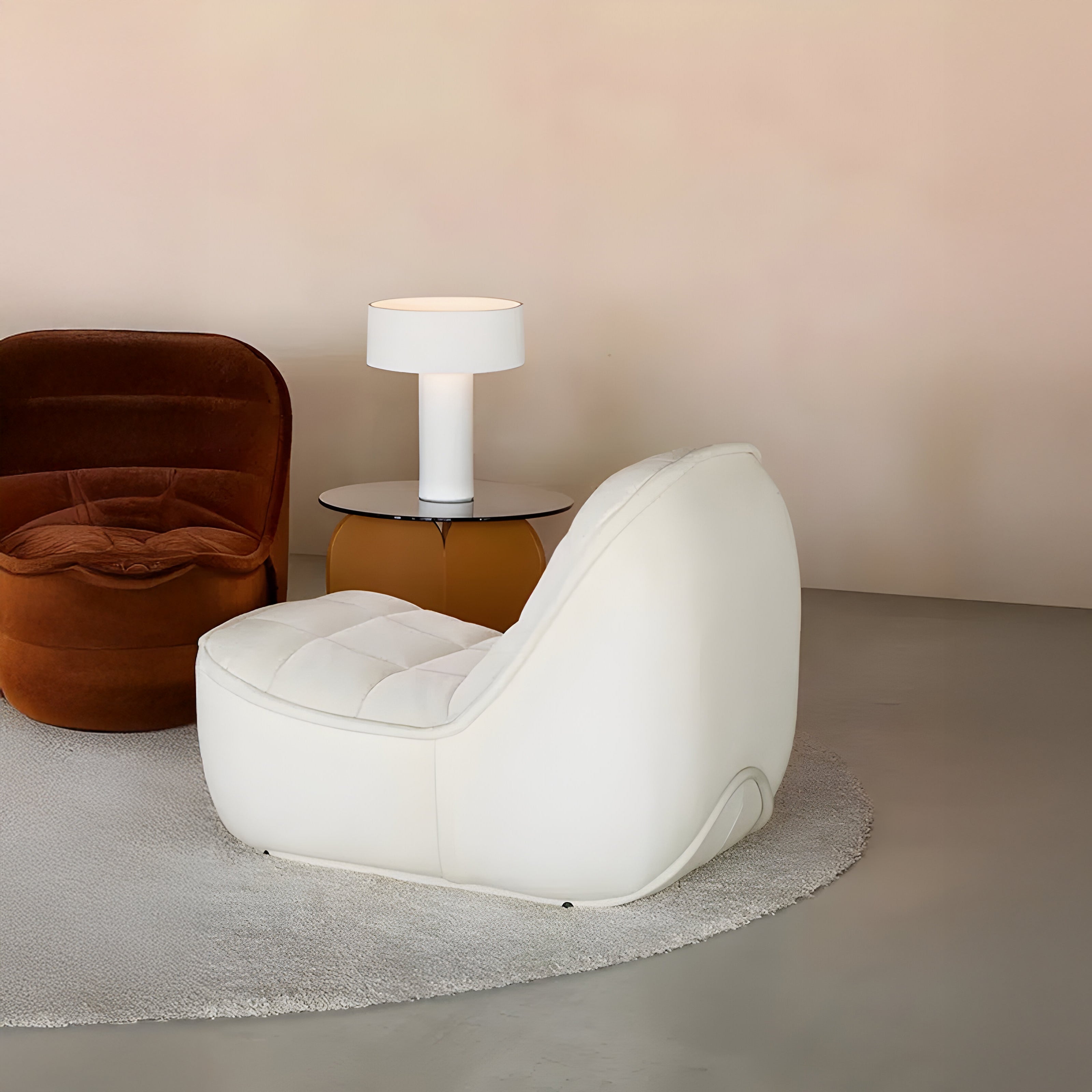 This lounge chair features a rounded shape and a compact build, making it suitable for private and shared spaces. The oversized quilting on the seat adds an extra element of comfort. The sturdy metal frame extends from the floor to the base, providing reliable support and a distinctive look, with 3 lacquered finish options available.